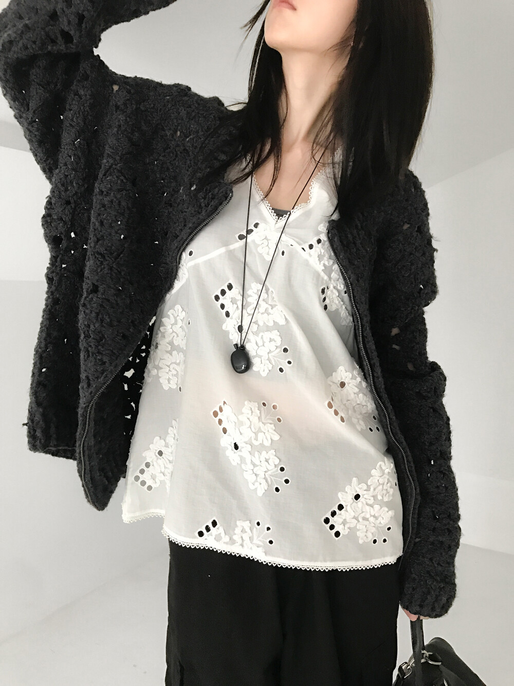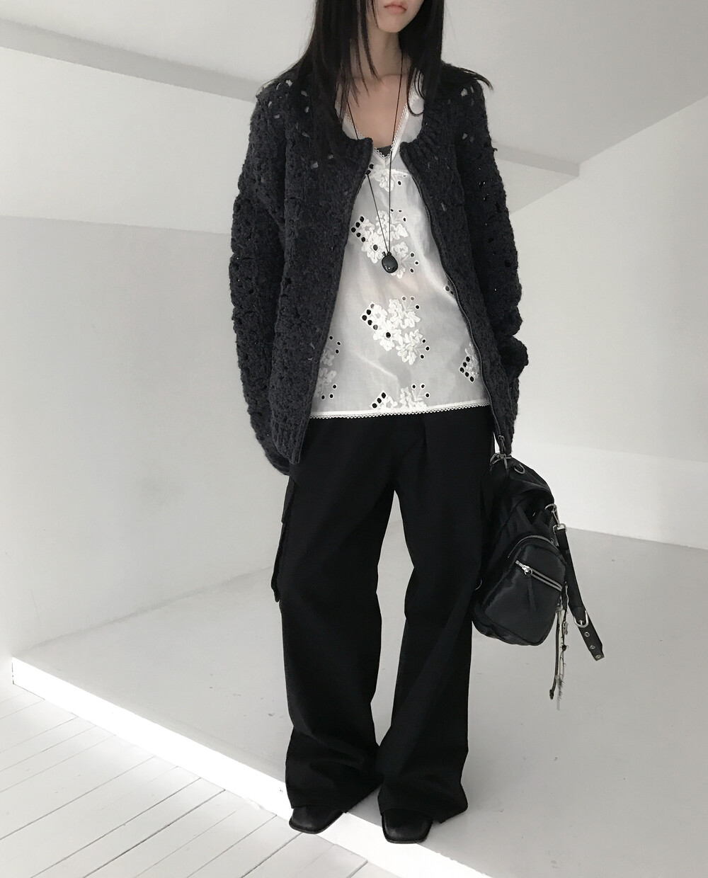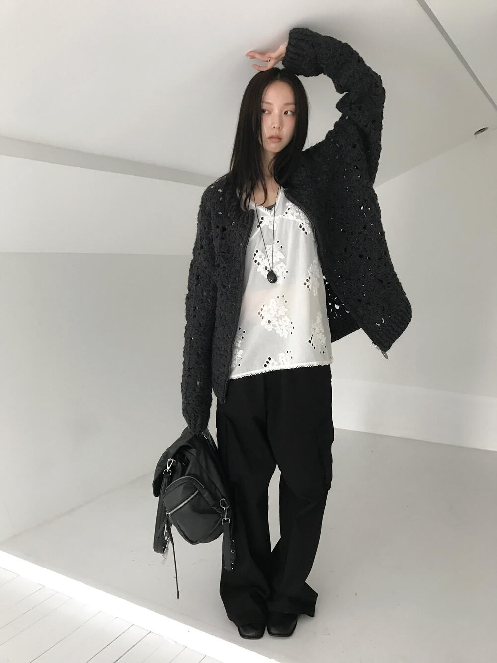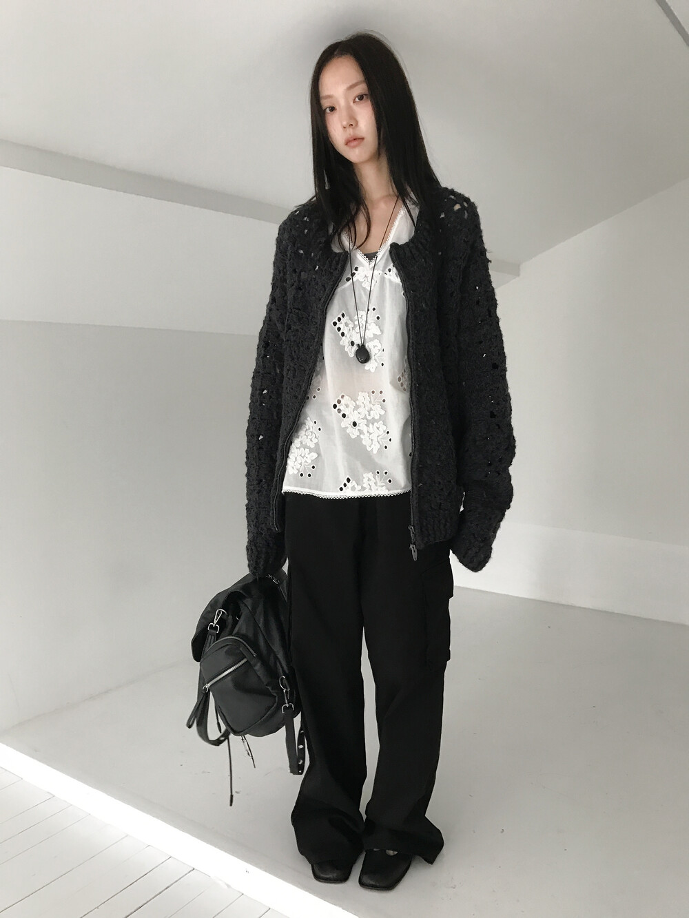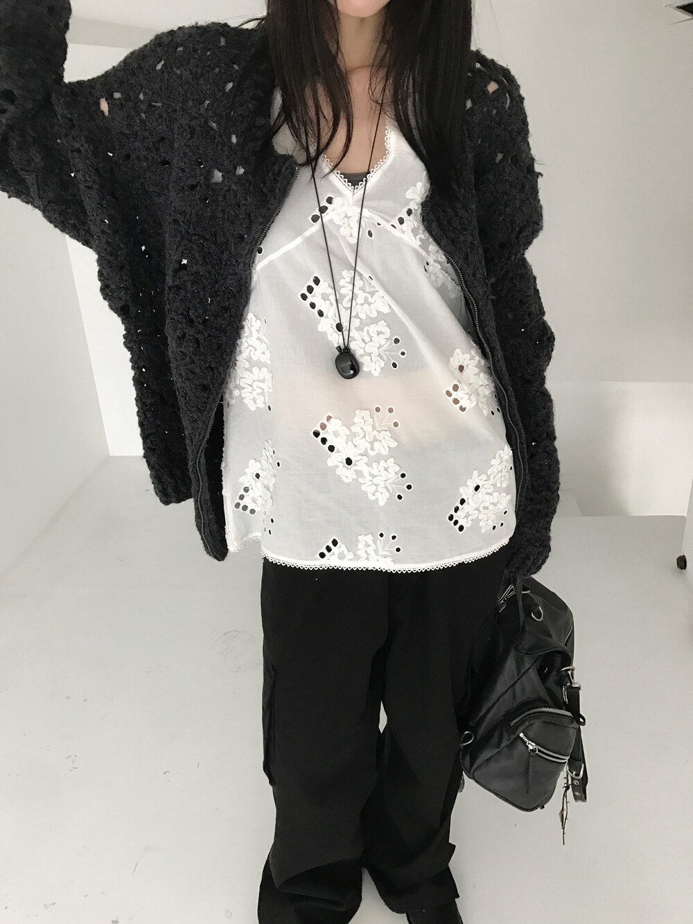 Blooming Crochet Knit Cardigan, Charcoal (2c)