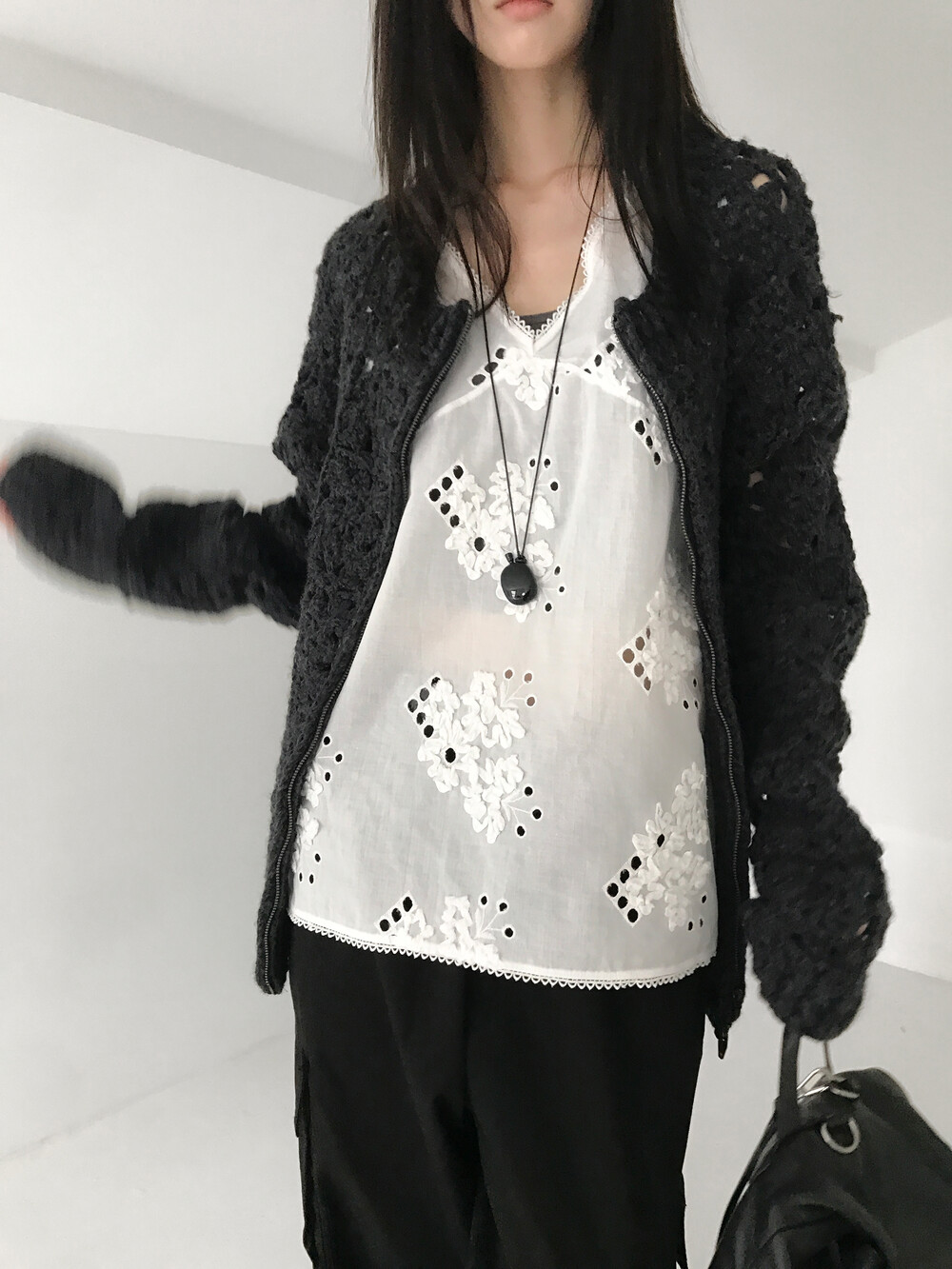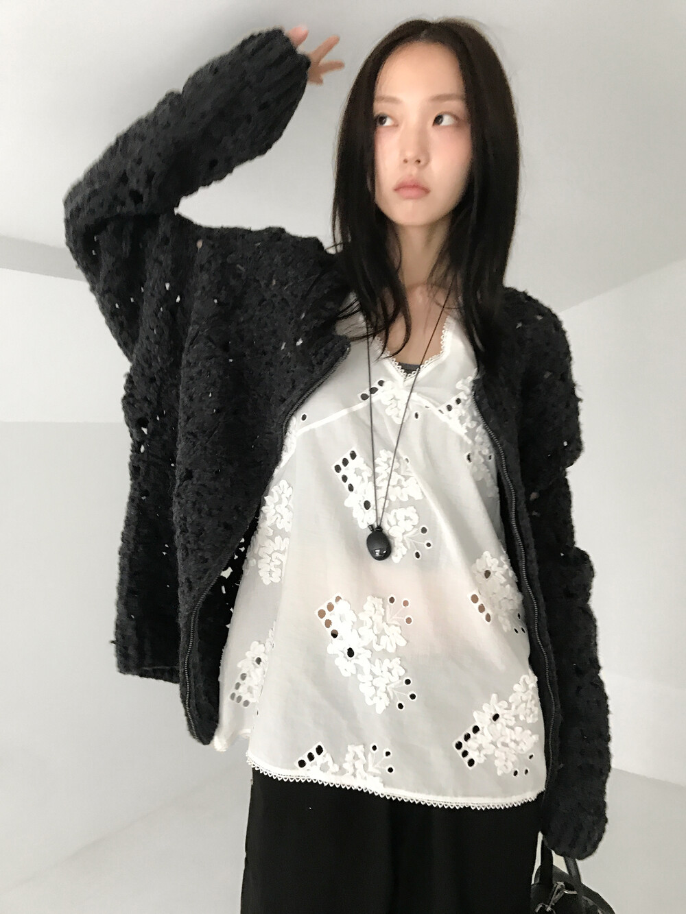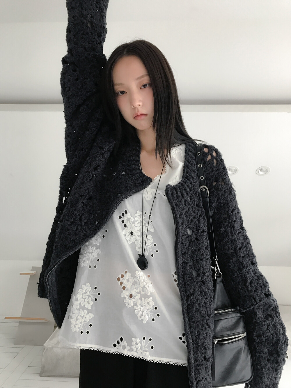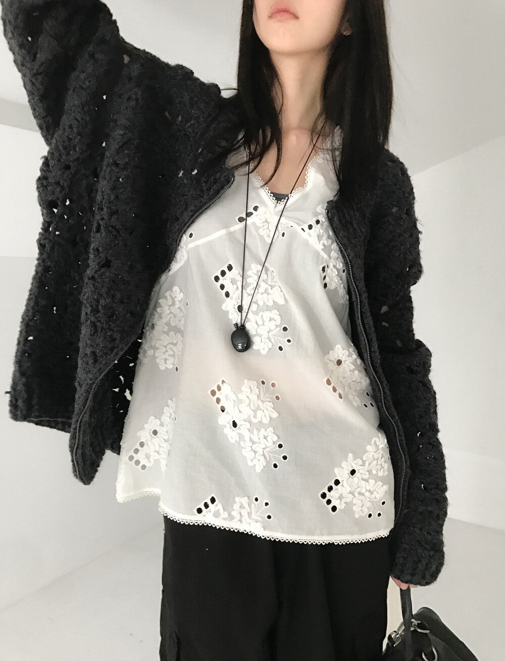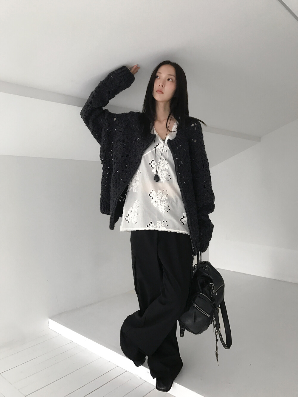 Blooming Crochet Knit Cardigan, Charcoal (2c)