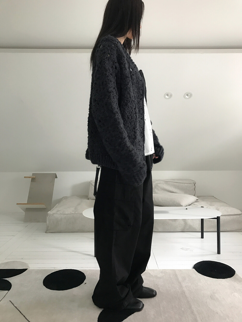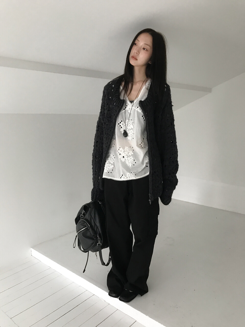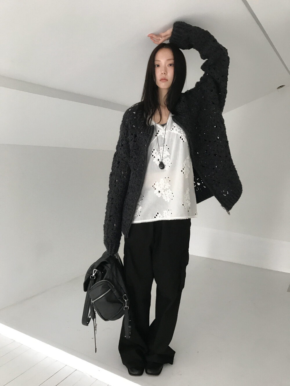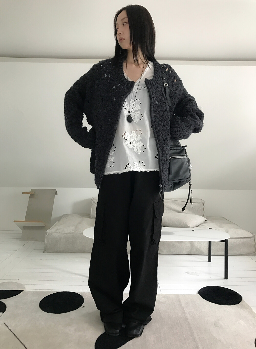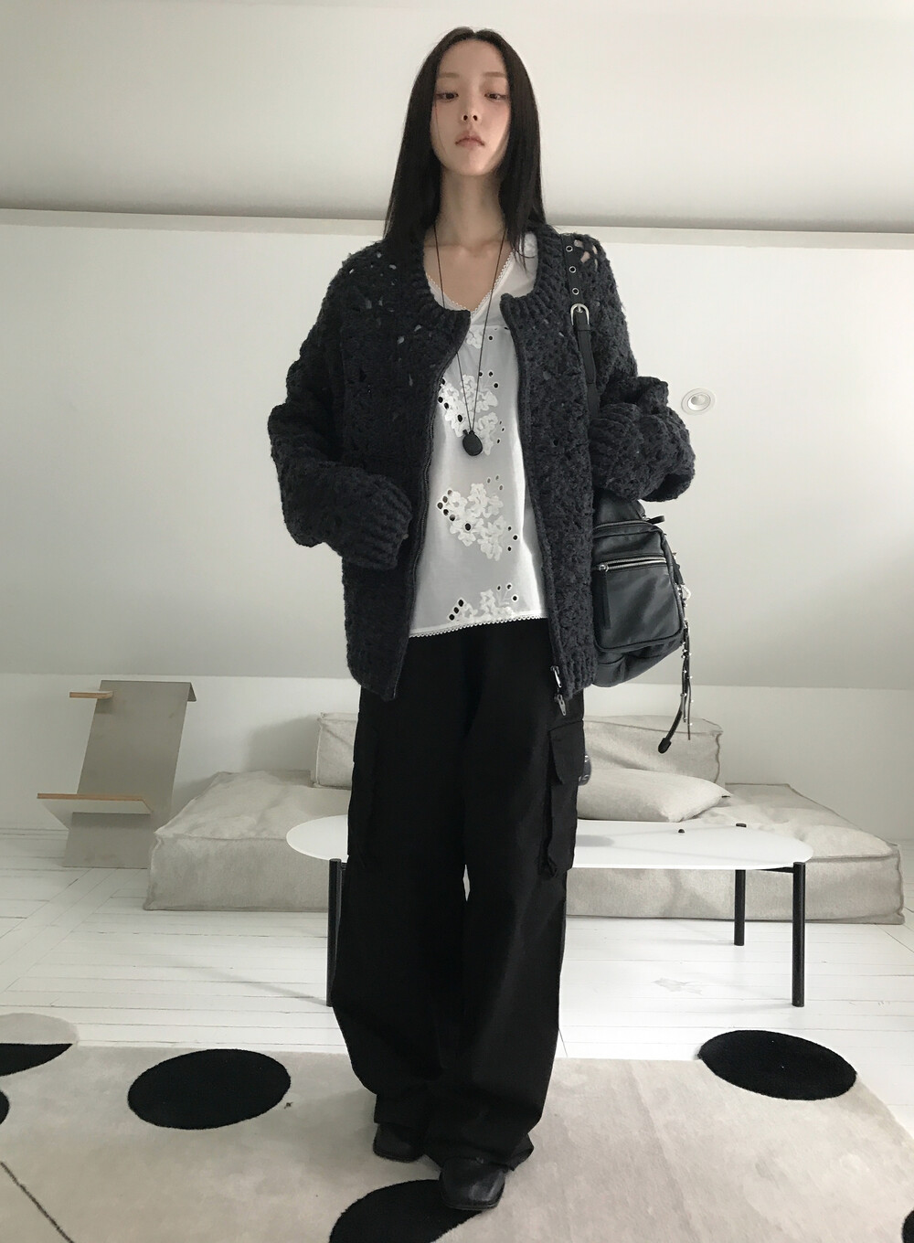 Blooming Crochet Knit Cardigan, Charcoal (2c)