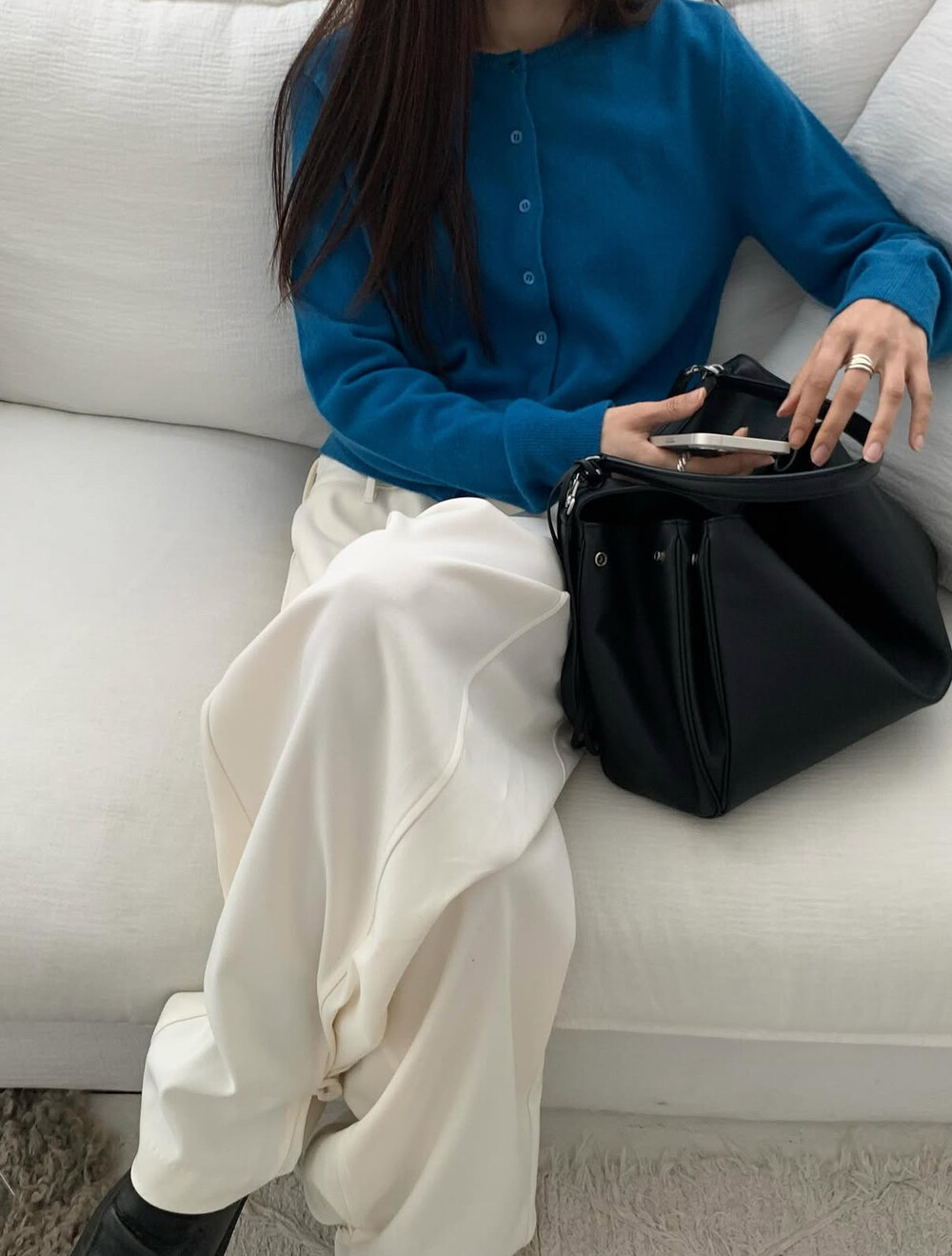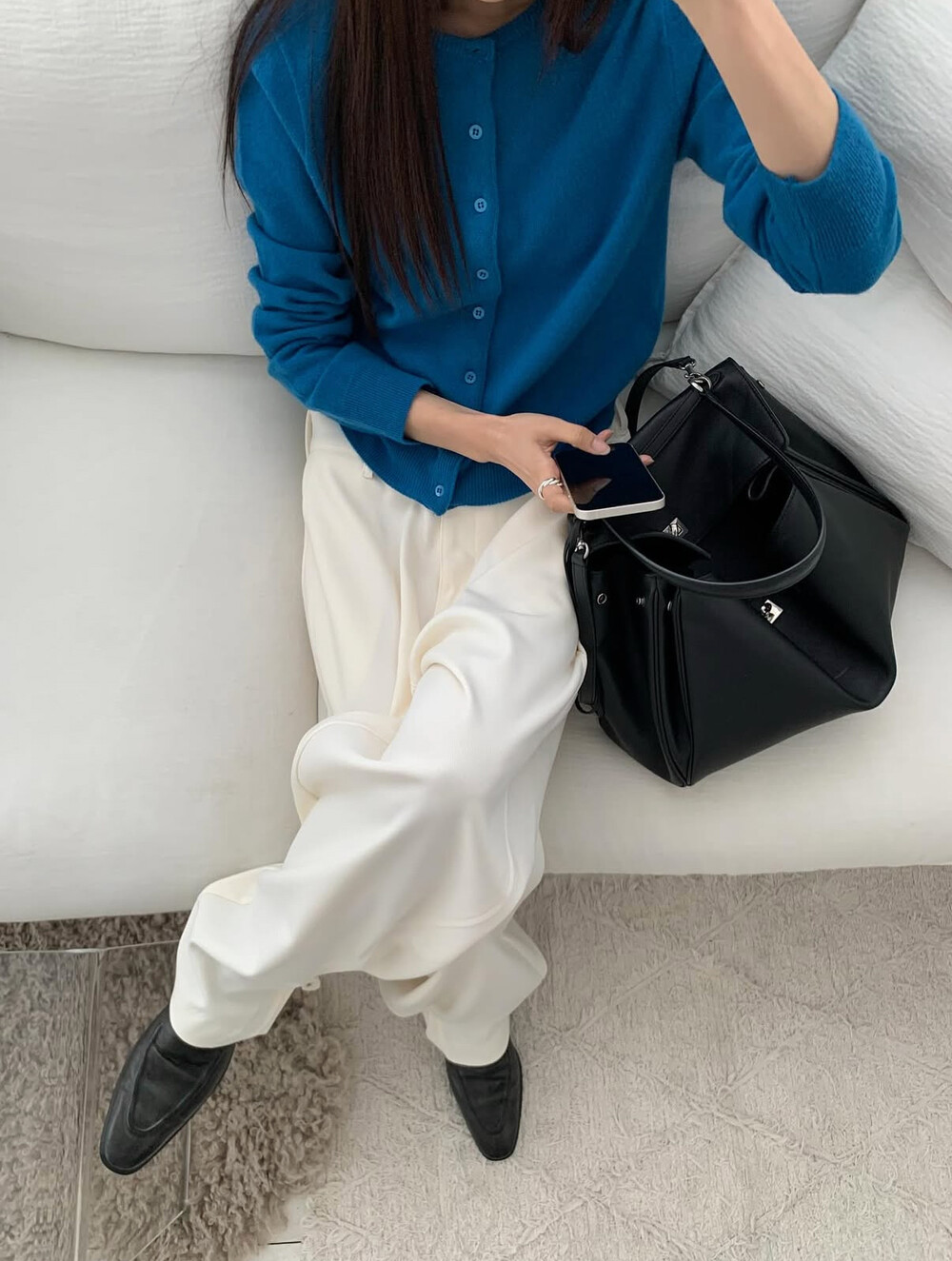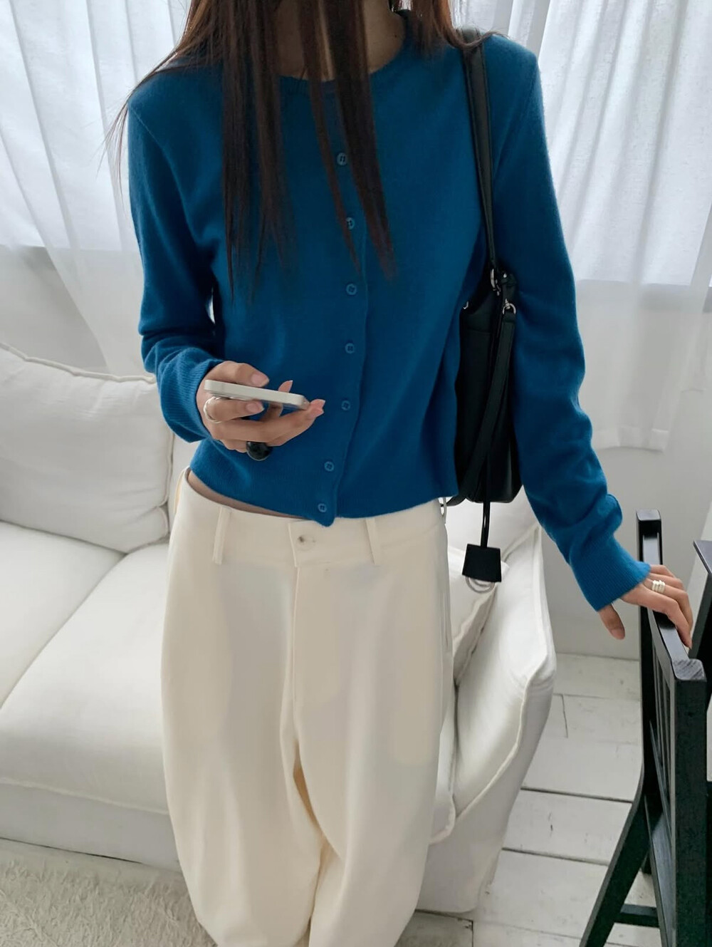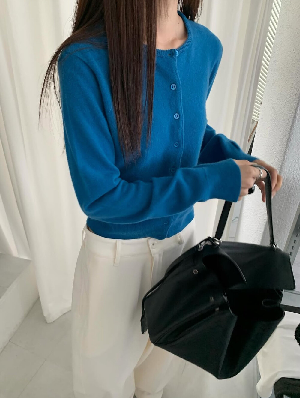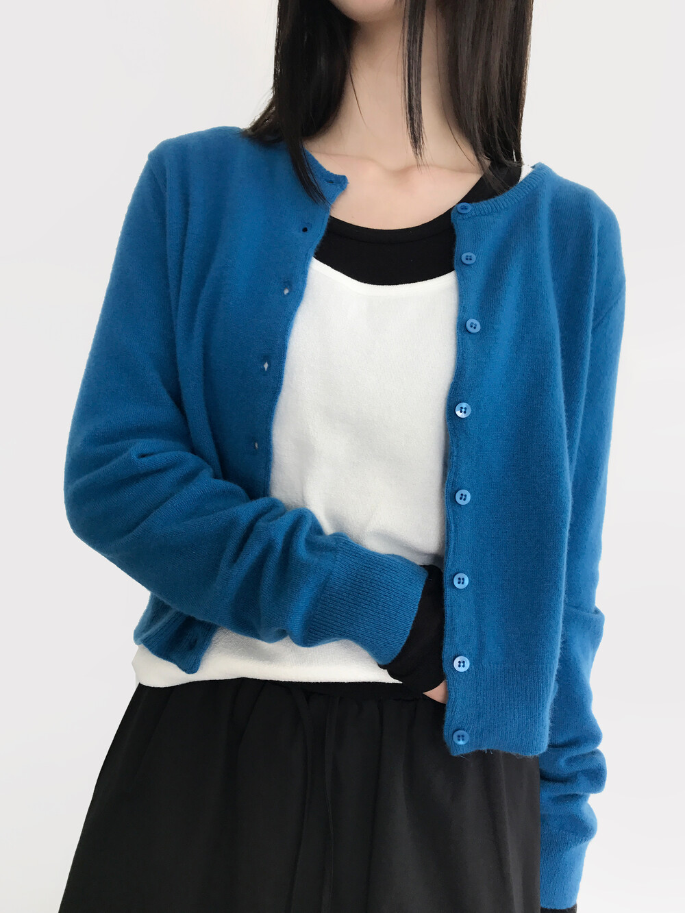 새파랗고 선명한 블루보단 한톤 다운된 포근한 블루에 가깝습니다.