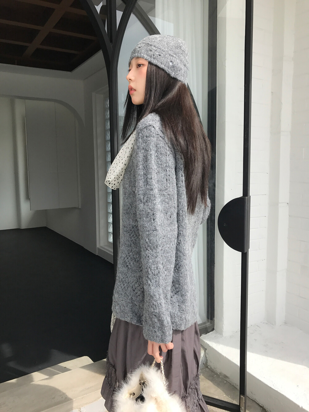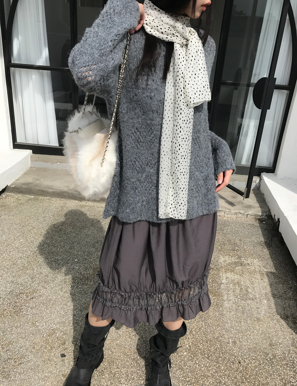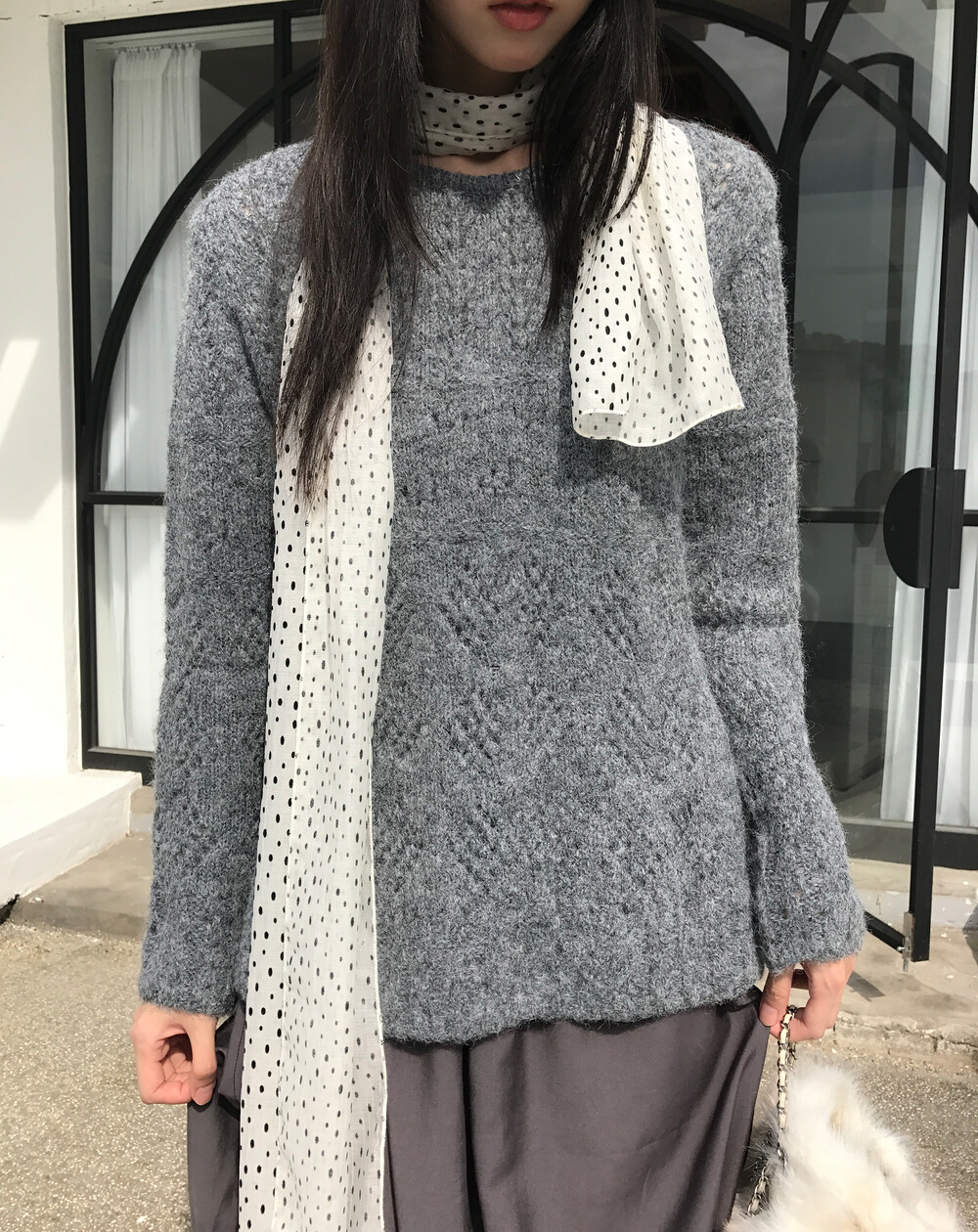 펀칭 레이스 패턴 니트: 빈티지하면서도 사랑스러운 무드 연출