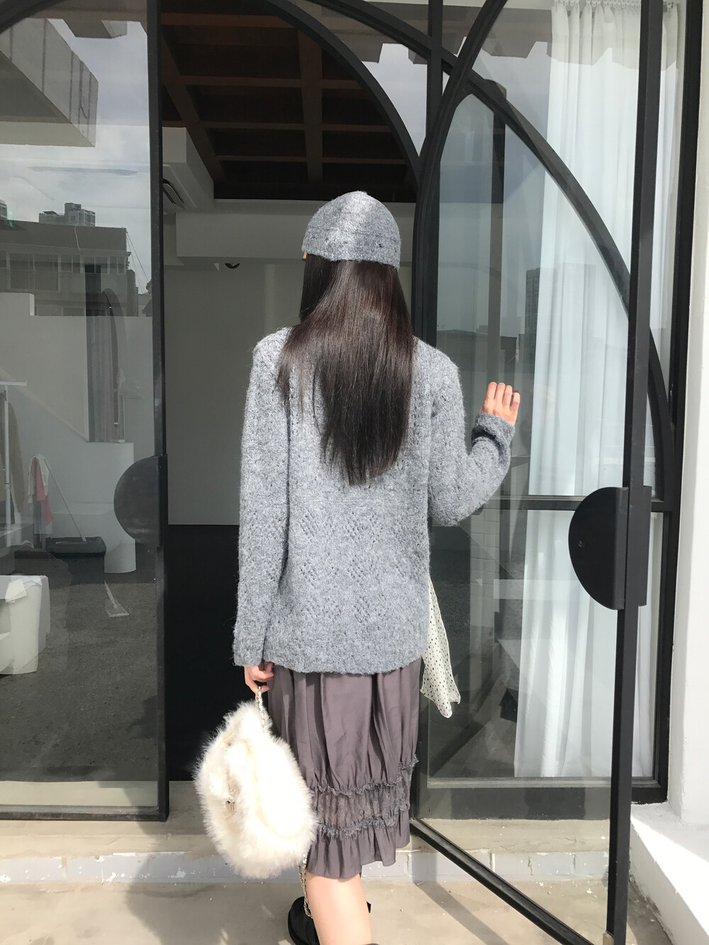 니트 단품으로는 캐주얼 & 로맨틱한 데일리룩