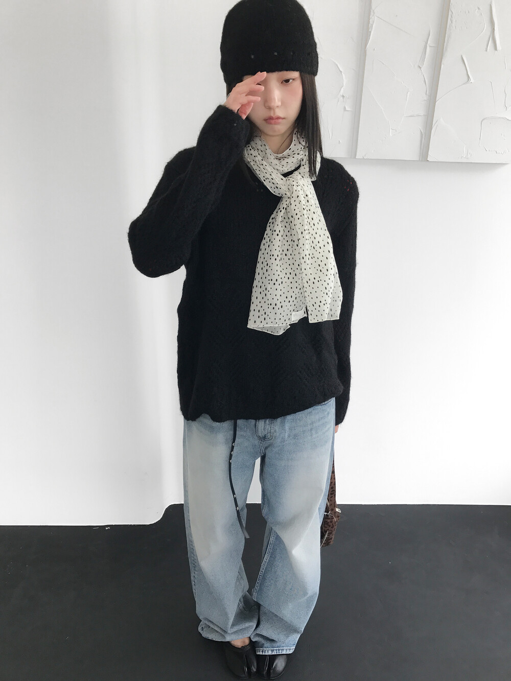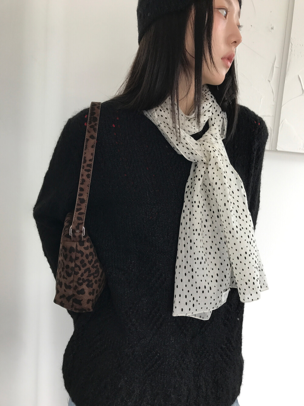 울 혼방의 가볍고 부드러운 스카시 펀칭 패턴 니트 + 비니 세트로, 세트 구성이라 스타일링이 훨씬 쉽고, 따뜻하면서도 러블리한 무드의 니트입니다.