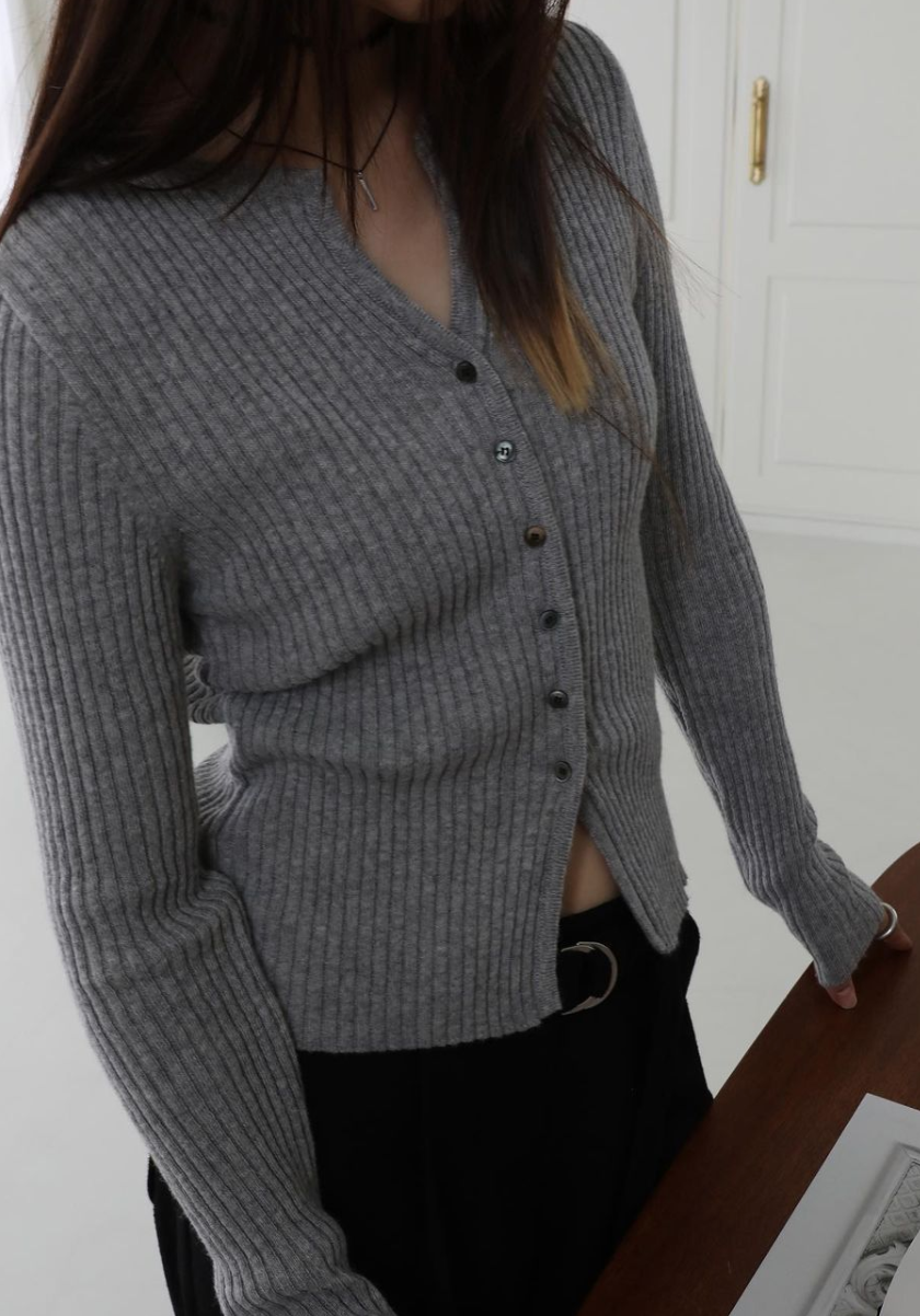 PLUMP RIBBED CARDIGAN IN HEATHER GREY (3C)