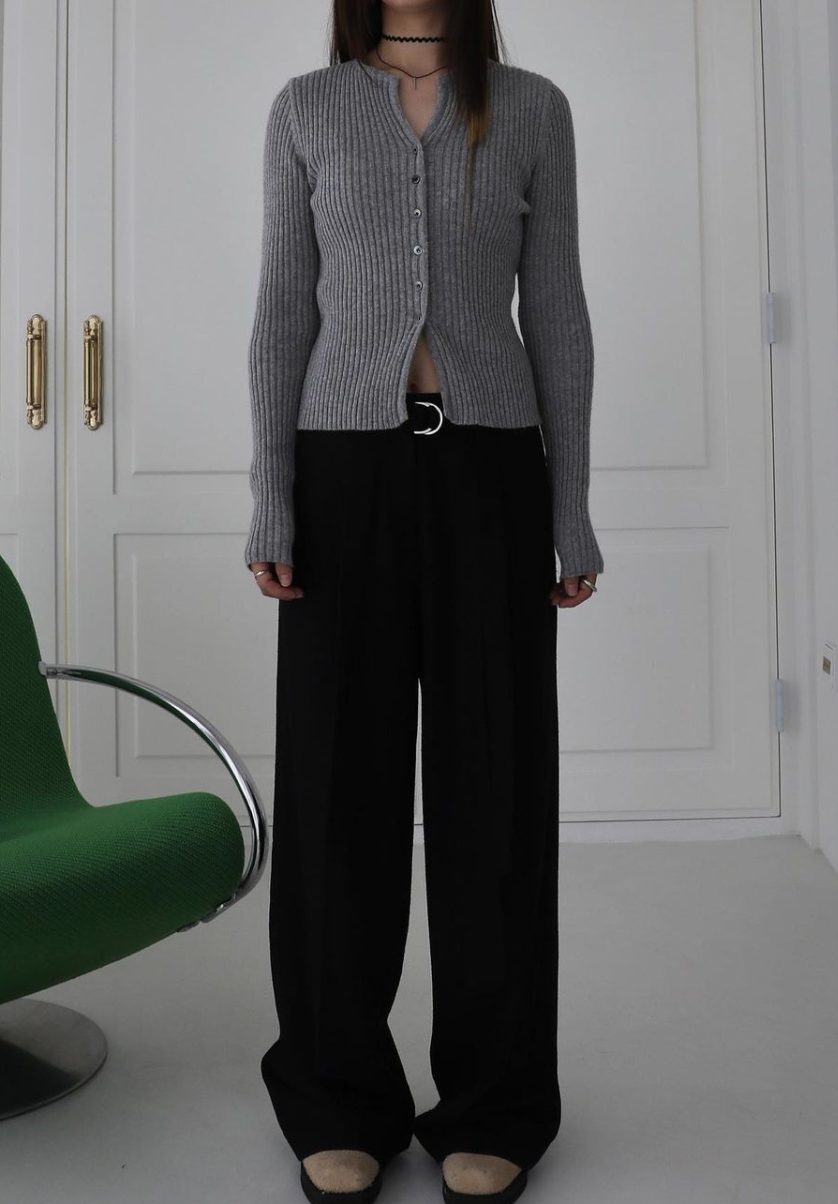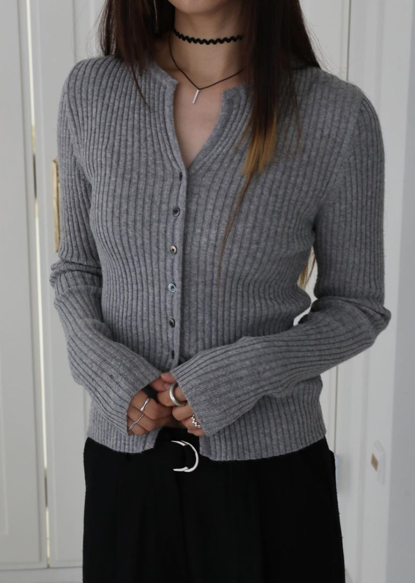 · 버튼 디테일이 독특한 슬림핏 가디건 니트 웨어