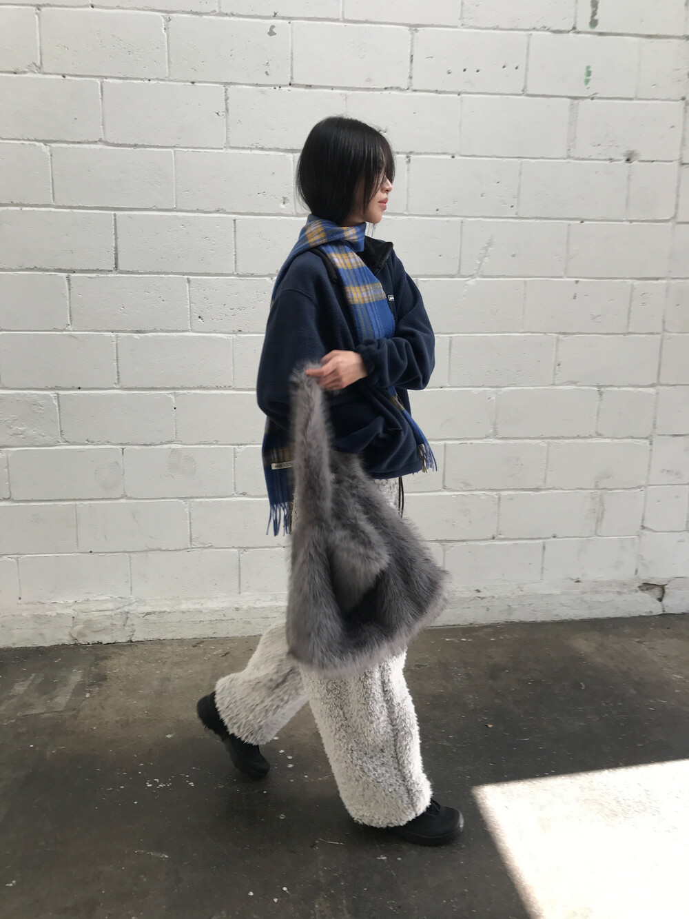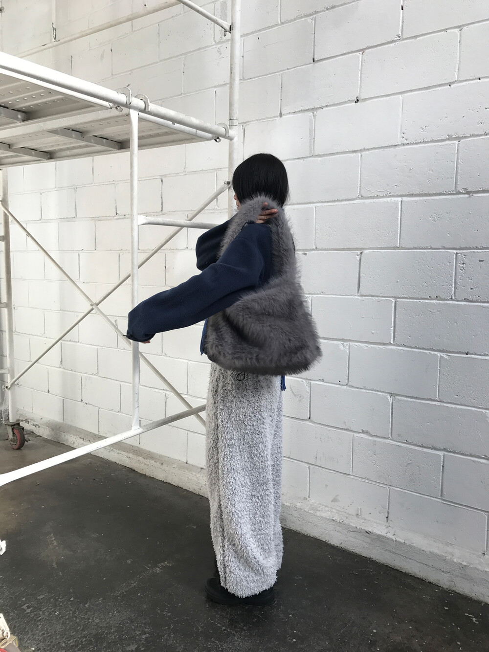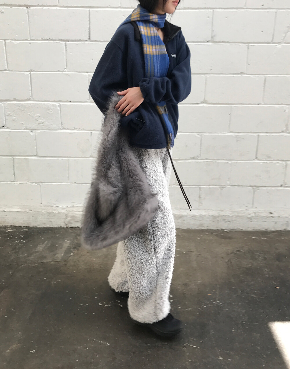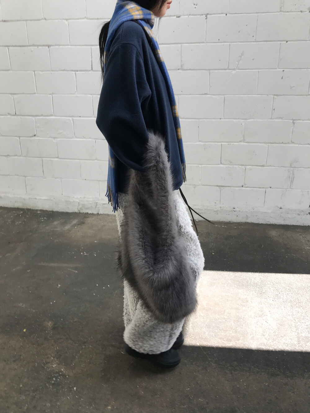 Bushy fur tote bag In Smoke (2c)