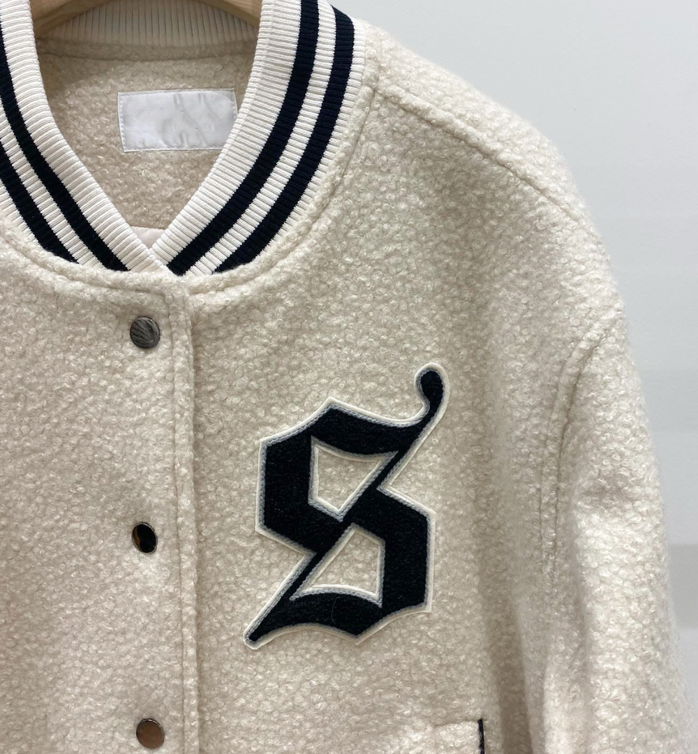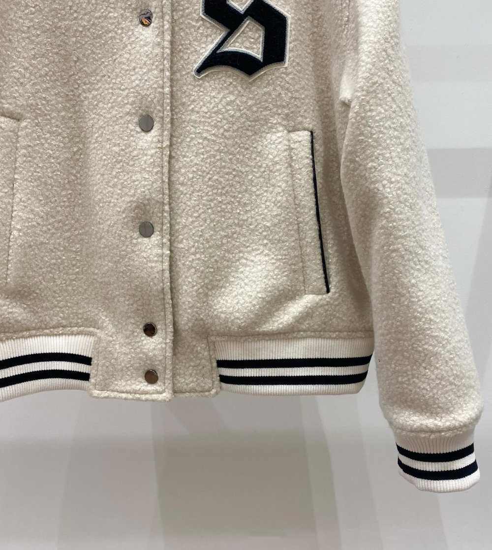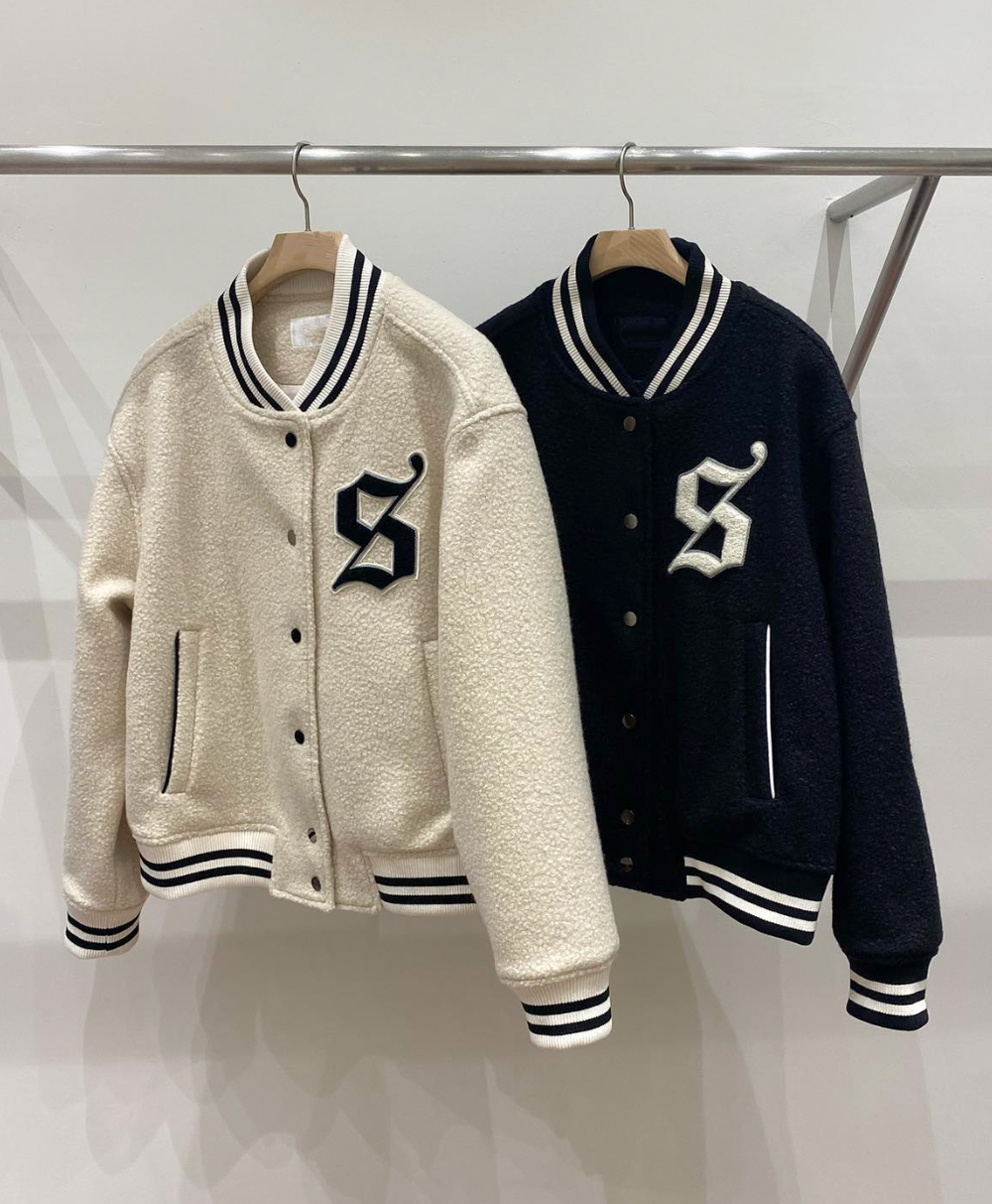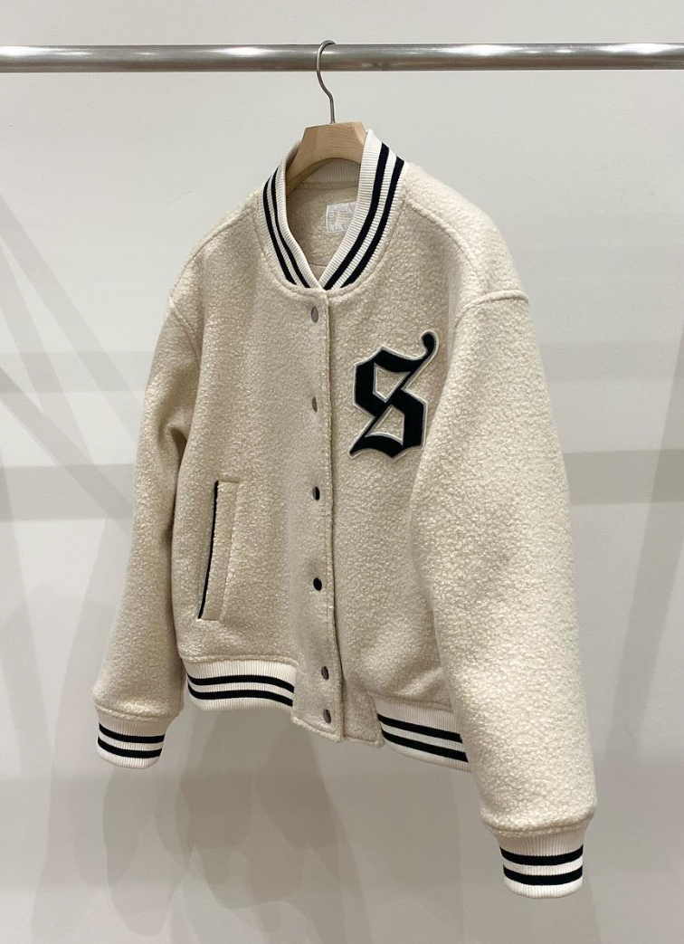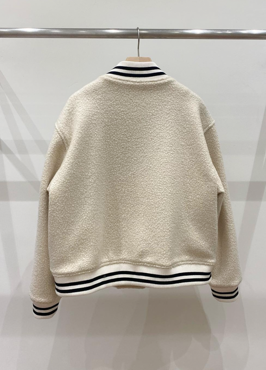곱슬곱슬한 헤어리한 터치감이 특징인 바시티점퍼입니다.