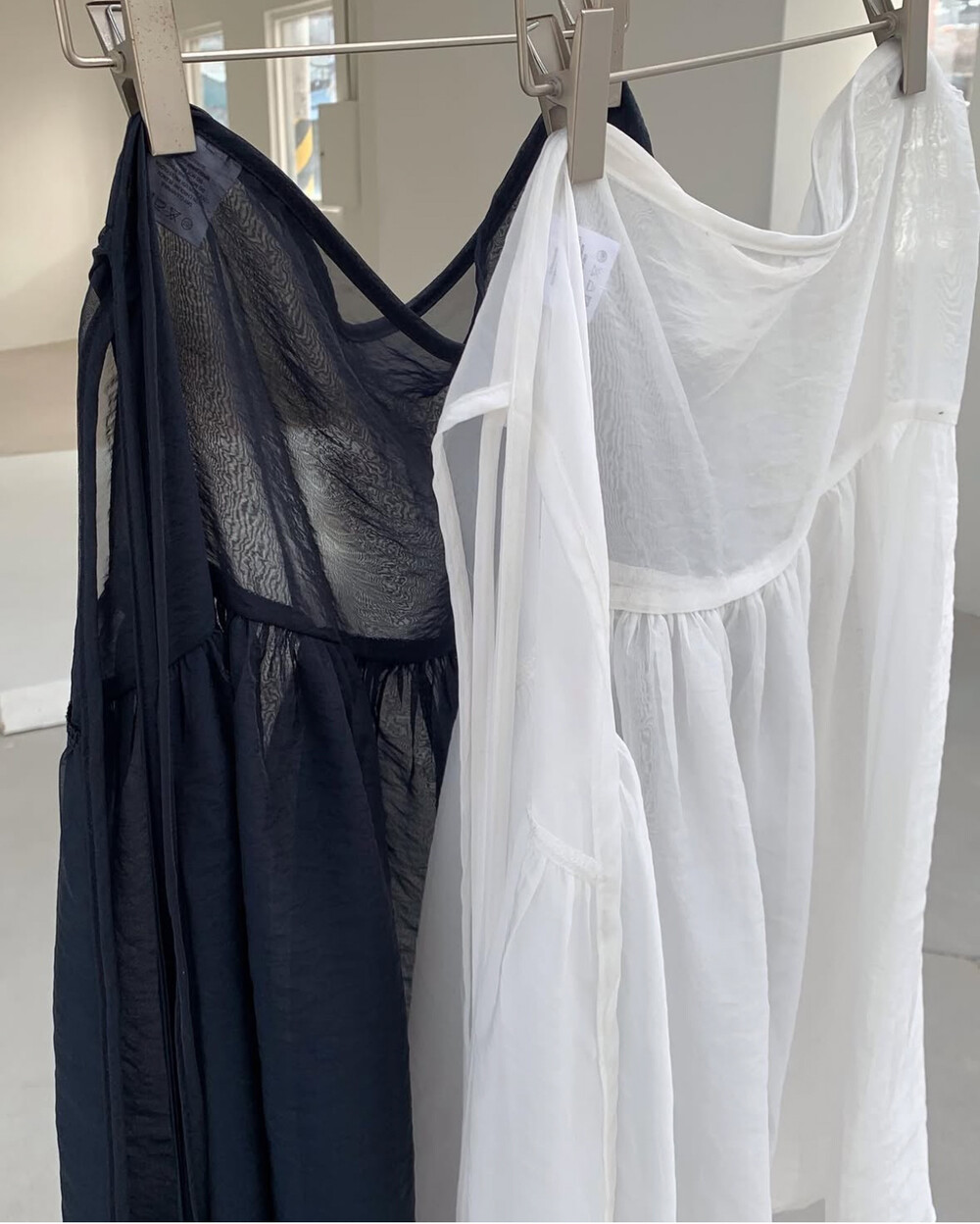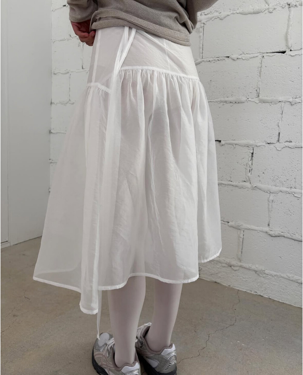 하늘하늘한 오간자 소재로 제작된 랩스커트.