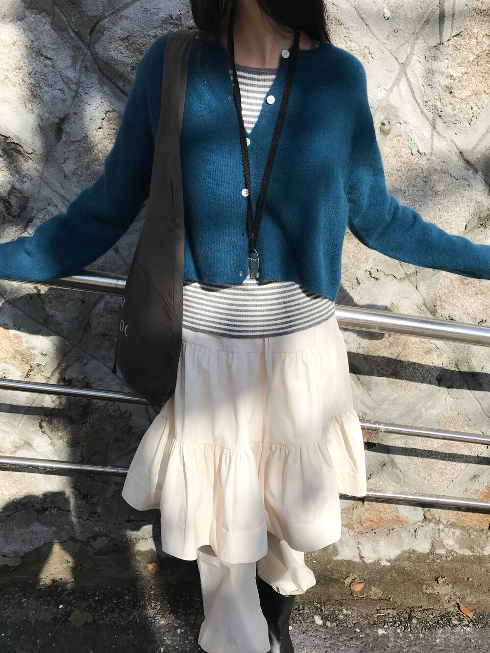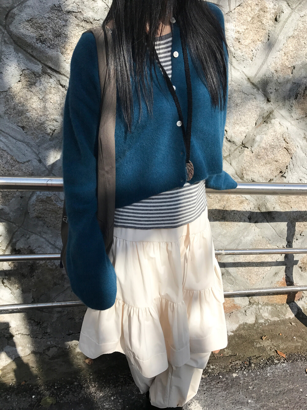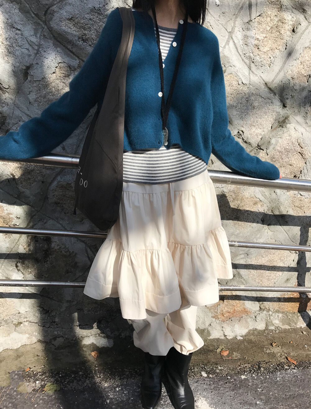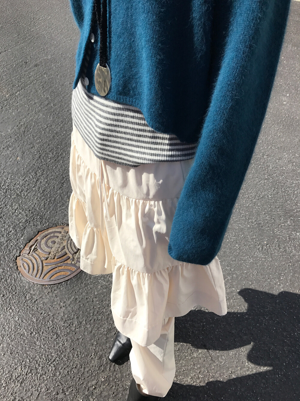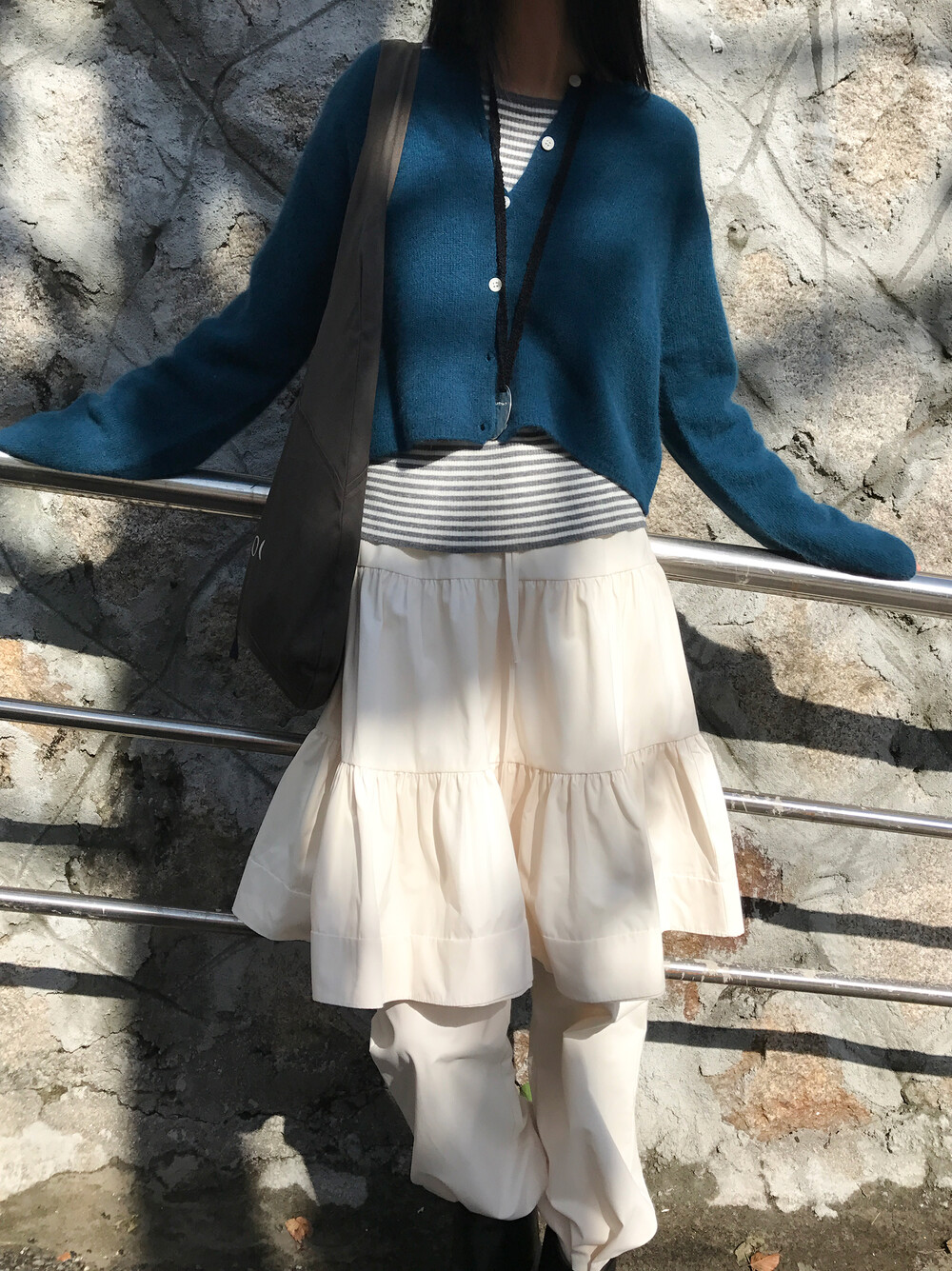 FW 시즌에 맞는 소재감으로 제작되었습니다. 캉캉스커트와 부츠컷 디자인 팬츠가 함께 레이어드 된 스커트팬츠입니다. 나일론이 혼방되어 포멀한 무드의 룩으로도 연출이 가능합니다.