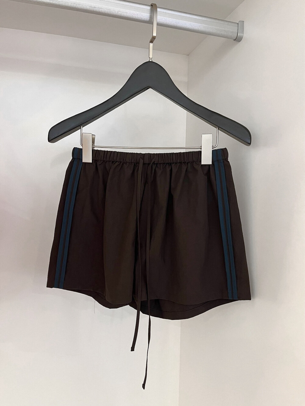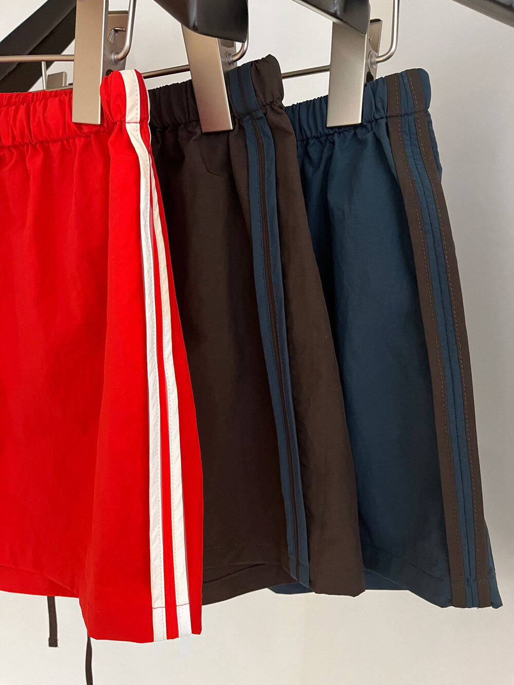 23년도에 이어 24년 시즌에도 대세인 트랙팬츠의 숏 기장 버전으로 새롭게 선보여드립니다. M627의 시그니처 컬러인 레드와 데일리로 매치하기 좋은 브라운 컬러 두 컬러로 준비했습니다. 관리가 편리한 나일론 소재이며, 시접부분에 파이핑처리를 해 트랙팬츠의 라인을 나타냈습니다.