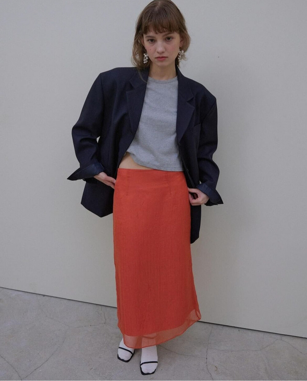 - 시어한 오간자 소재로 여름의 무드를 살린 롱 스커트입니다.