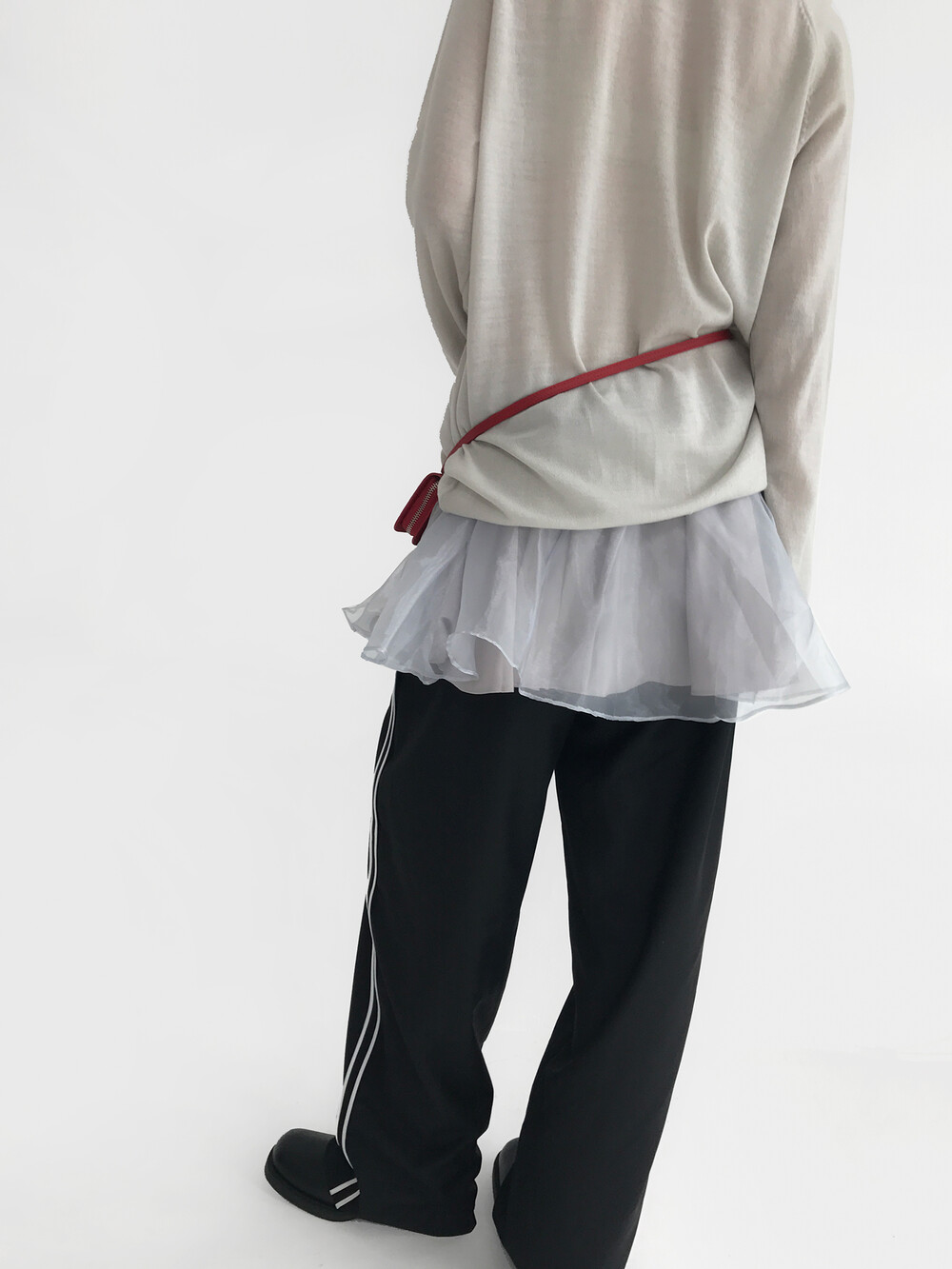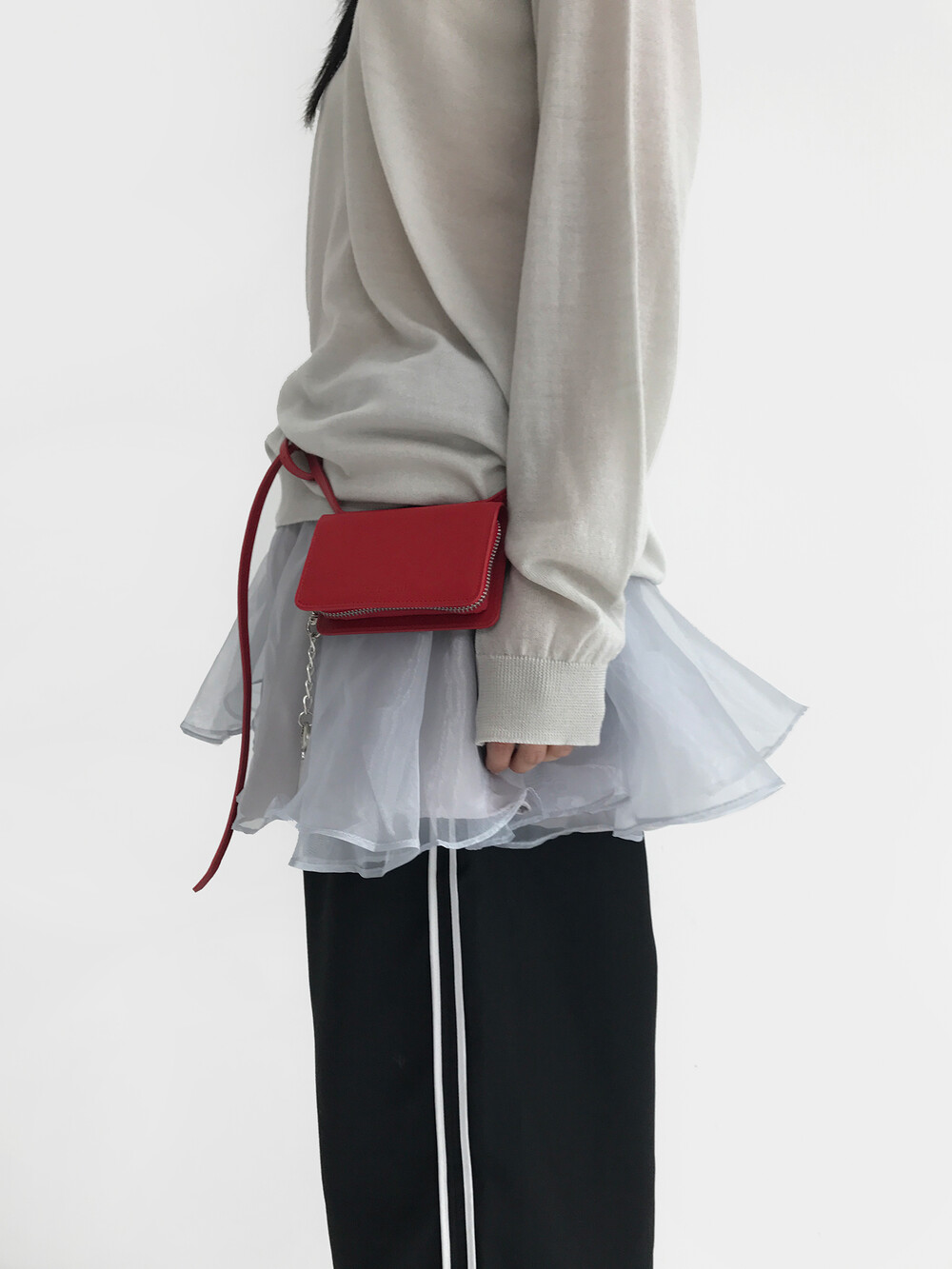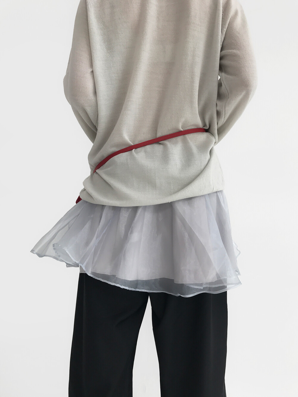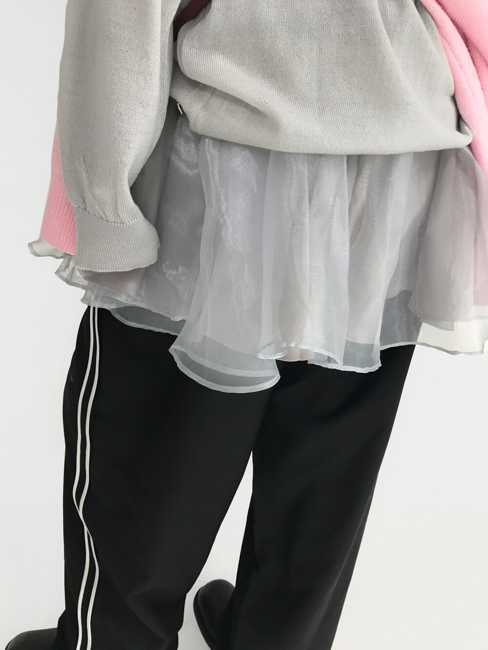 - 볼륨감이 있는 오간자 겉감에 기장 차가 있는 홑곁 안감을