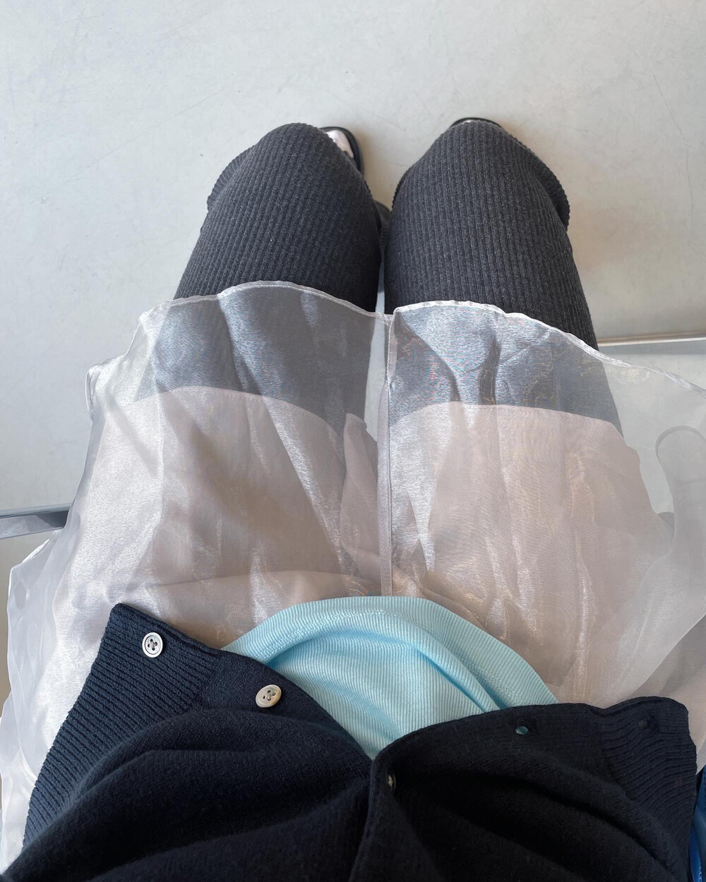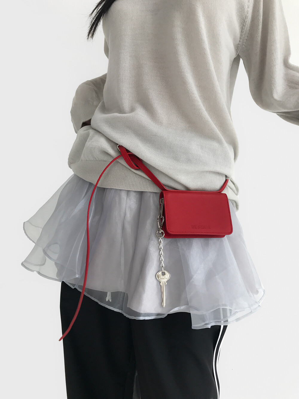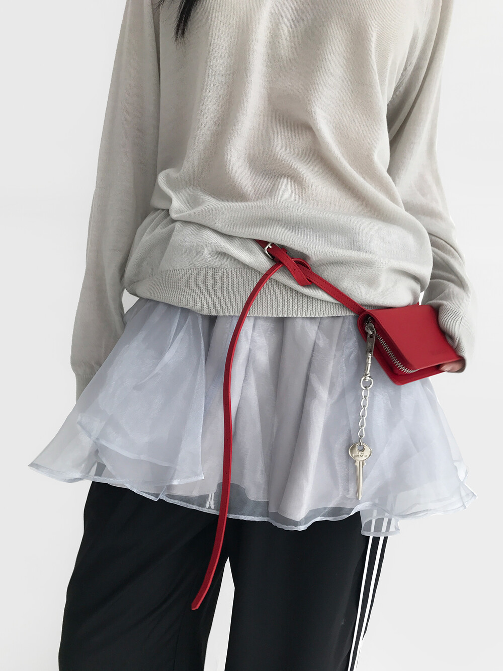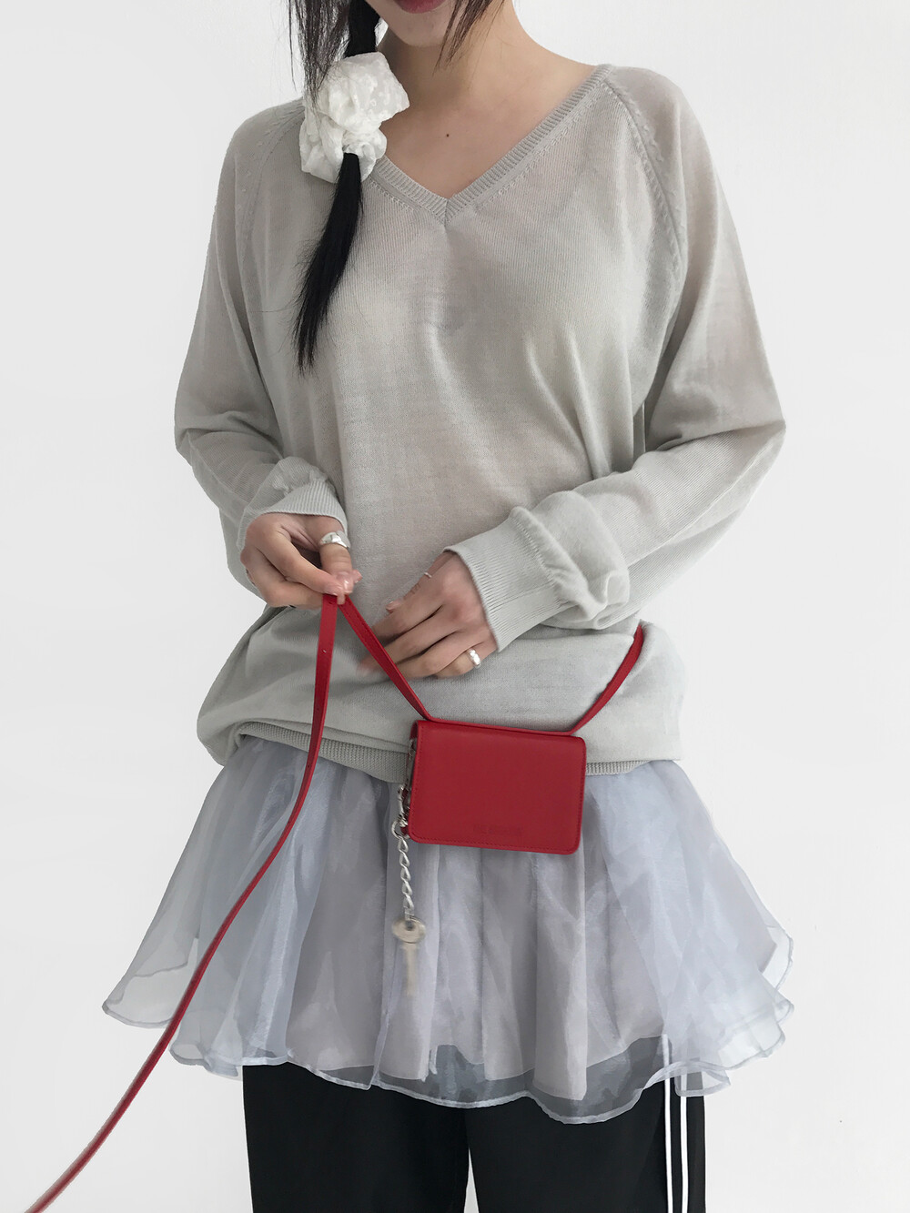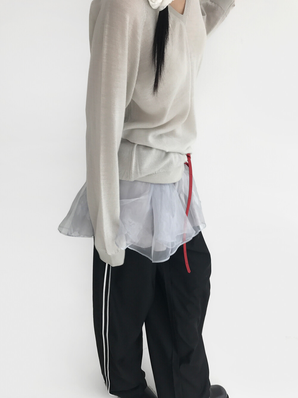 - 볼륨감이 있는 오간자 겉감에 기장 차가 있는 홑곁 안감을