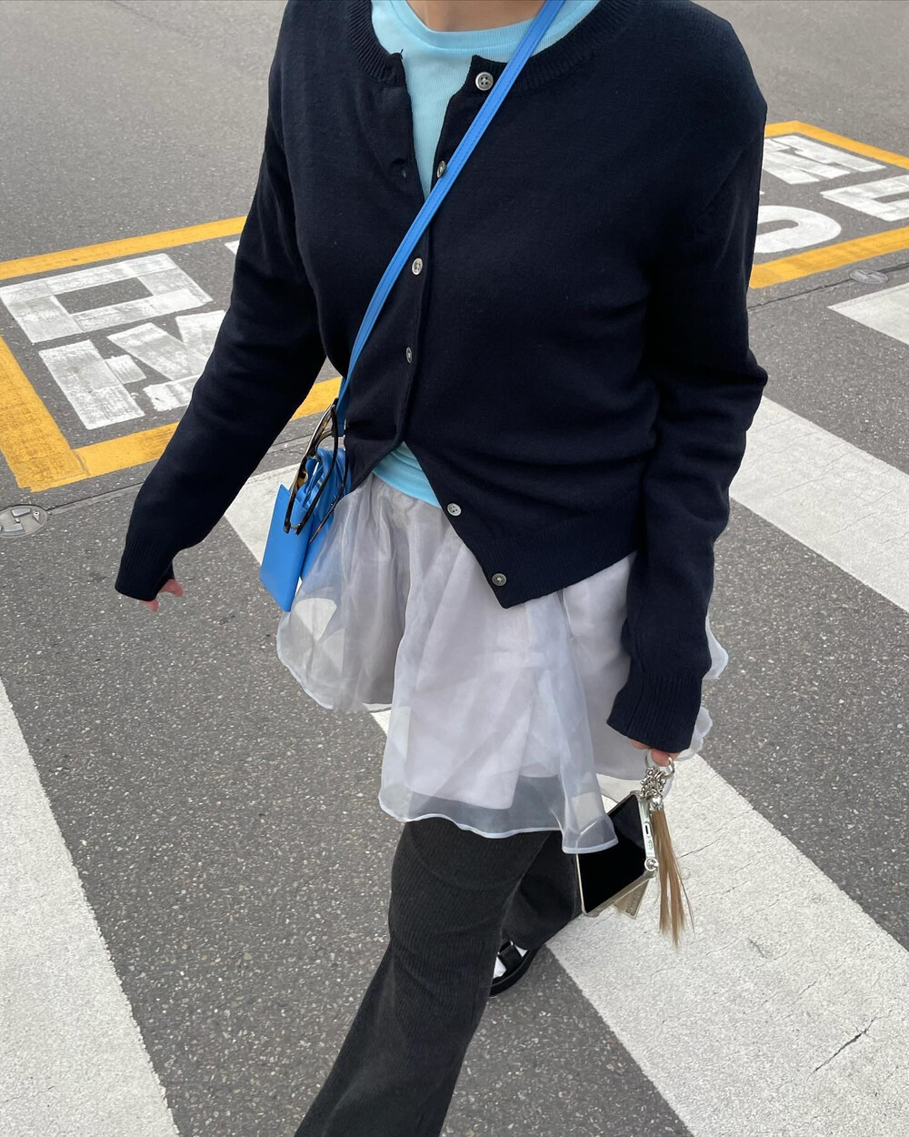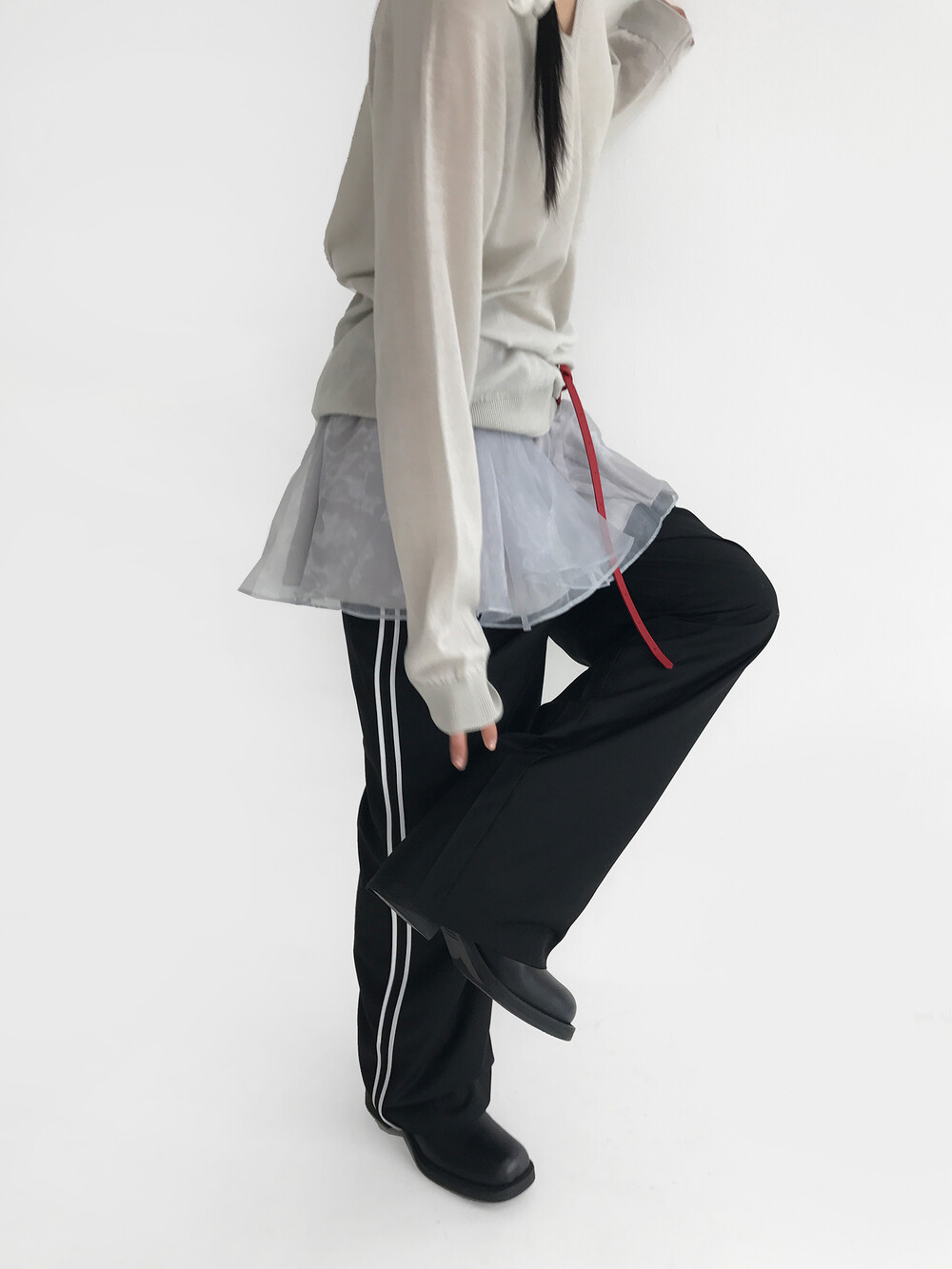 - 숏한 기장감으로 다양한 팬츠, 스커트, 드레스 등에 레이어링하여 연출이 가능합니다.