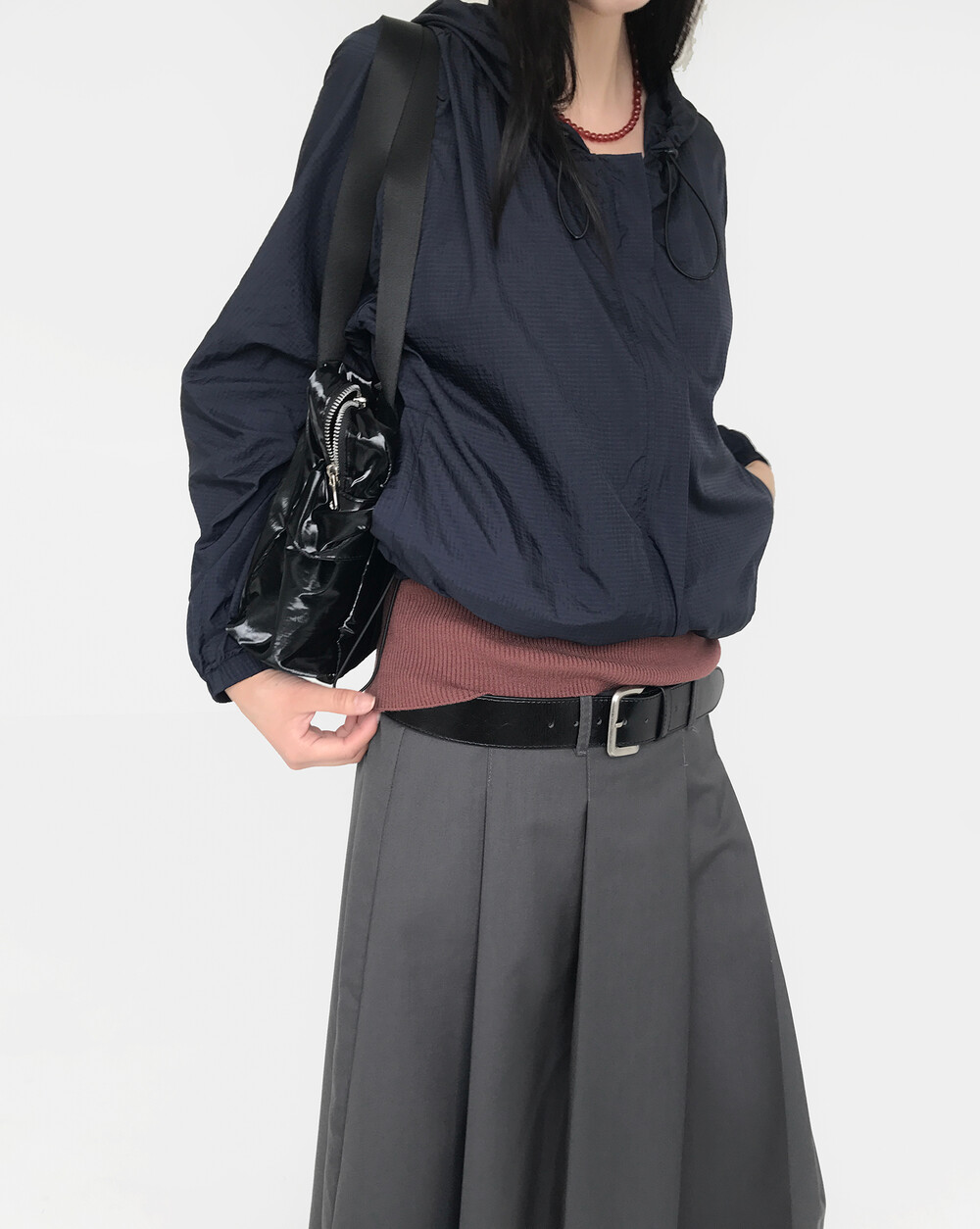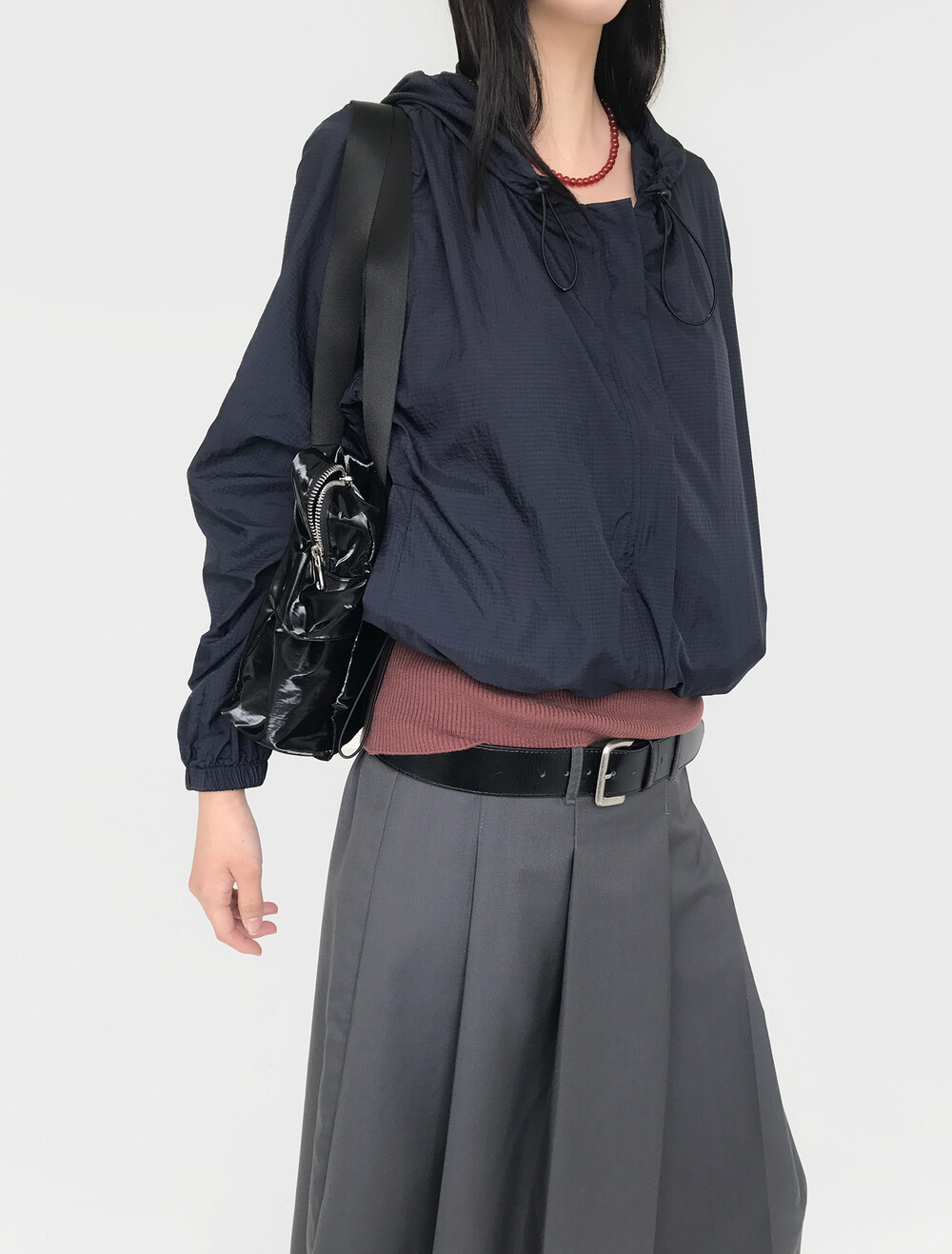- 지퍼 손잡이 부분에는 스트랩 디테일로 장식성을 더했습니다.