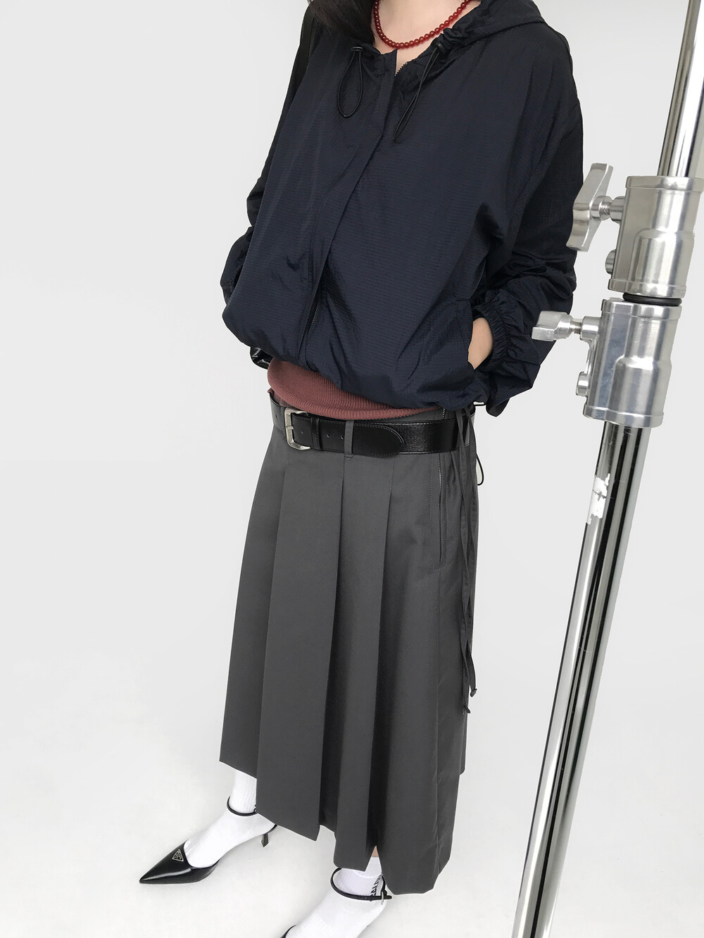 - 허리 한쪽 지퍼 클로징으로 이지한 착용이 가능합니다.