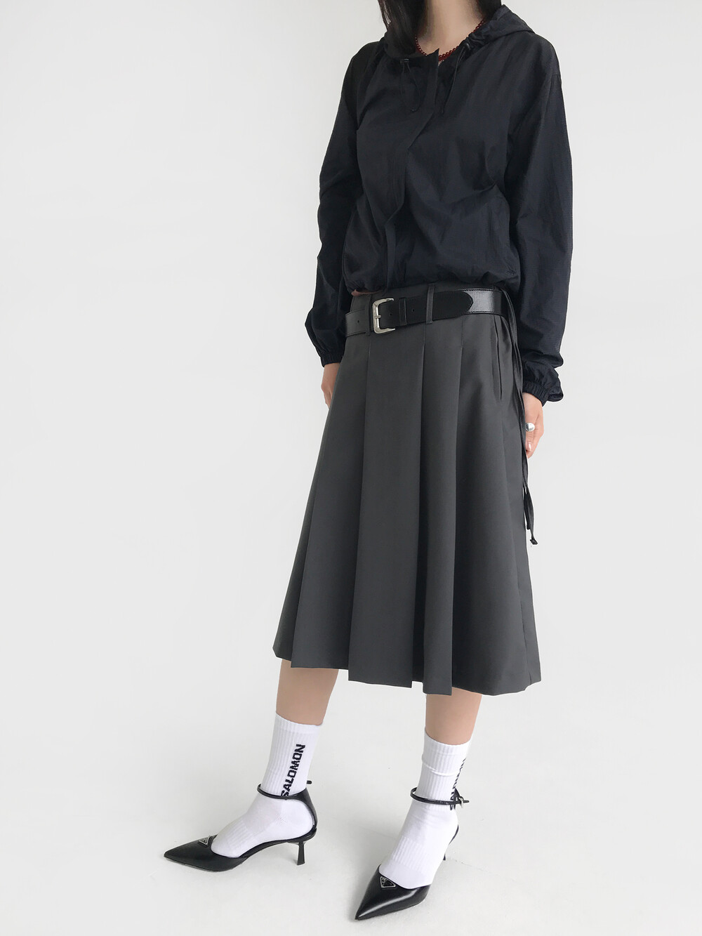 ACADEMY PLEATED SKIRT, CHARCOAL (2C)