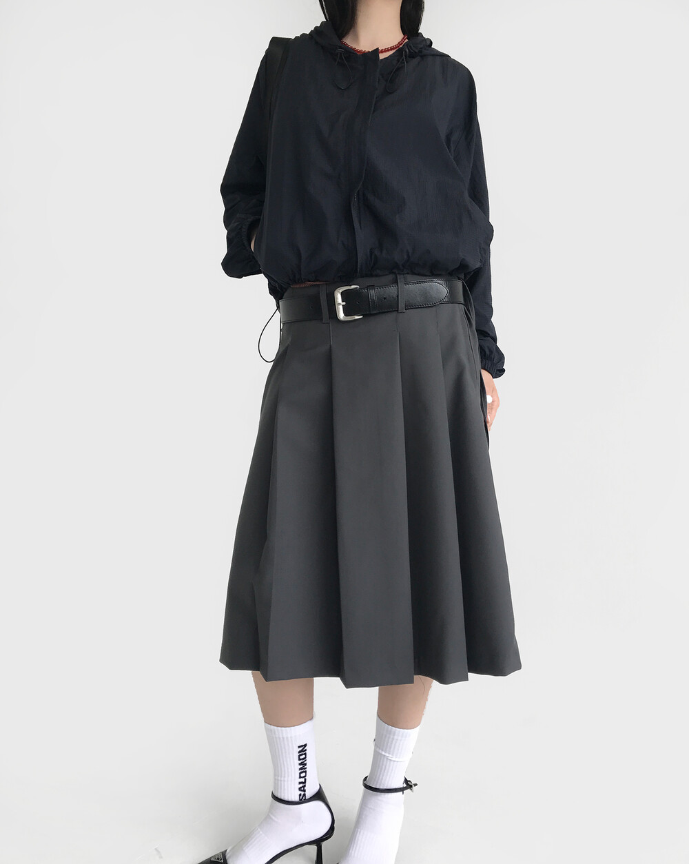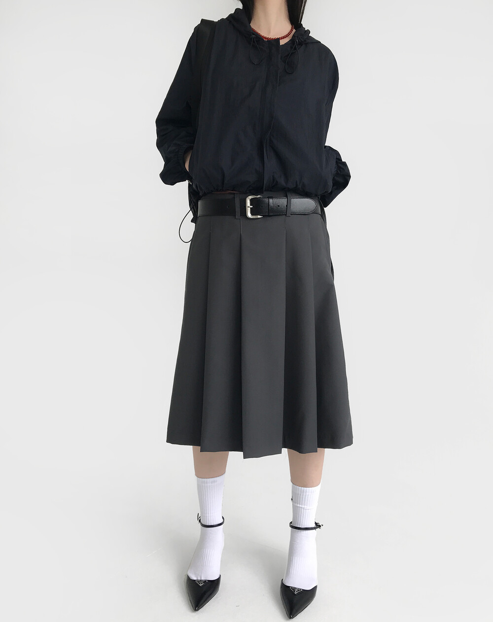 - 부드럽게 흐르는 레이온 혼방 소재로 제작된 플리츠 스커트입니다.