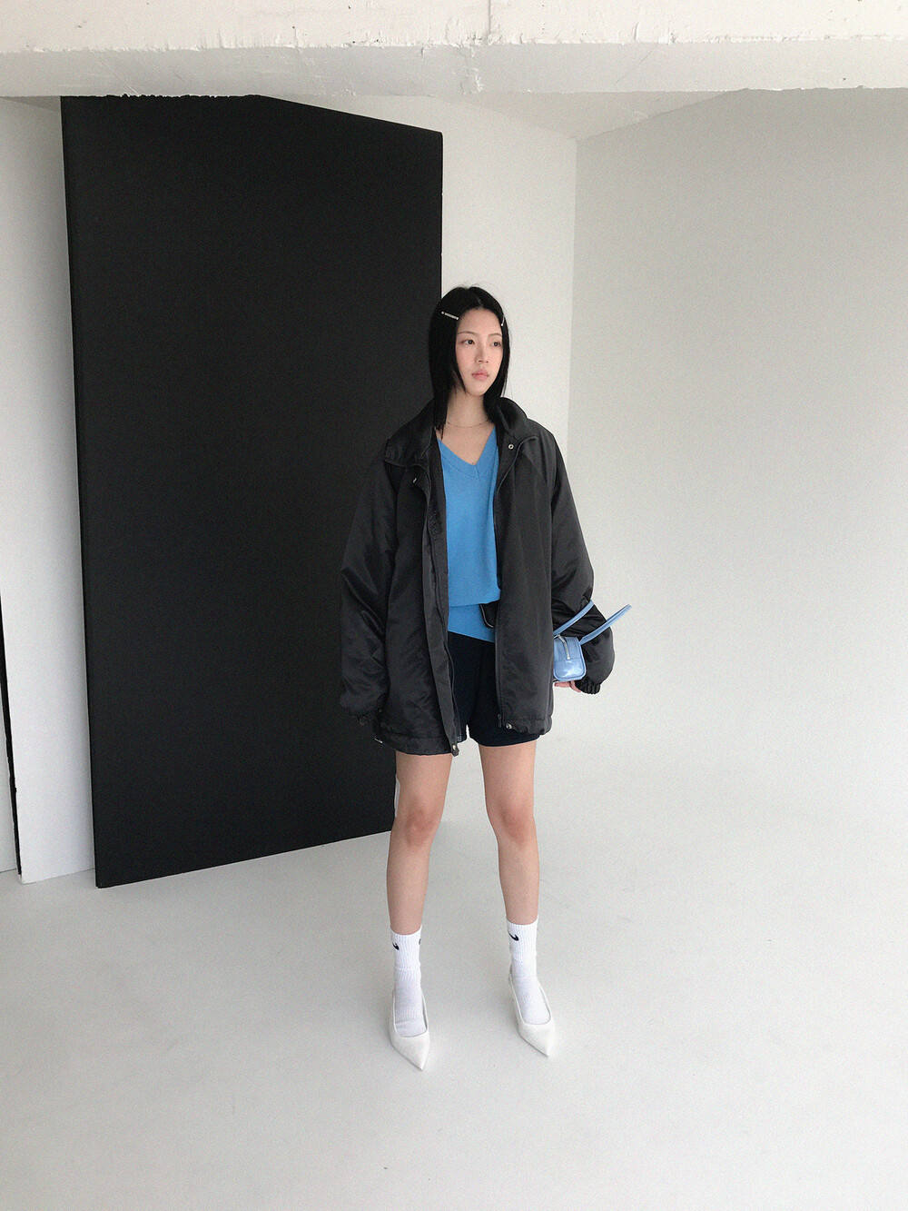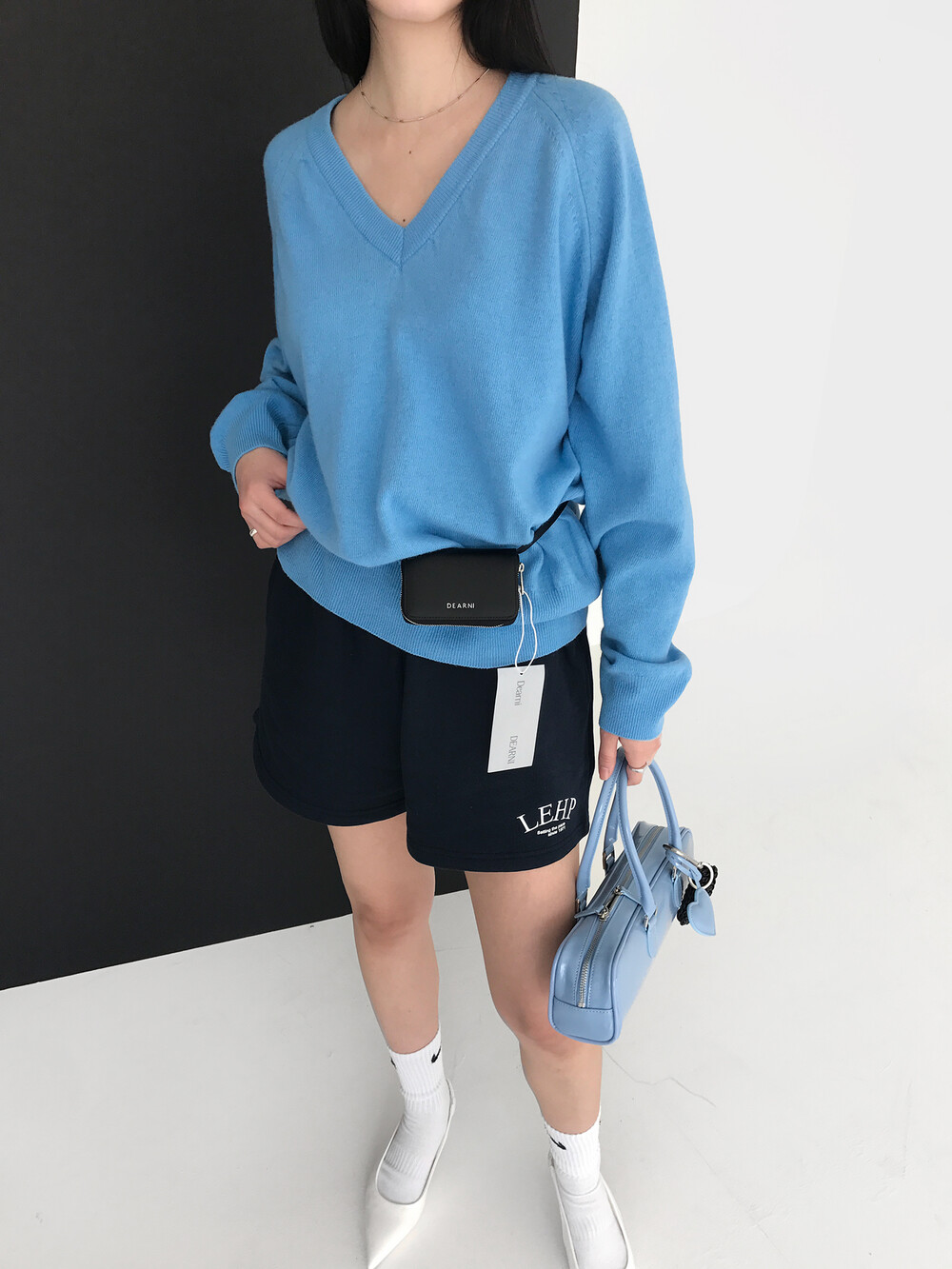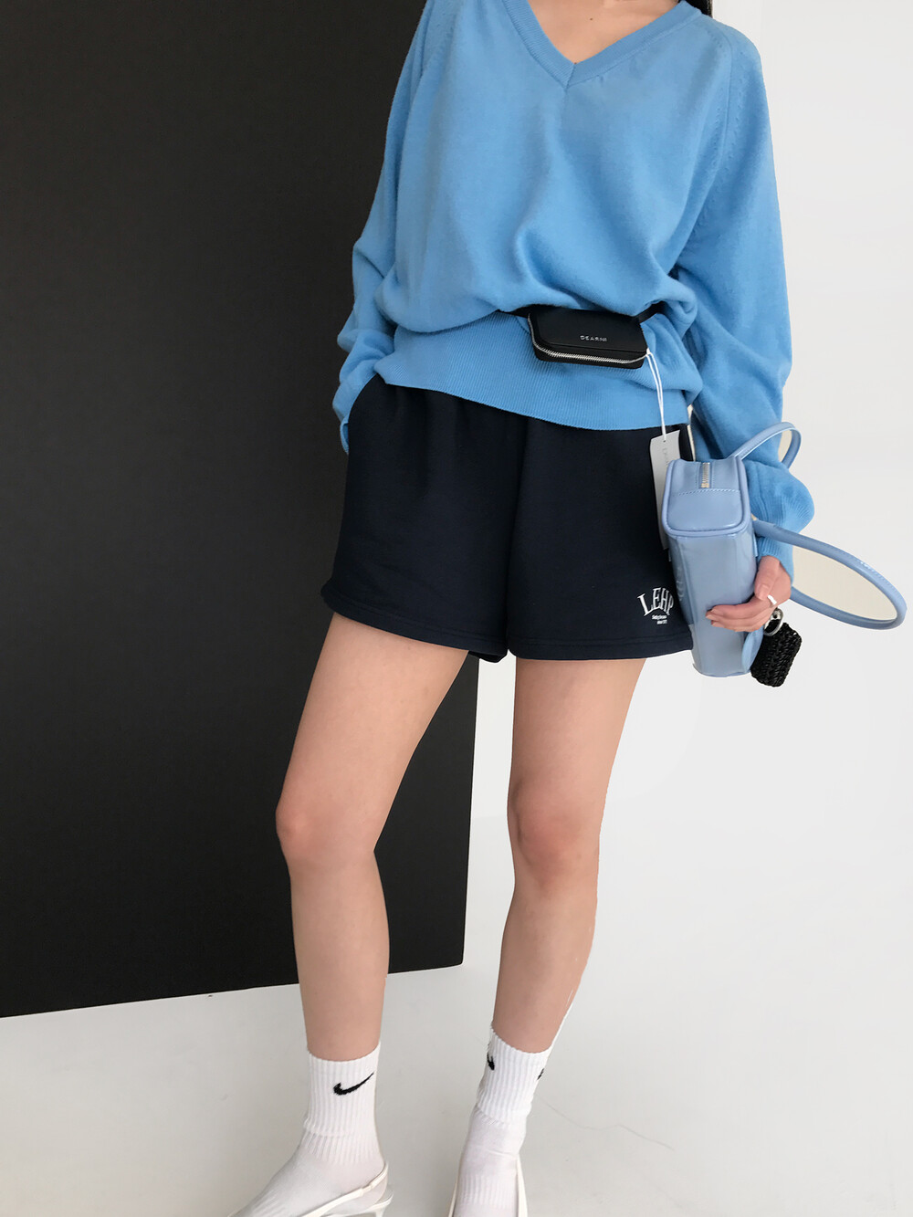 - 크롭한 기장의 쇼츠 디자인으로 다양한 탑과 스타일링하여