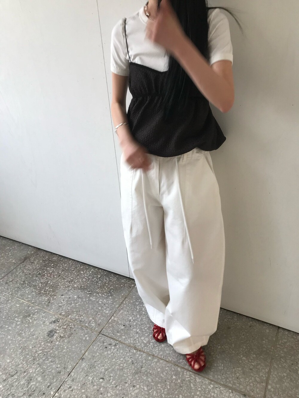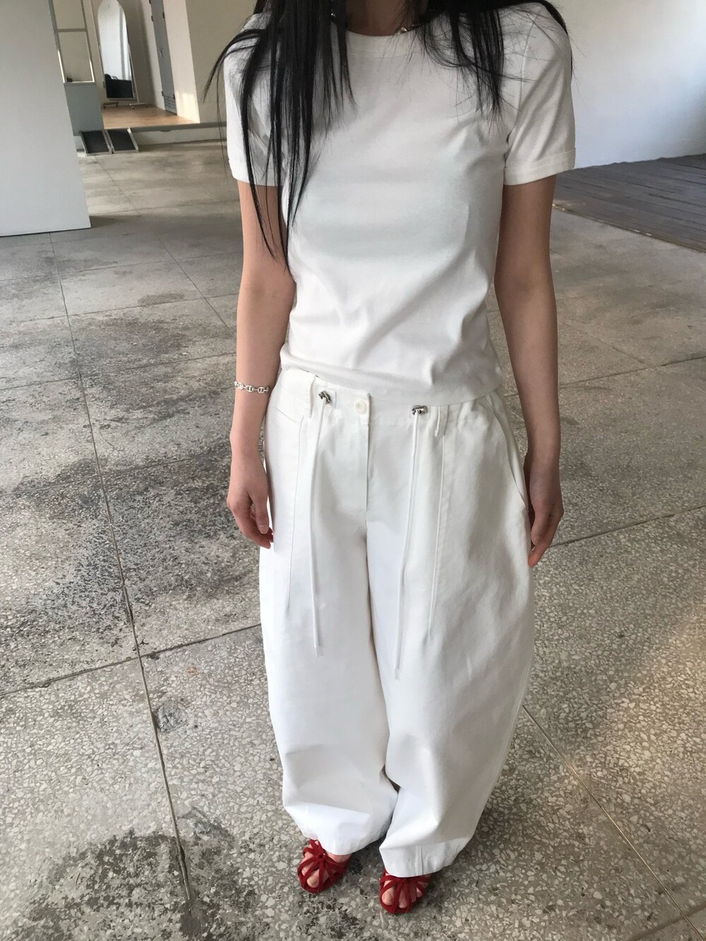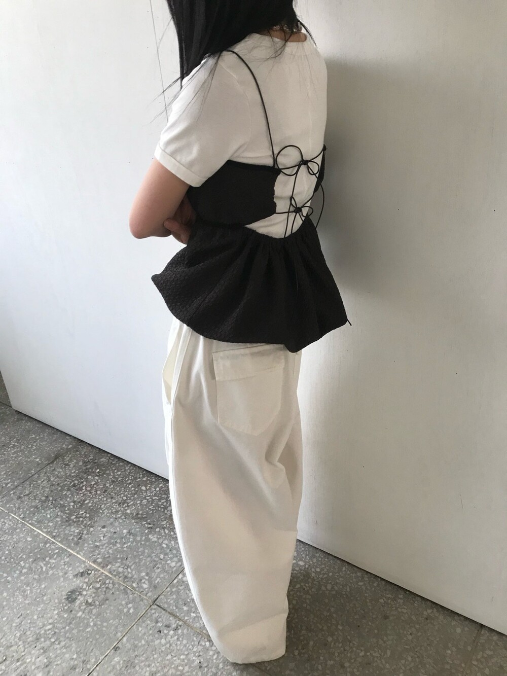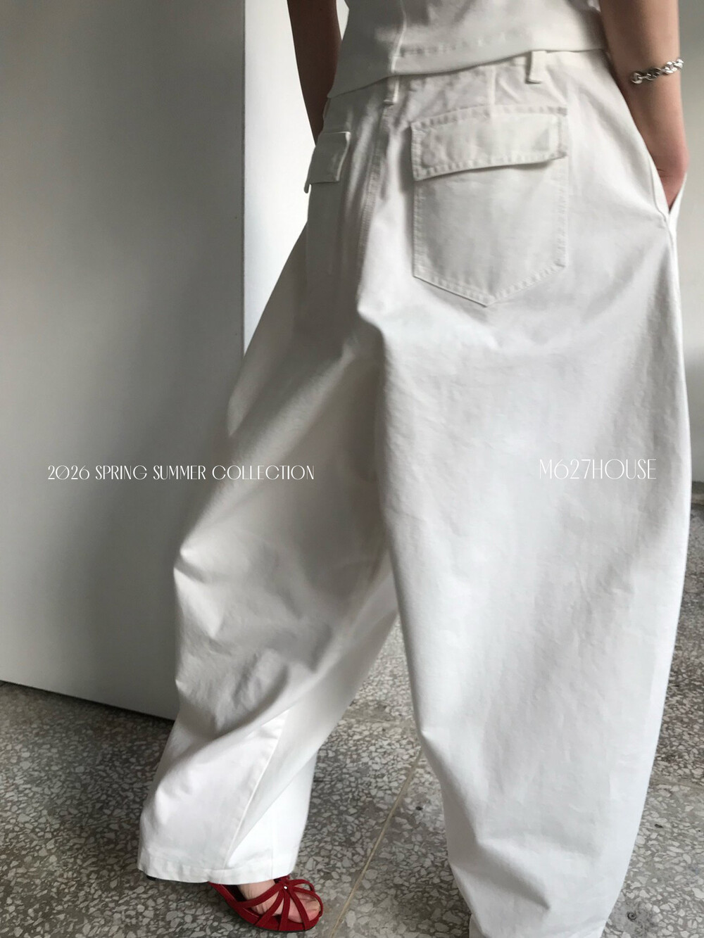 허리부분의 스트링으로 사이즈 조절이 가능합니다.