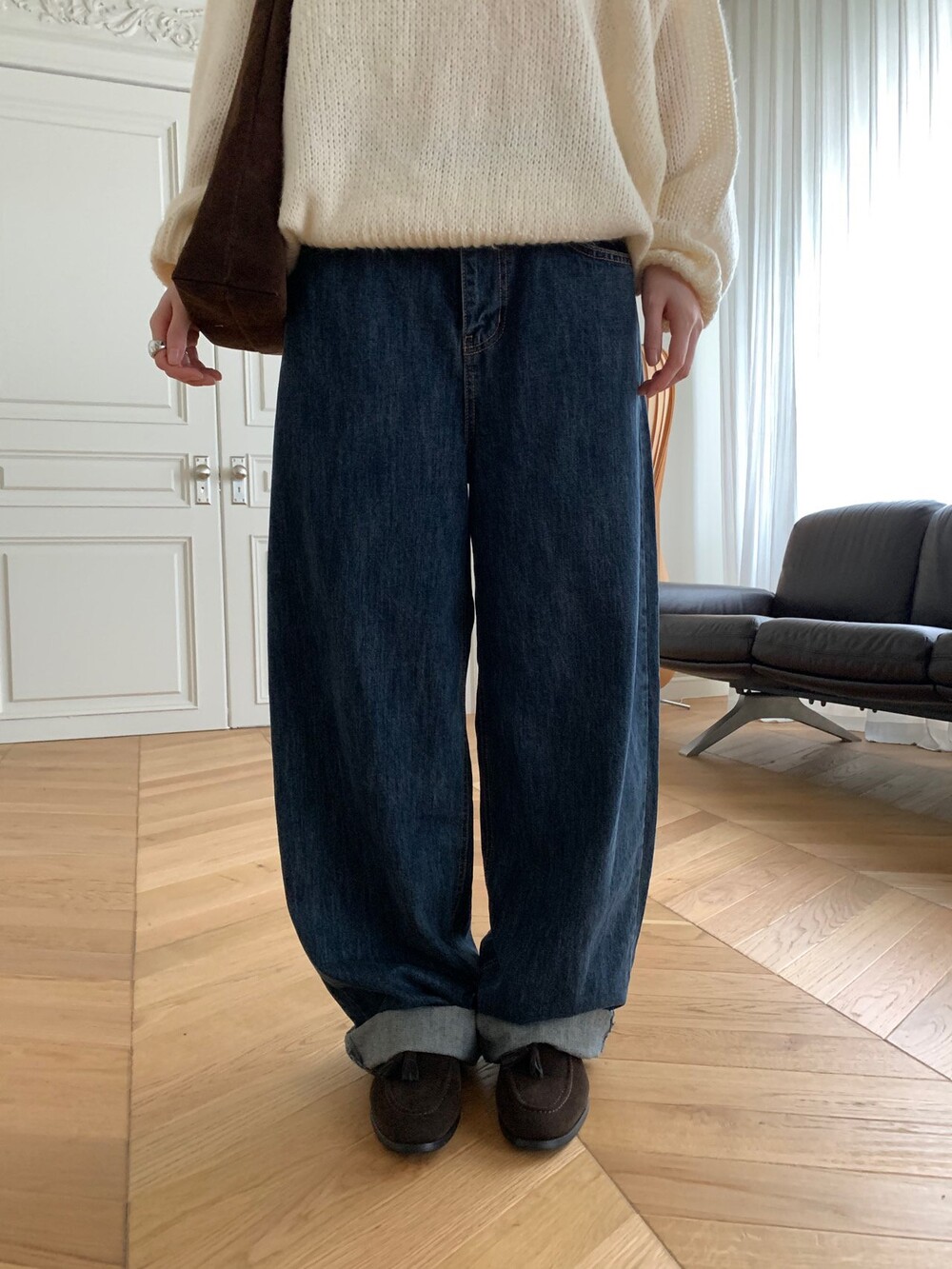 ✷ 짙은 네이비빛의 오묘한 컬러감에 한눈에 반했던 데님입니다. 살짝 커브드 실루엣으로 입었을 때 핏까지 완벽한 데님이에요. 특히 저는 이런 컬러감의 인디고 데님은 어디서도 보지 못했던 것 같아요.