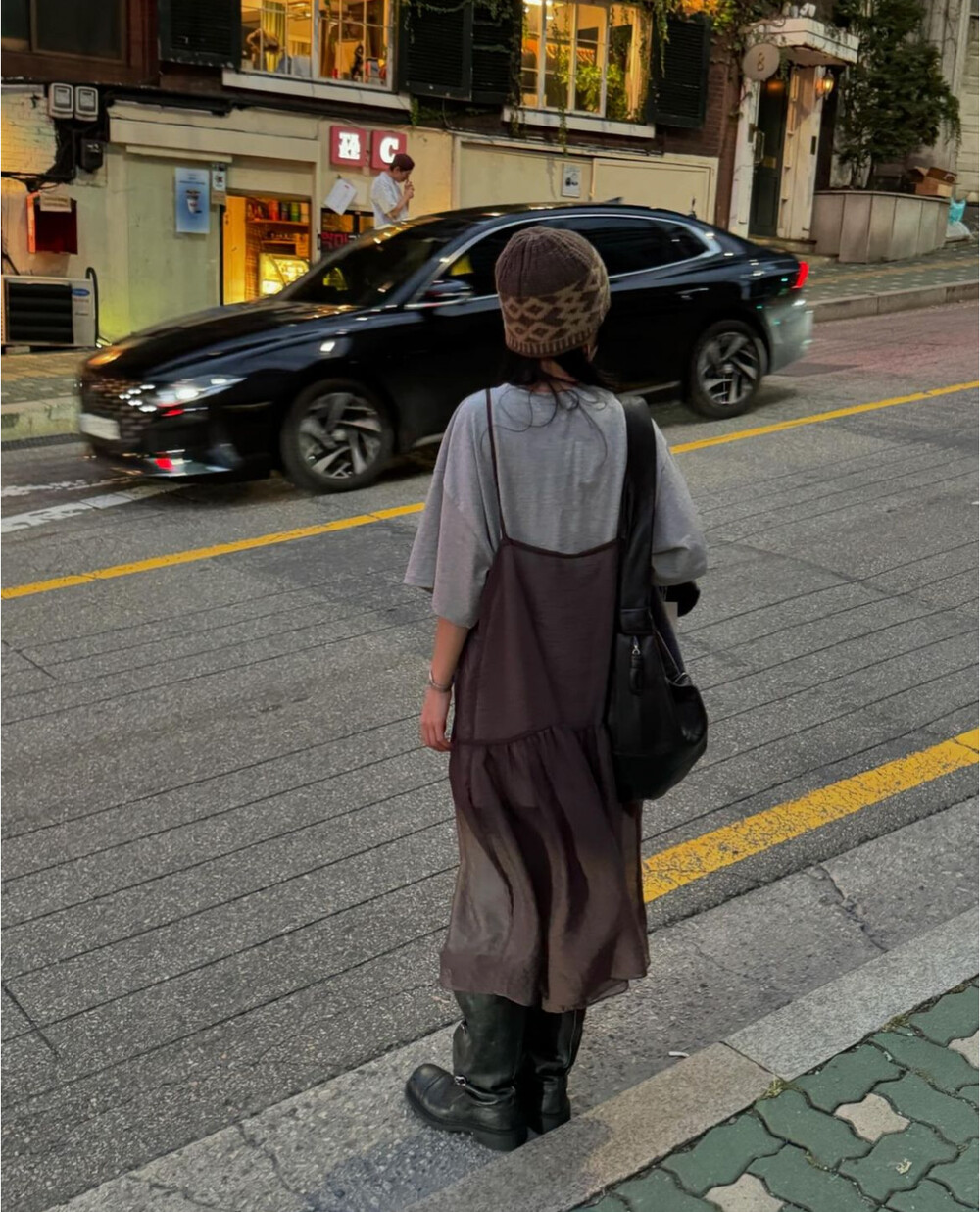 은은하게 비치는 쉬어한 소재감과 어깨 스트랩이 여유로운 길이로 제작되어 다양한 아이템과 레이어드하기에 좋습니다.