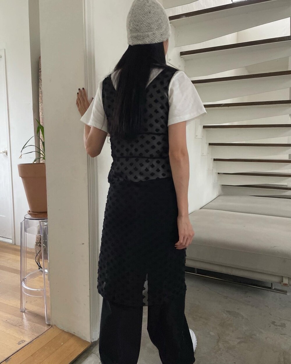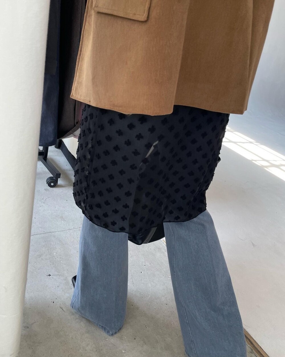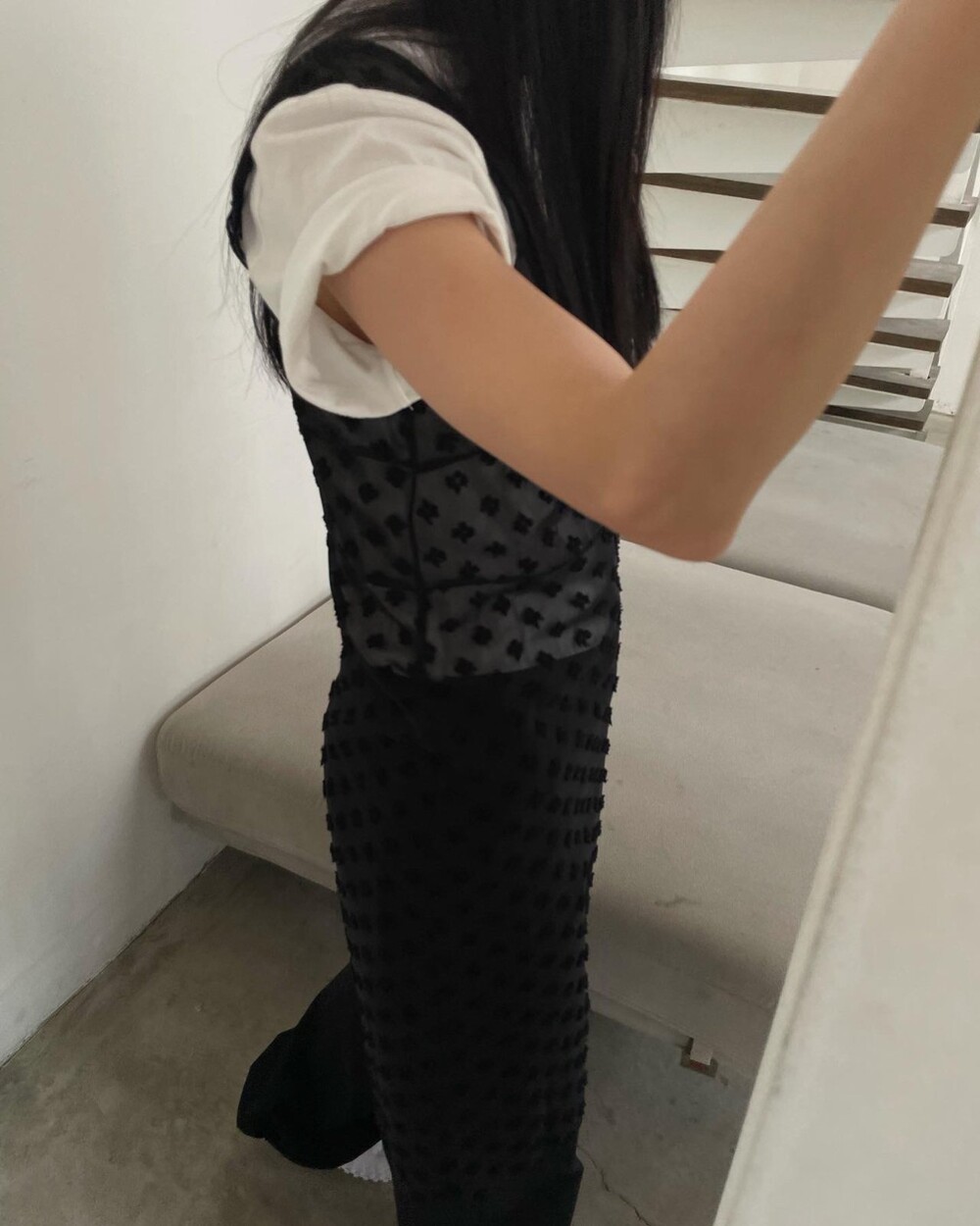 쉬어한 소재의 티셔츠 안에 레이어드 해도 슬쩍 보이는 도트무늬가