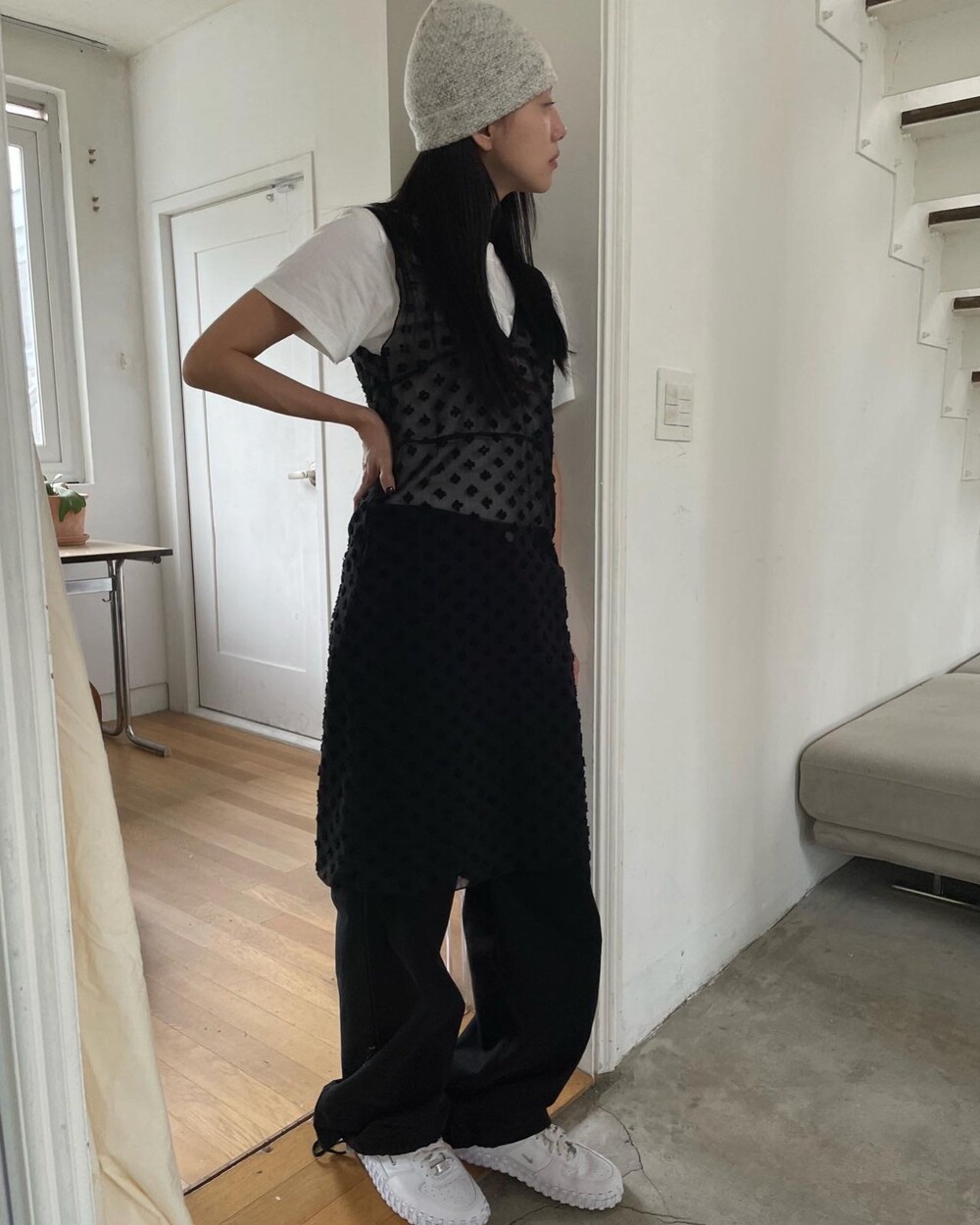 기장감이 더 긴 스커트를 원피스 안에 넣어서 레이어드해서 입어도 되고,