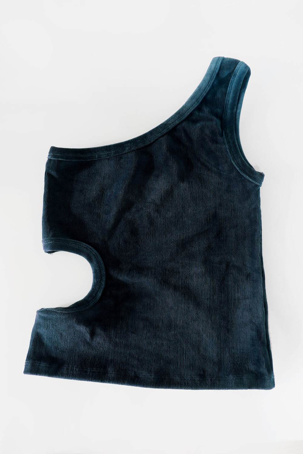 CHUNKY CORDUROY CUT OUT TOP IN BLACK (3C)