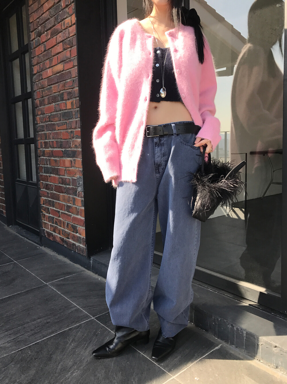 그리고 박시한 가디건들 중 브이넥은 많이 봤지만 이렇게 라운드 네크라인은 더욱 매력적으로 다가왔어요. 라운드 네크라인과 여유있는 실루엣은 다양한 스타일링에 레이어링하여 매치하기 좋겠죠?