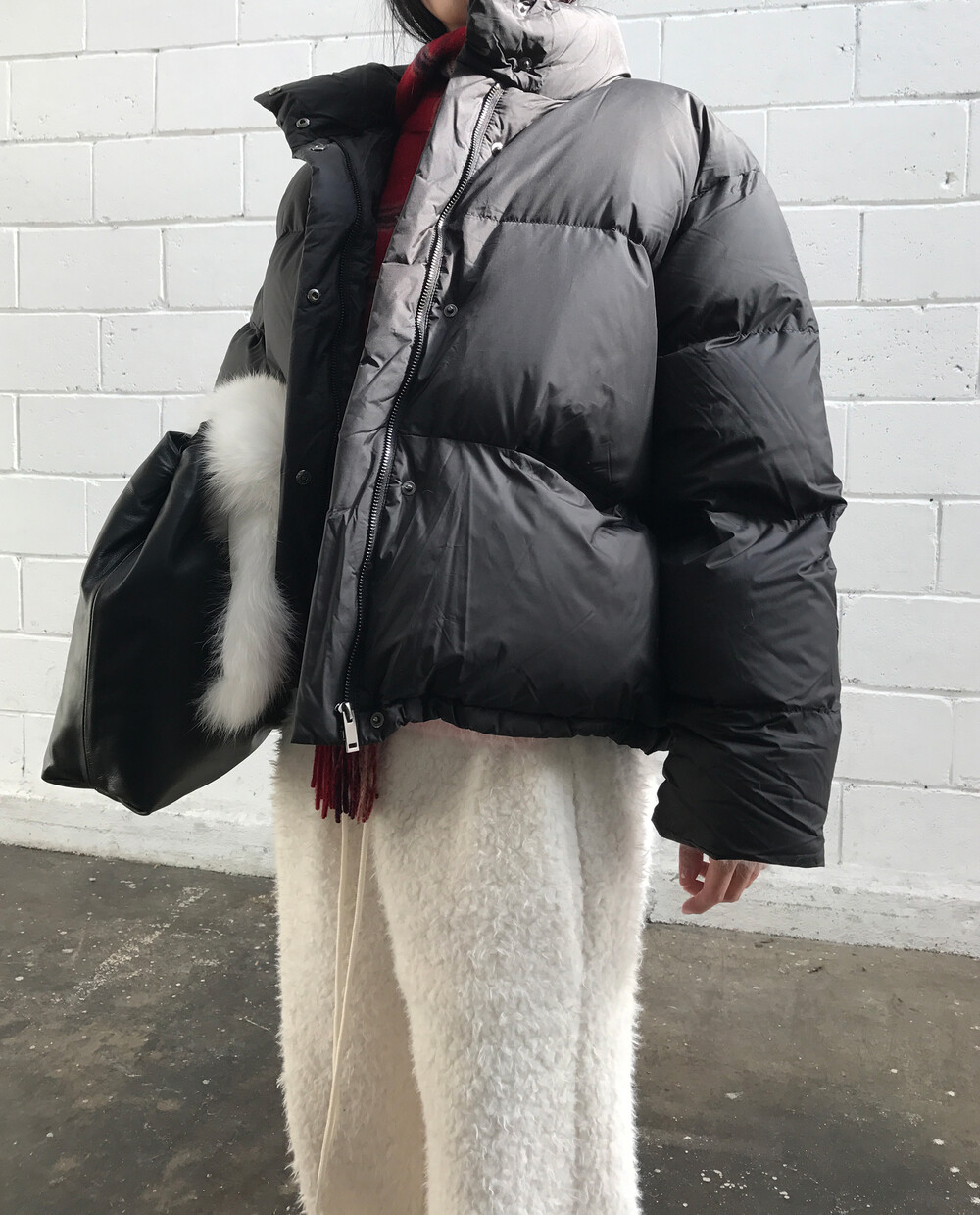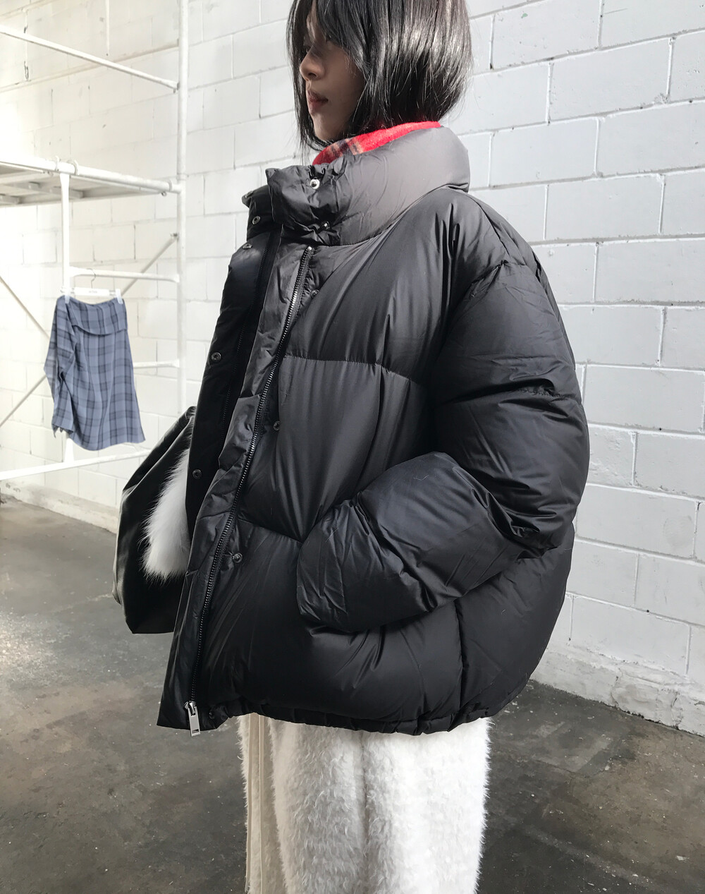 세련된 크롭 기장 하이넥 디자인 볼륨 실루엣 강조 편안한 착용감
