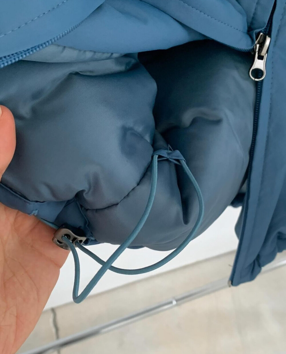 매트한 질감 덕분에 컬러가 더욱 돋보였던 패딩이에요. 밑단에는 스트링으로 조절이 가능해 실루엣을 다양하게 연출할 수 있어요.