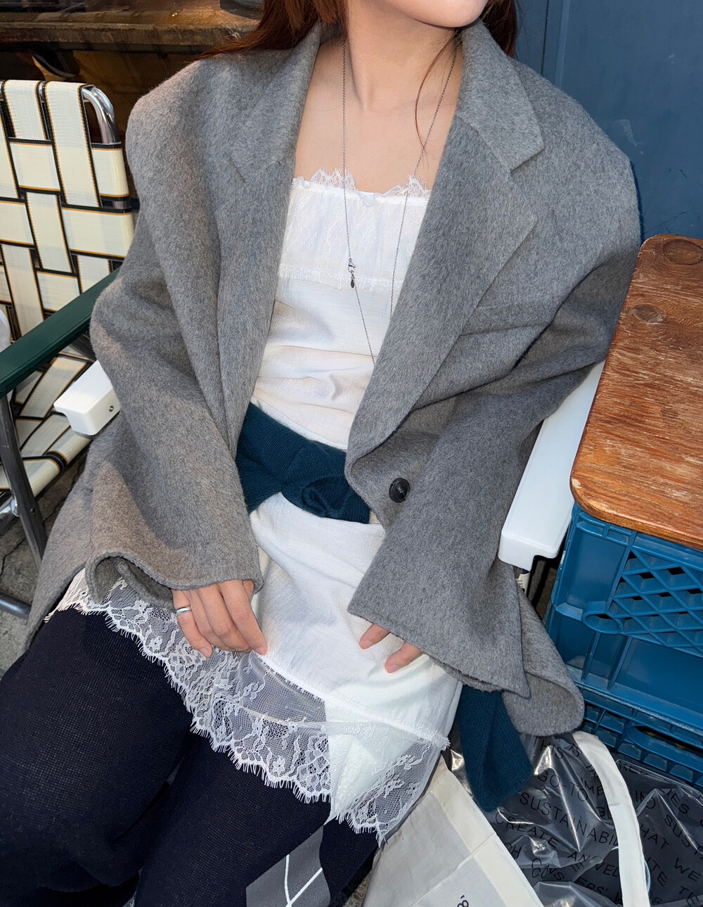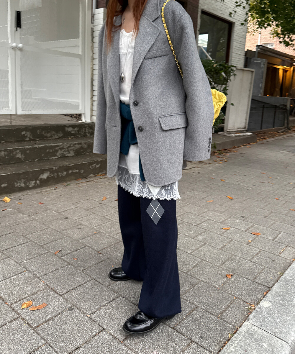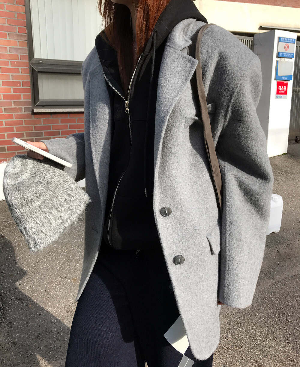 어깨 단면만 보면 많이 오버핏처럼 느껴지실 수도 있지만, 그에비해 소매나 몸통은 불필요한 사이즈감을 많이 삭제해 섬세한 테일러링이 들어가서 부해보이거나 마냥 아빠자켓을 입은 듯한 오버핏이 아닌 완벽한 핏과 군더더기없는 간결한 실루엣을 자랑해요. 정말 단순히 크기만한 오버핏이랑은 달랐어요!