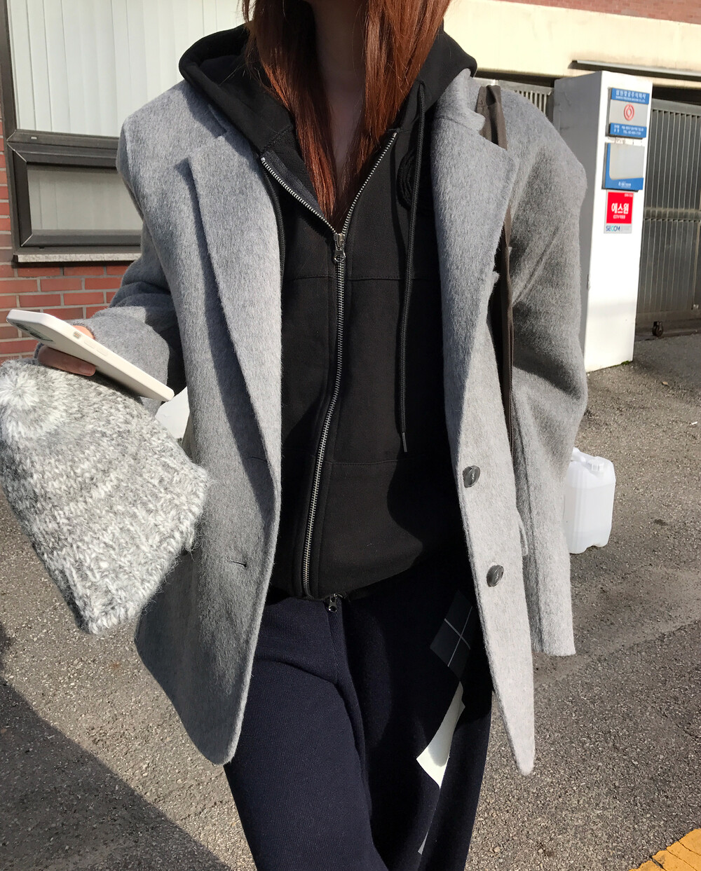 블랙은 매트블랙, 기본중의 기본으로 데일리한 컬러로! 그리고 그레이컬러는 정말 포근하고 부드러운 그레이컬러로 가장 추천을 드리는 컬러에요. 오버핏을 좋아하는 분들은 눈여겨봐주세요!