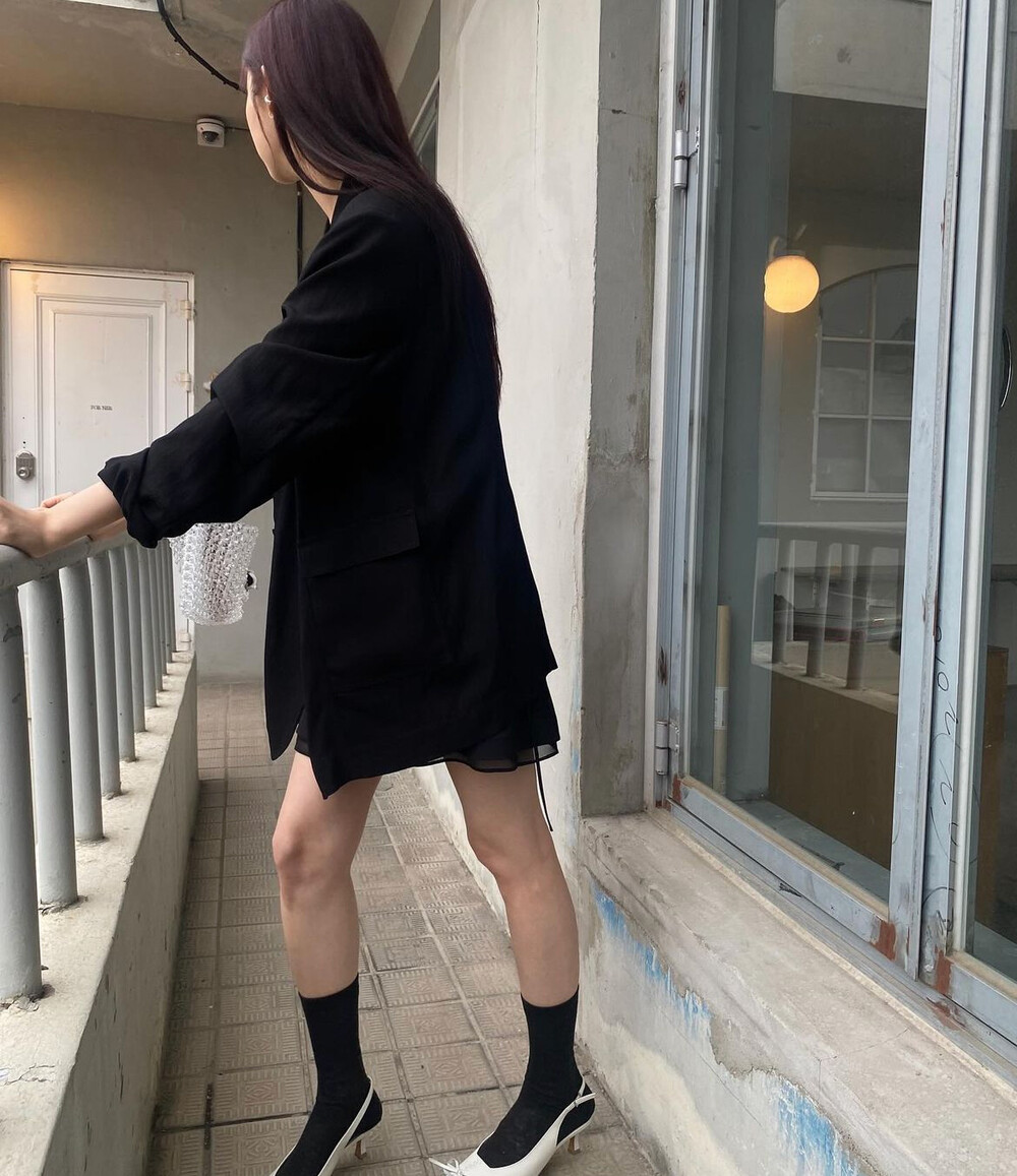 딱 그런 스니커즈에 기장감이 짧은 쇼츠에 박시한 오버핏 자켓을