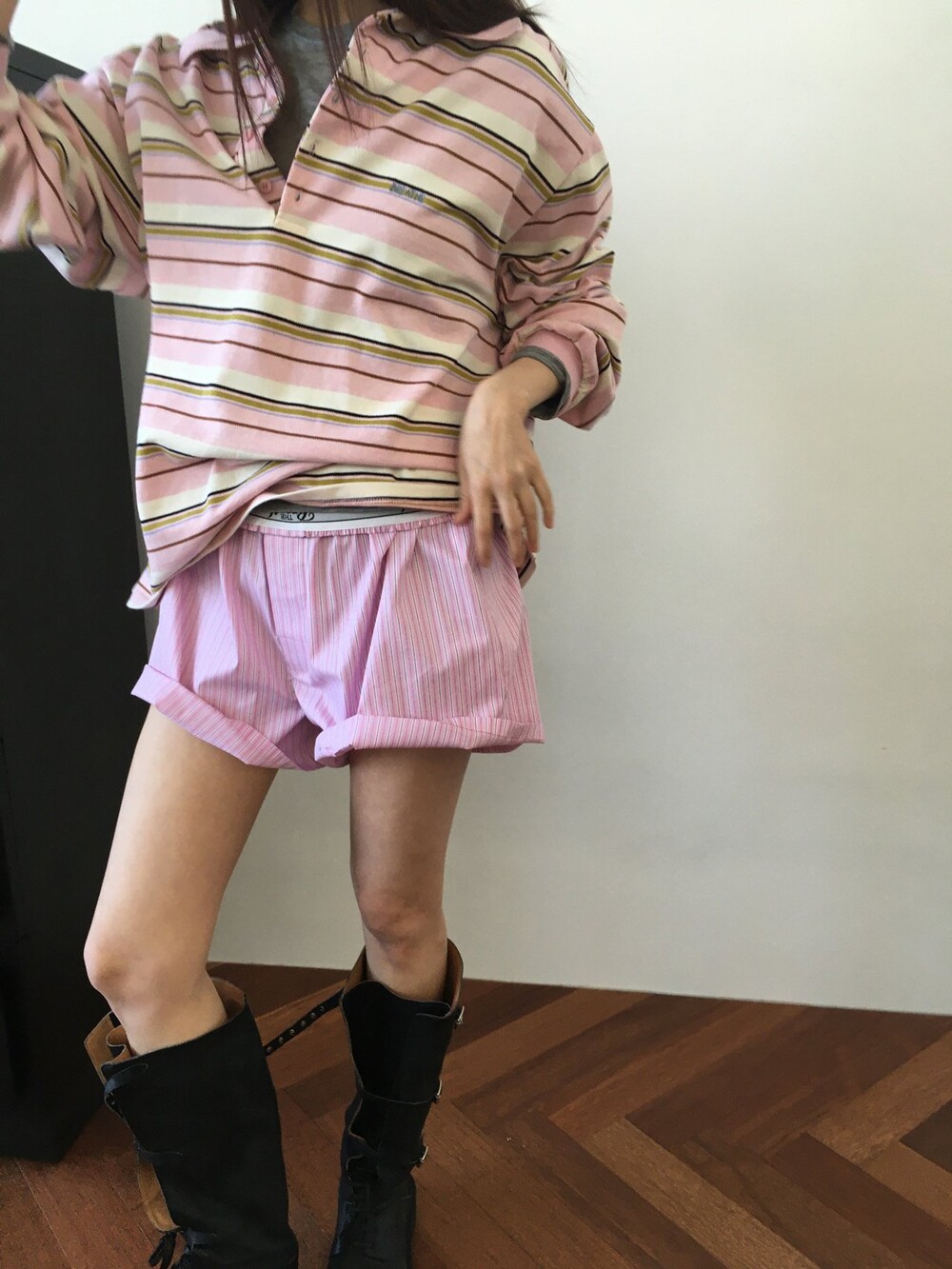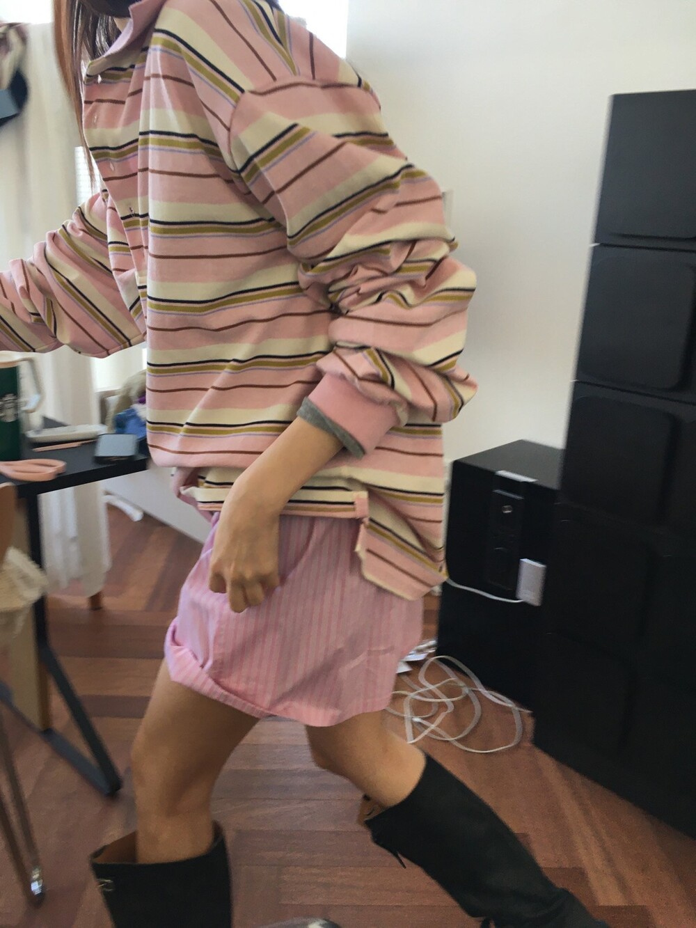 플리츠 스커트나 하프팬츠에 입으면 살짝 러블리한 무드도 연출 가능해요.