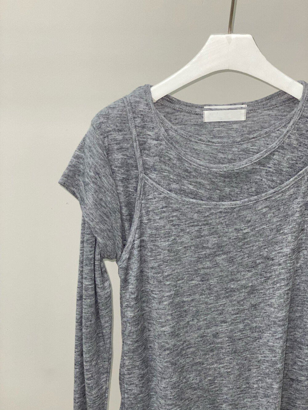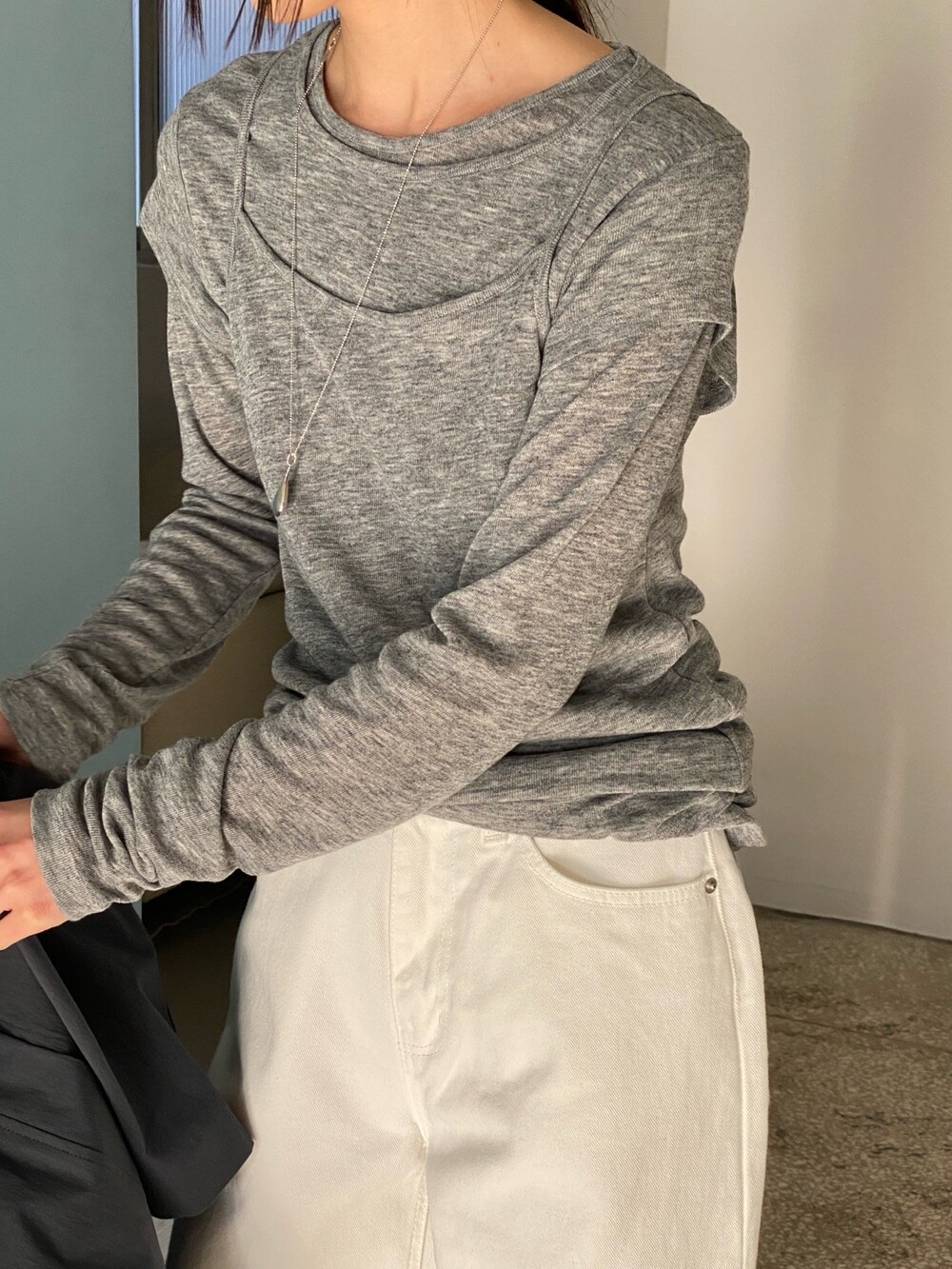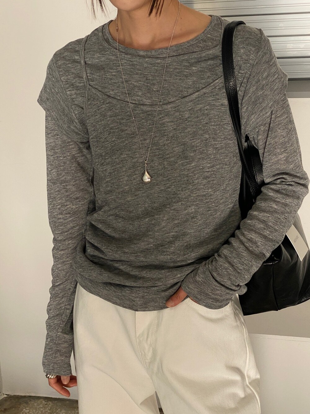 레이어드한 네크라인이 전부 보이도록 파임정도를 다르게 디자인했어요.