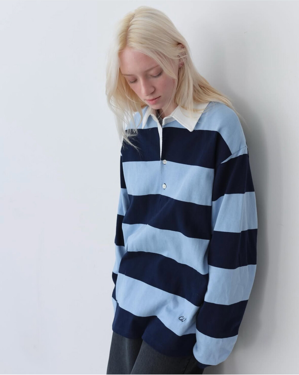 Preppy Stripe Rugby T, Soda Blue (2c)