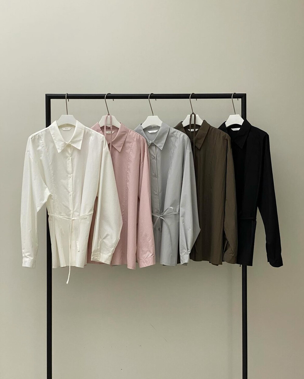 톡톡한 코튼 소재 클래식한 디자인 허리라인을 잡아주는 스트랩 셔츠 등 부분 비죠 디테일
