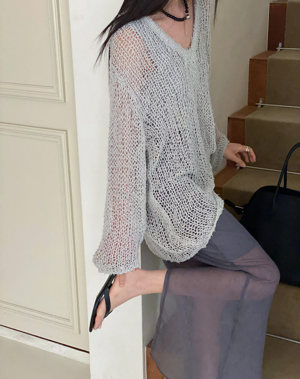 성글게 짜여진 루즈핏의 썸머시즌 니트 (2C)