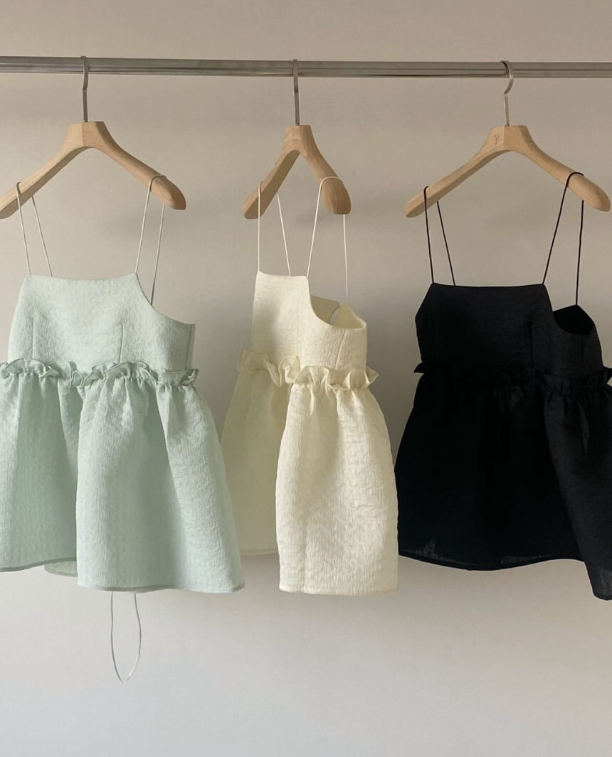마치 한송이의 꽃이 생각나는 엠보싱패턴의 프릴 디테일로 사랑스러움이 가득 느껴지는 뷔스티에 입니다. 엠보싱 기법으로 올록볼록하게 가공한 원단을 사용하여 좀 더 풍성하면서도 고급스러움이 느껴지는 디자인이 특징입니다. 솔리드원단보다 훨씬 고급 소재로 사용하여 오래도록 입기 좋은 뷔스티에 탑입니다. 가슴부분의 셔링이 볼륨감을 연출합니다. 뷔스티에 등부분에는 스트랩(끈)이 있어 바스트부분의 사이즈 조절이 가능합니다.