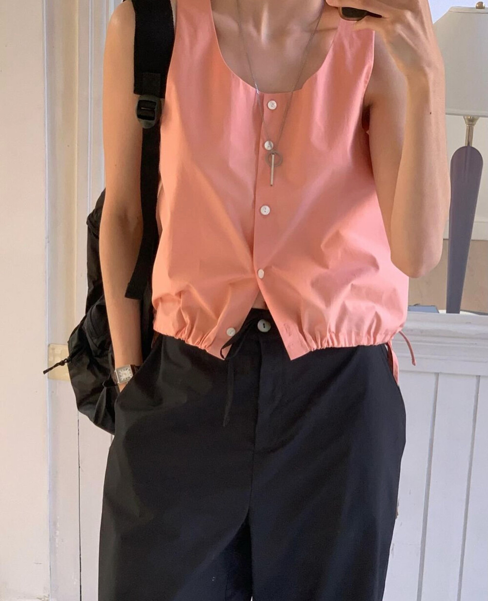 PRODUCT INFO ――――――――――――――――――――――――――――――――― 면서나 면포에 광택을 부여하는 머서라이즈 가공, 흔히 실켓 가공이라고 하는 작업을 더해 만들어진 베스트탑입니다. 실켓 가공을 통해 매끄러우면서도 은은한 광택이 나는 소재입니다. 실켓가공으로 인해 세탁 시 줄어드는 현상이 일반 코튼에 비해 적은편이 장점입니다. 적당히 파인 네크라인와 암홀로 단독으로 나시처럼 착용해도 편안하게 착용하기 좋습니다.