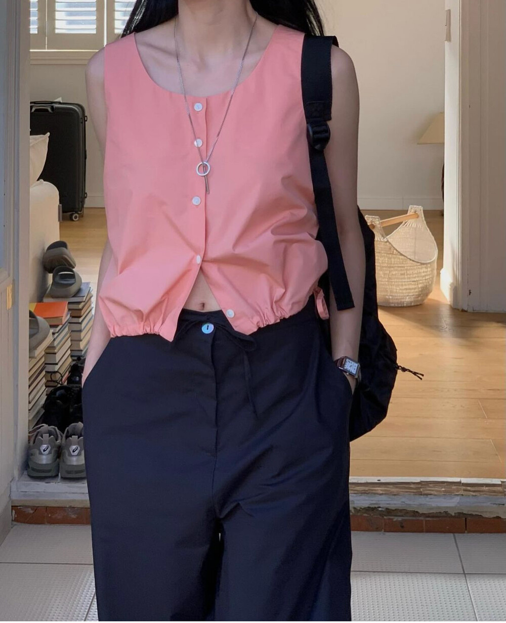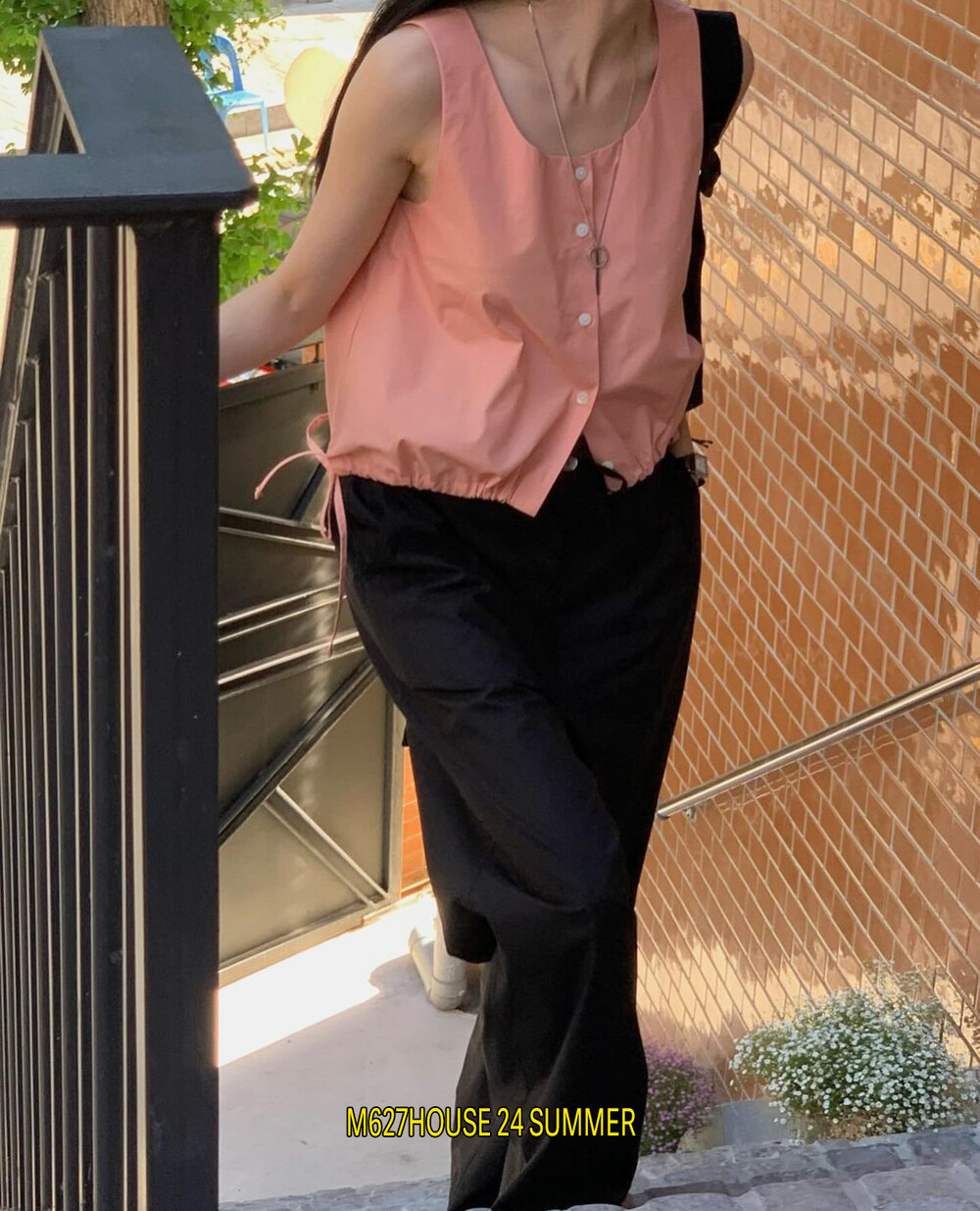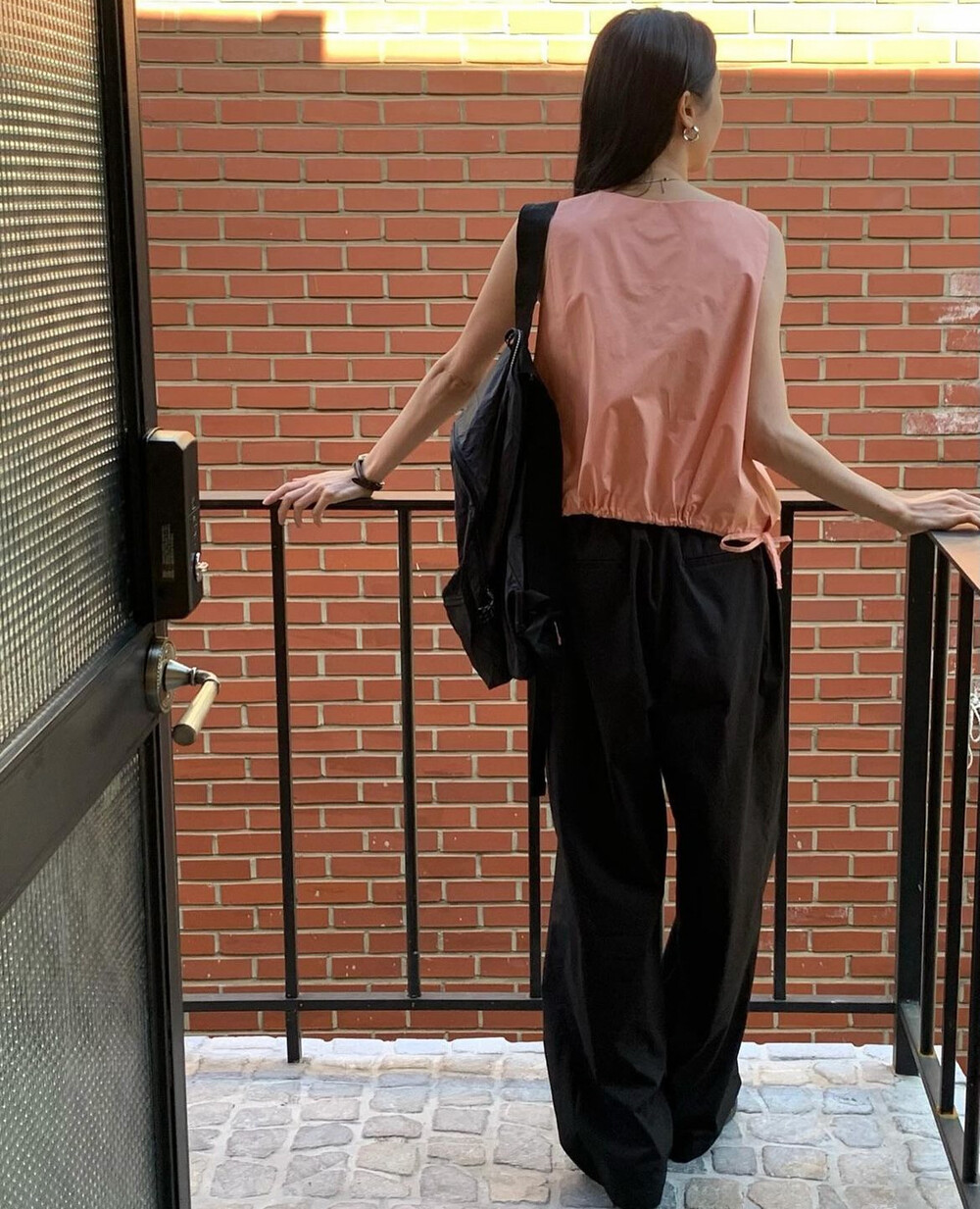 은은한 광택감의 실켓가공을 통해 제작한 소재 높은 퀄리티의 소재감과 디테일 허리 부분 조절 스트링 베스트 혹은 단독착용 가능 다양한 아이템과의 레이어링 연출