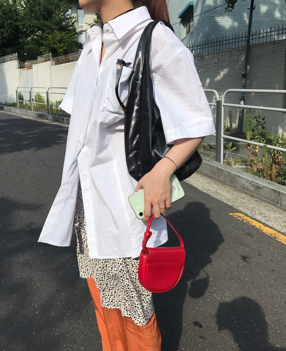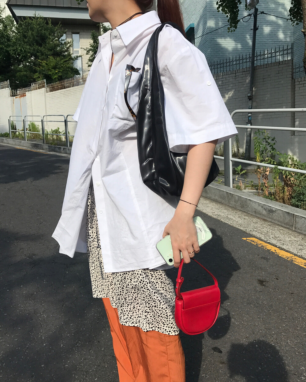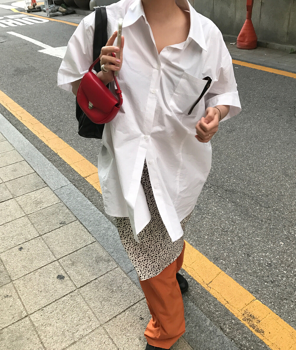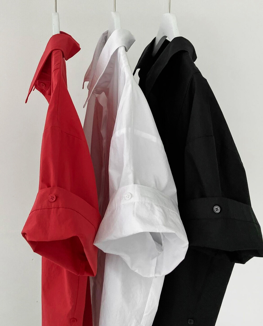 크리스피한 코튼소재 오버 버튼 턴업 박스 셔츠 (3C)