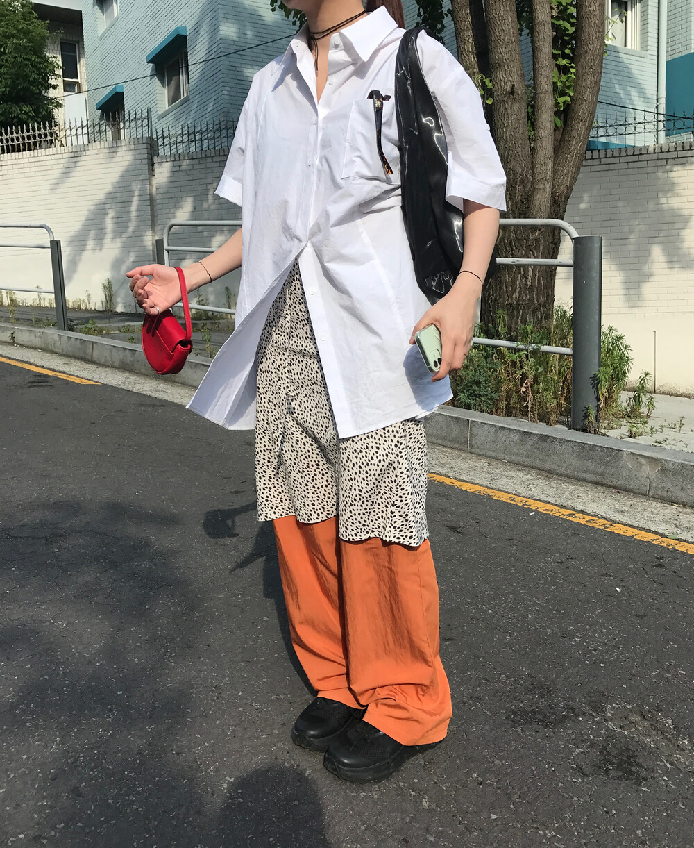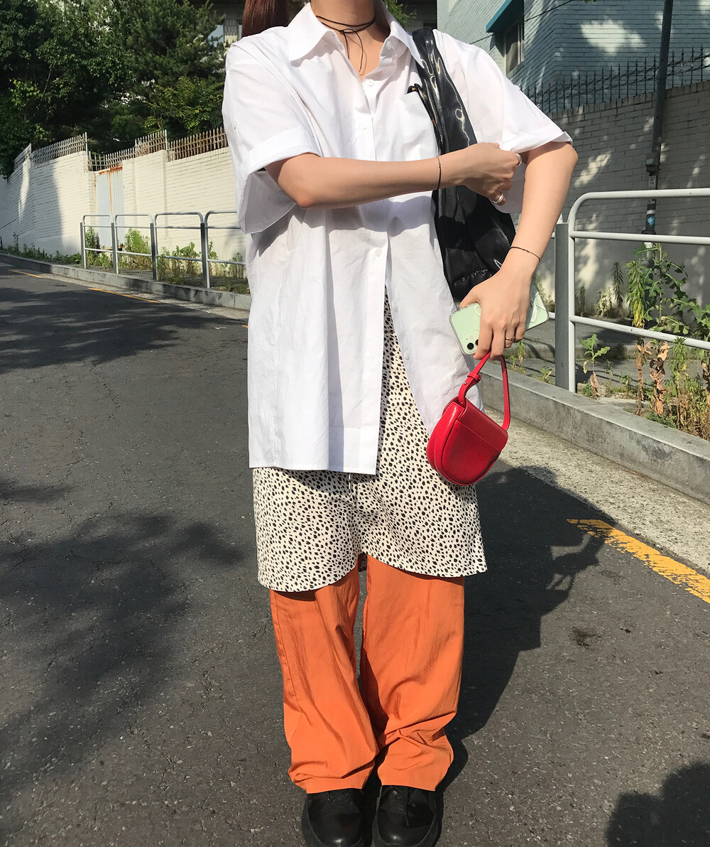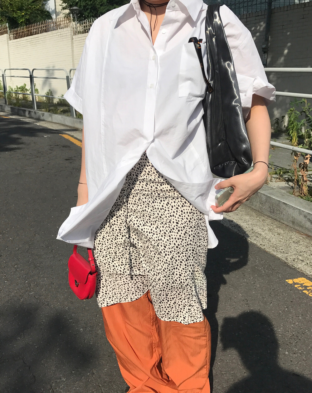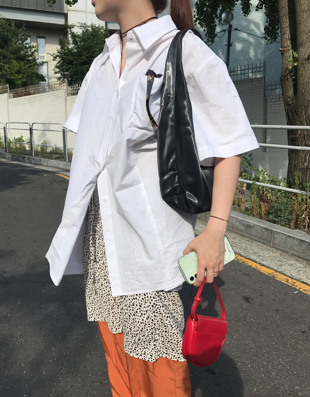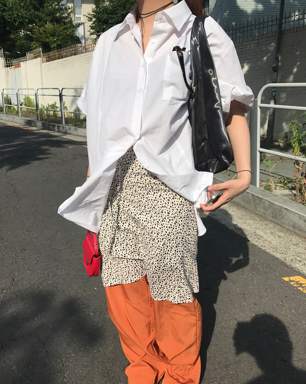 크리스피한 코튼소재 오버 버튼 턴업 박스 셔츠 (3C)