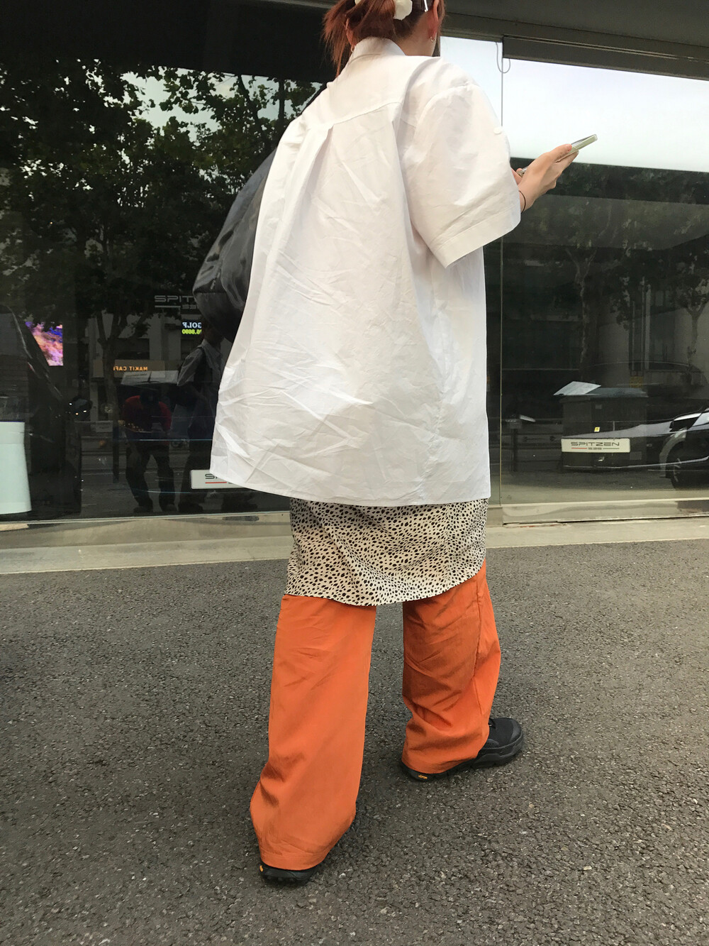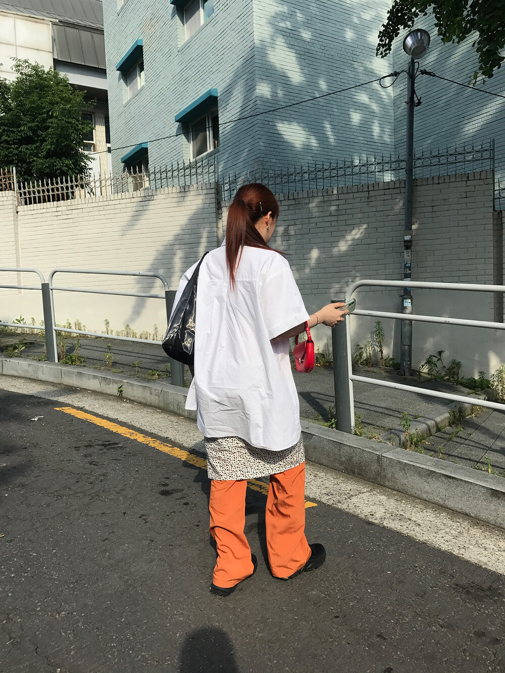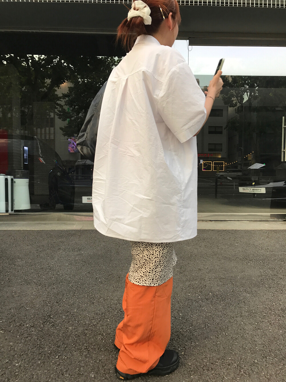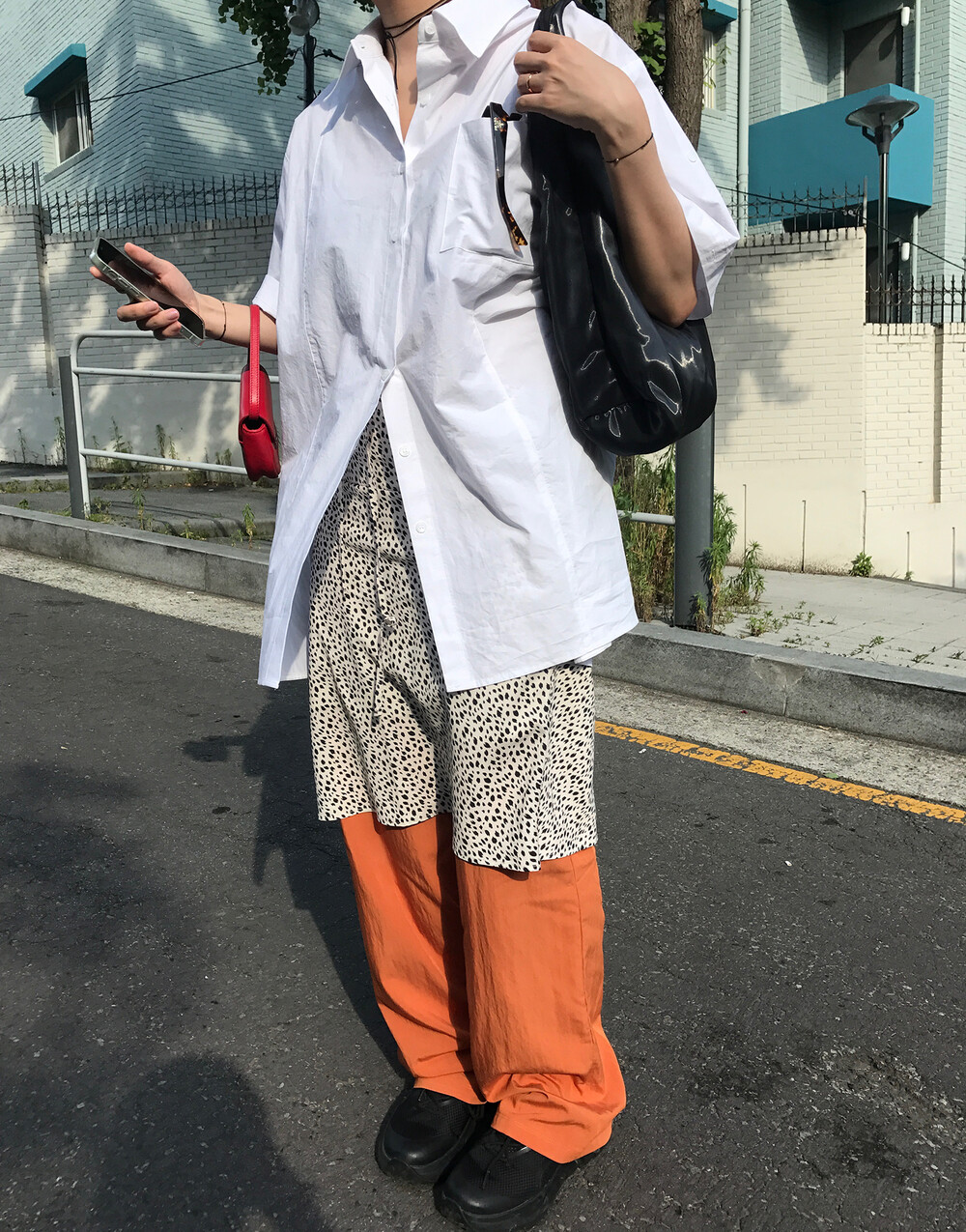 크리스피한 코튼소재 오버 버튼 턴업 박스 셔츠 (3C)