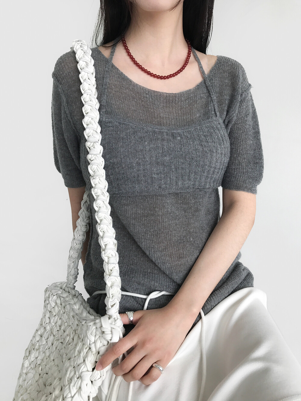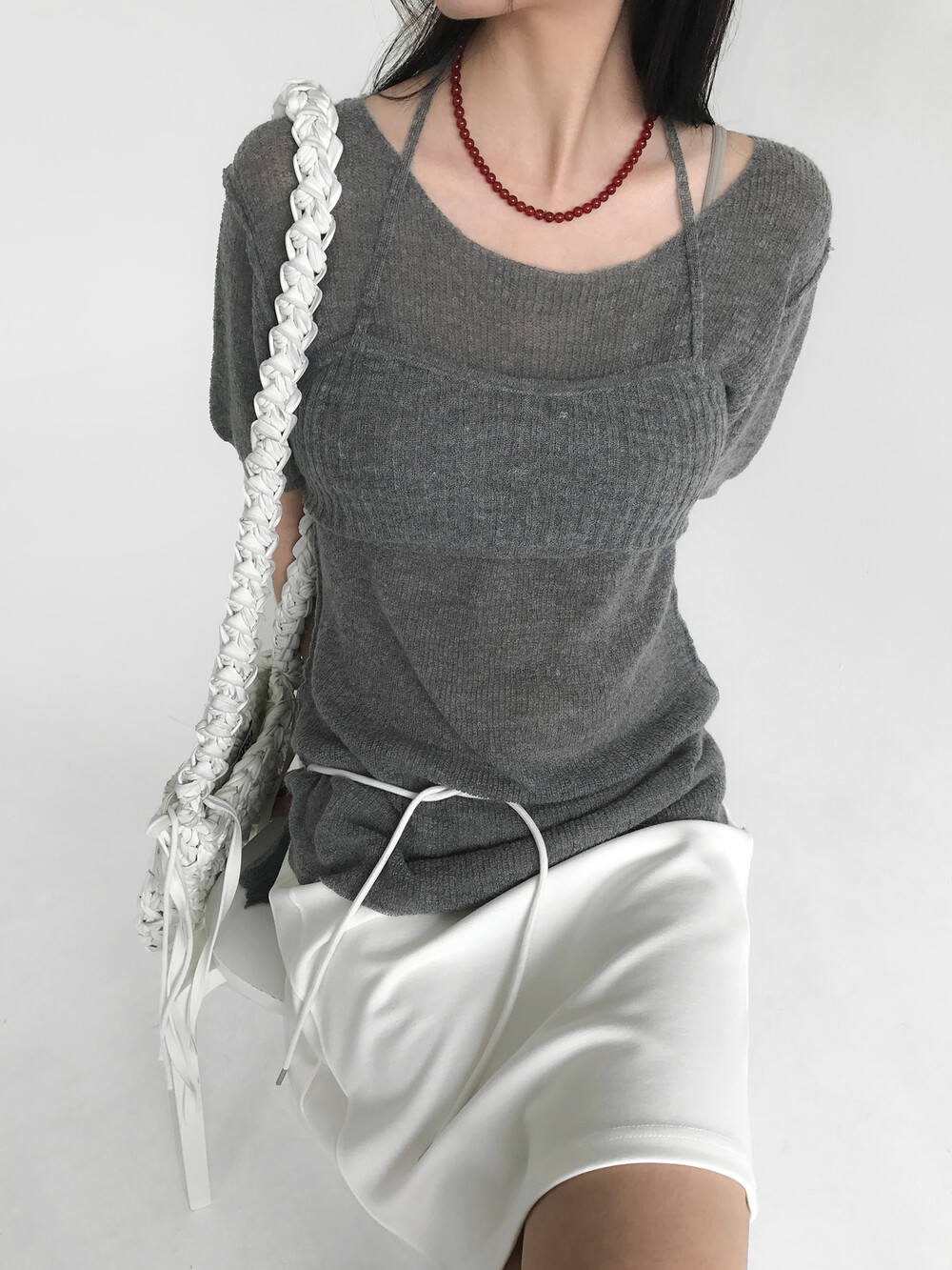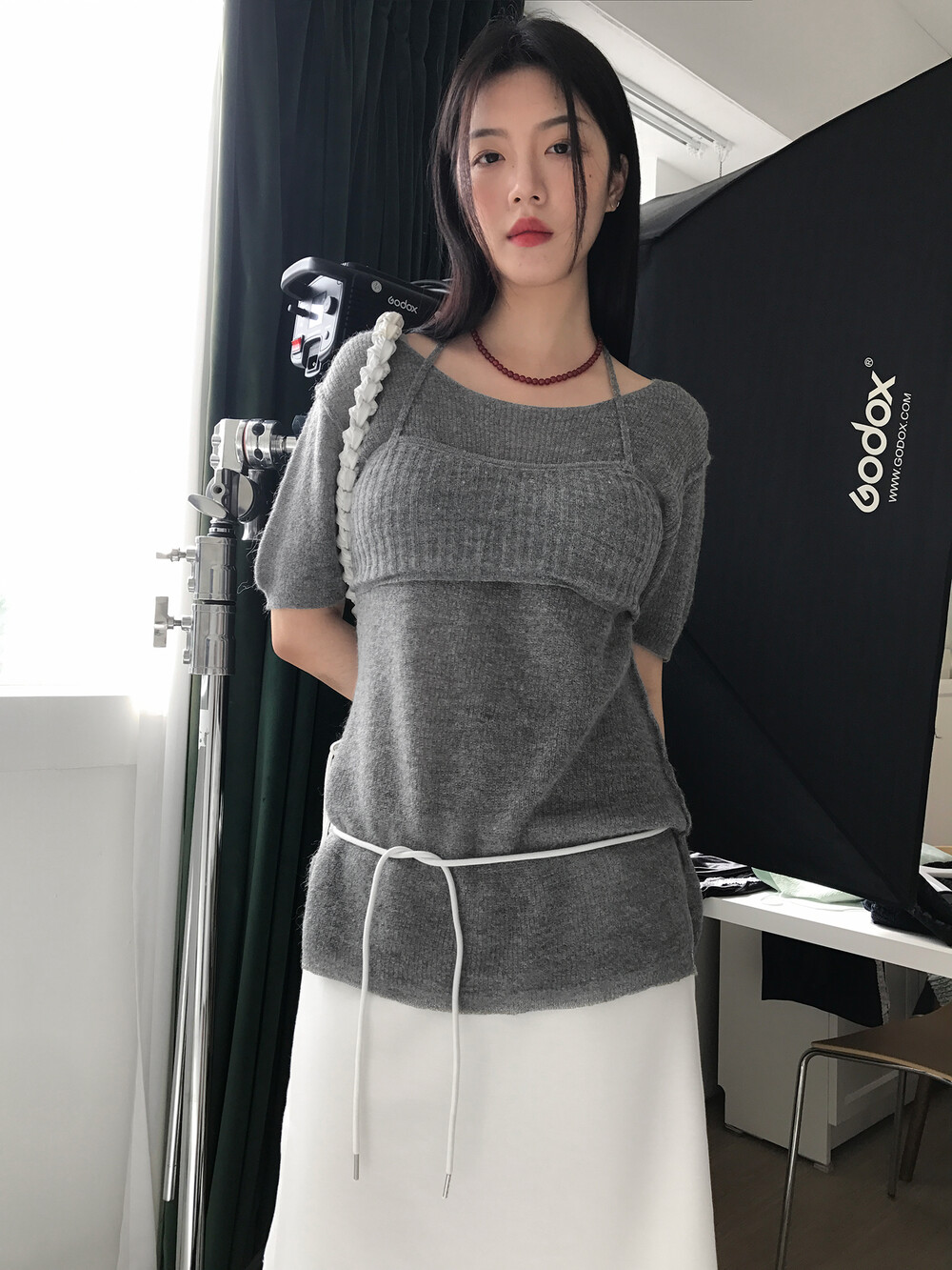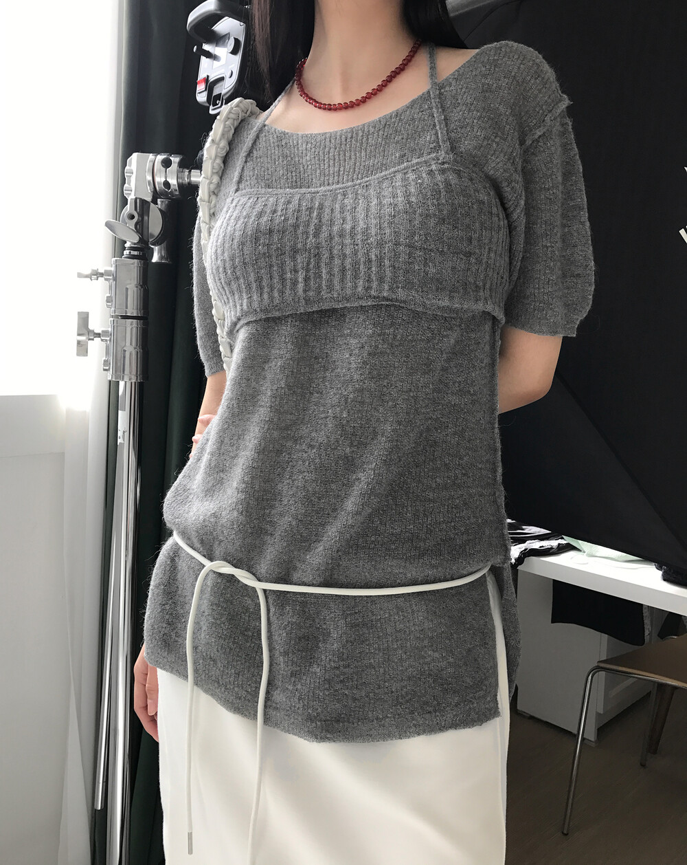 - 여성스러움이 한껏 묻어나는 하프슬리브리스 니트와 뷔스티에가 세트인 아이템입니다.
