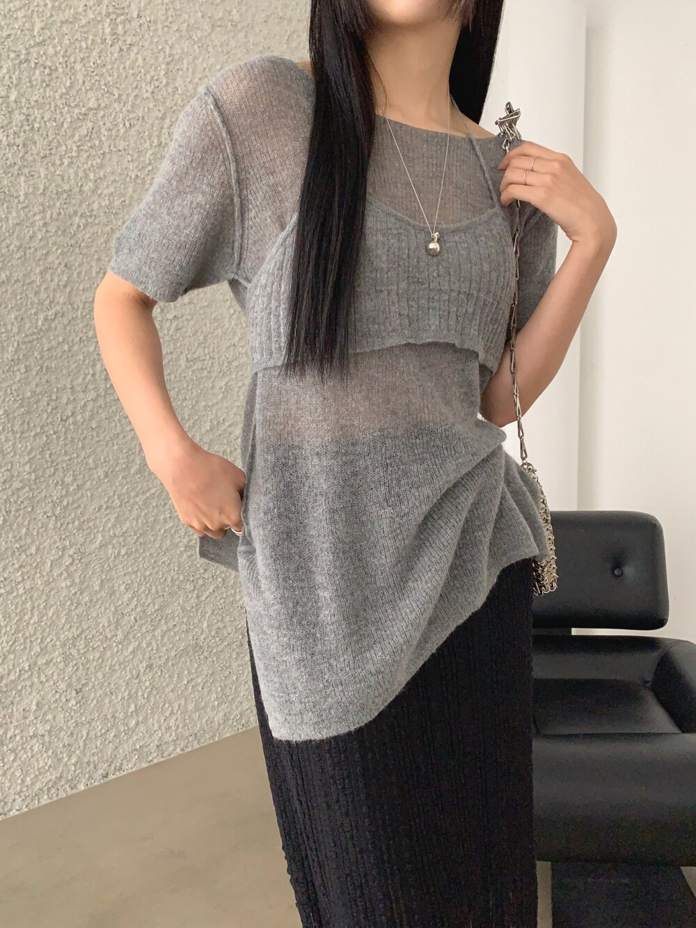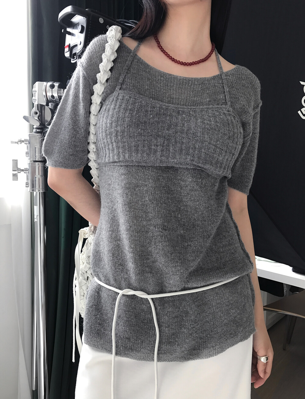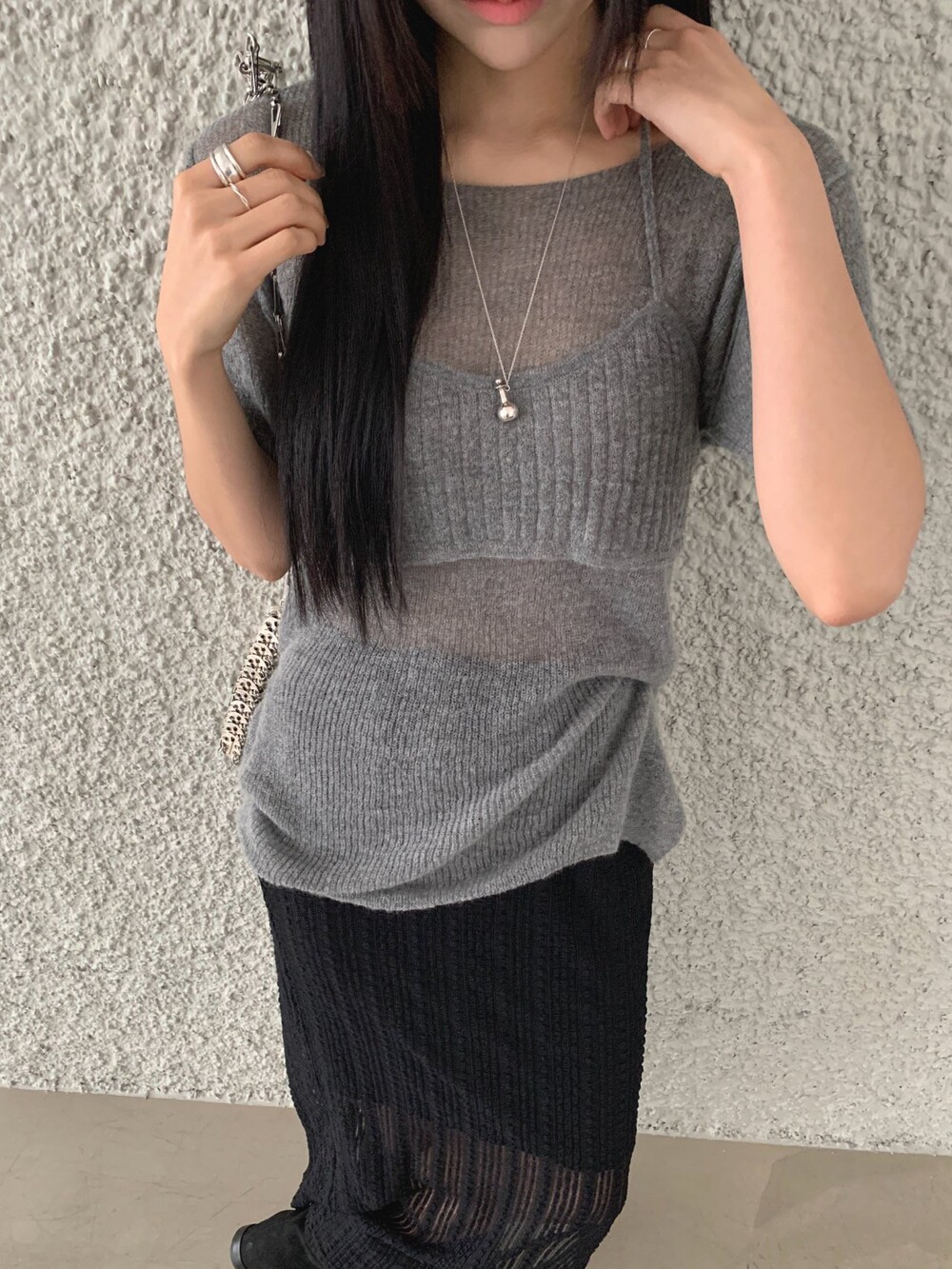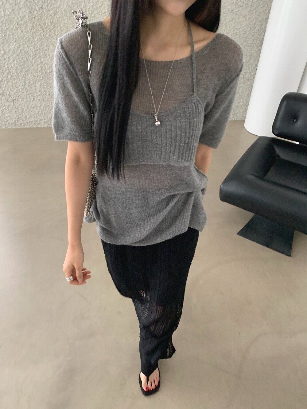 - 여성스러움이 한껏 묻어나는 하프슬리브리스 니트와 뷔스티에가 세트인 아이템입니다.