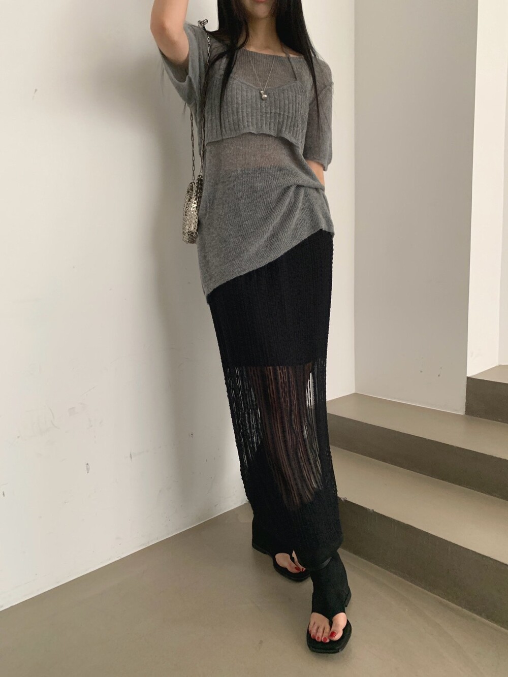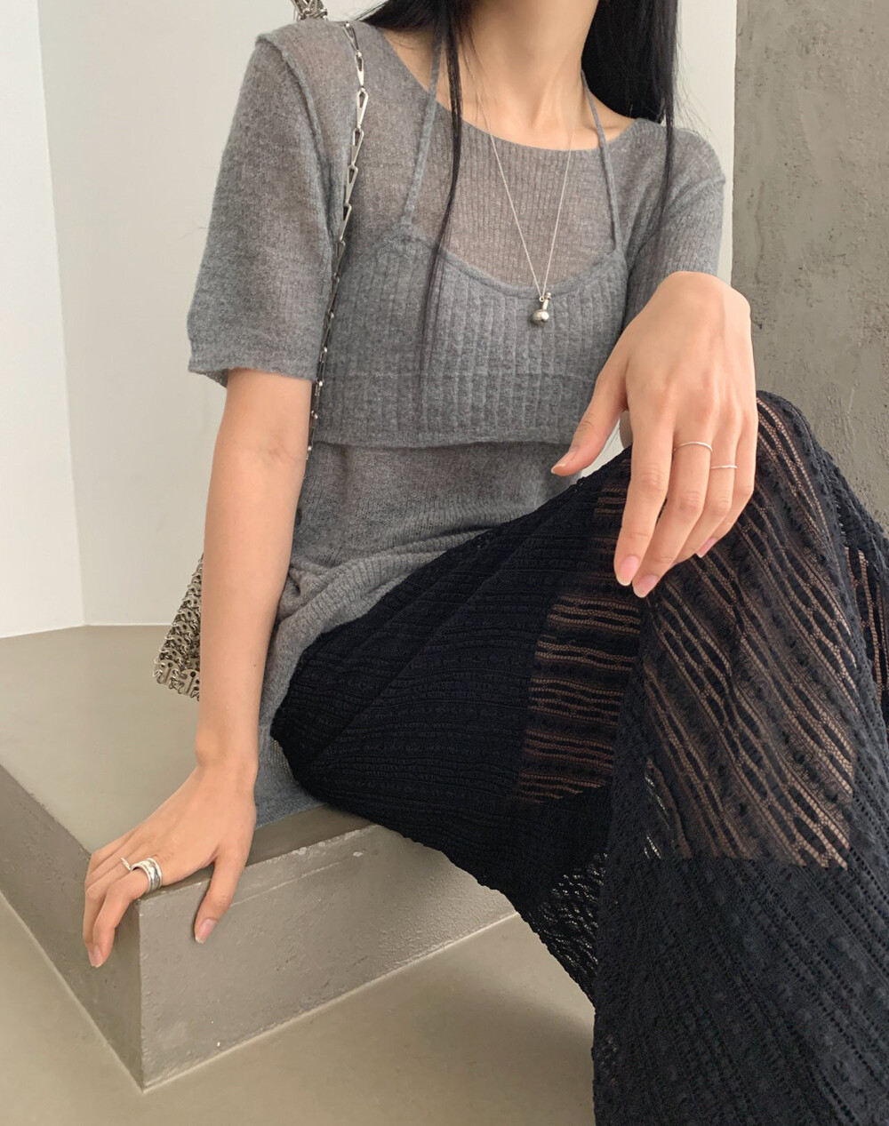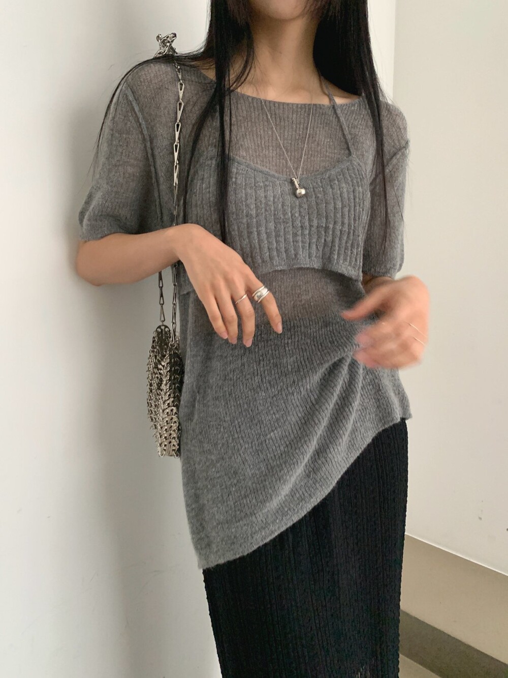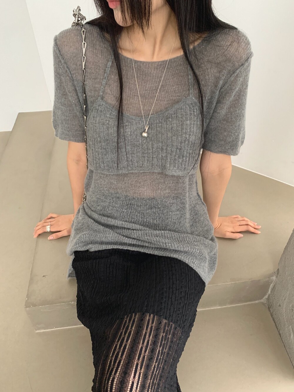 - 여성스러움이 한껏 묻어나는 하프슬리브리스 니트와 뷔스티에가 세트인 아이템입니다.
