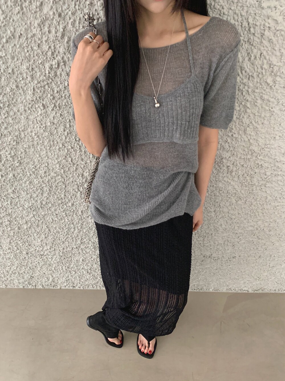 - 하프슬리브니트탑은 힙을 덮는 안정적인 기장감으로 편안한 착용감을 갖고 있습니다.